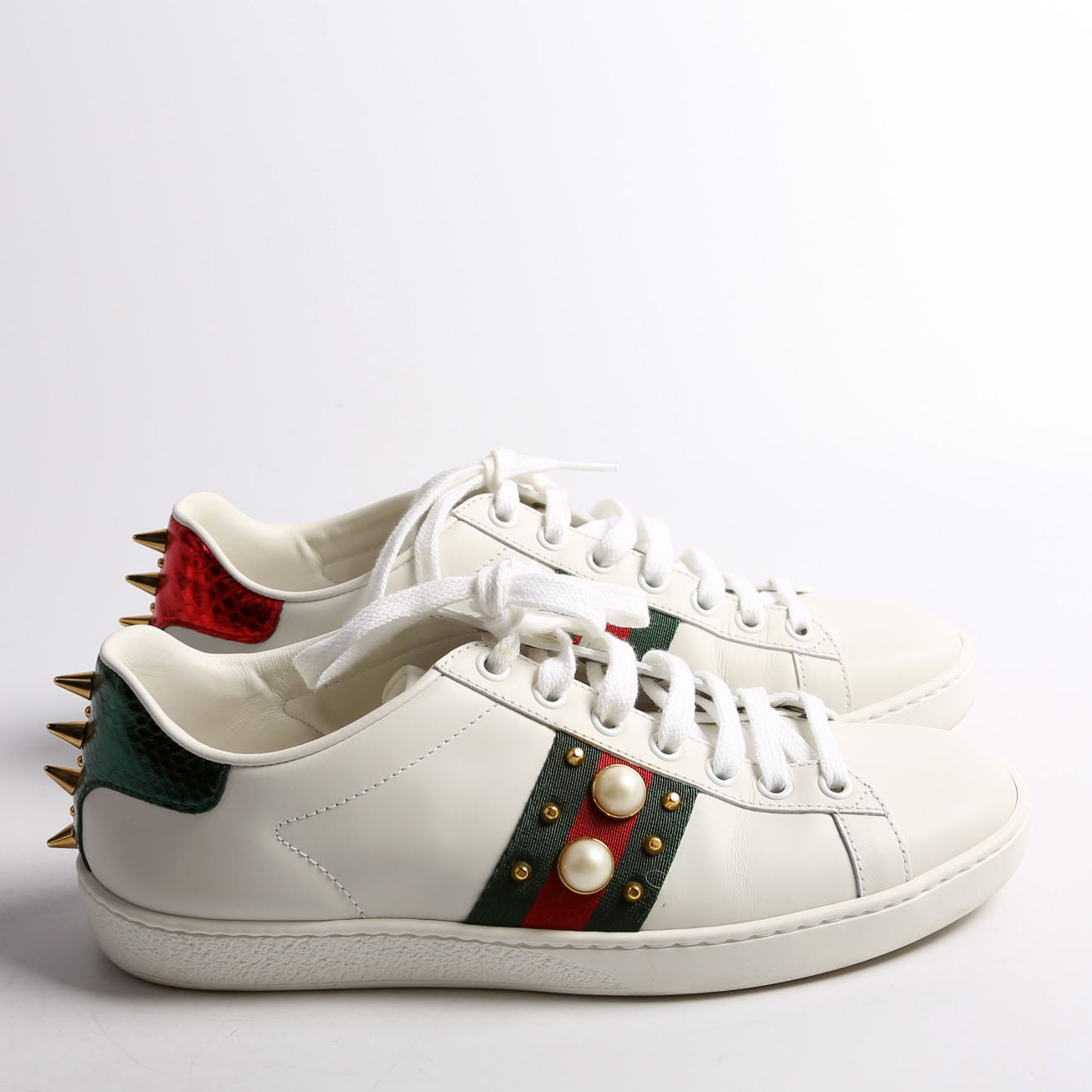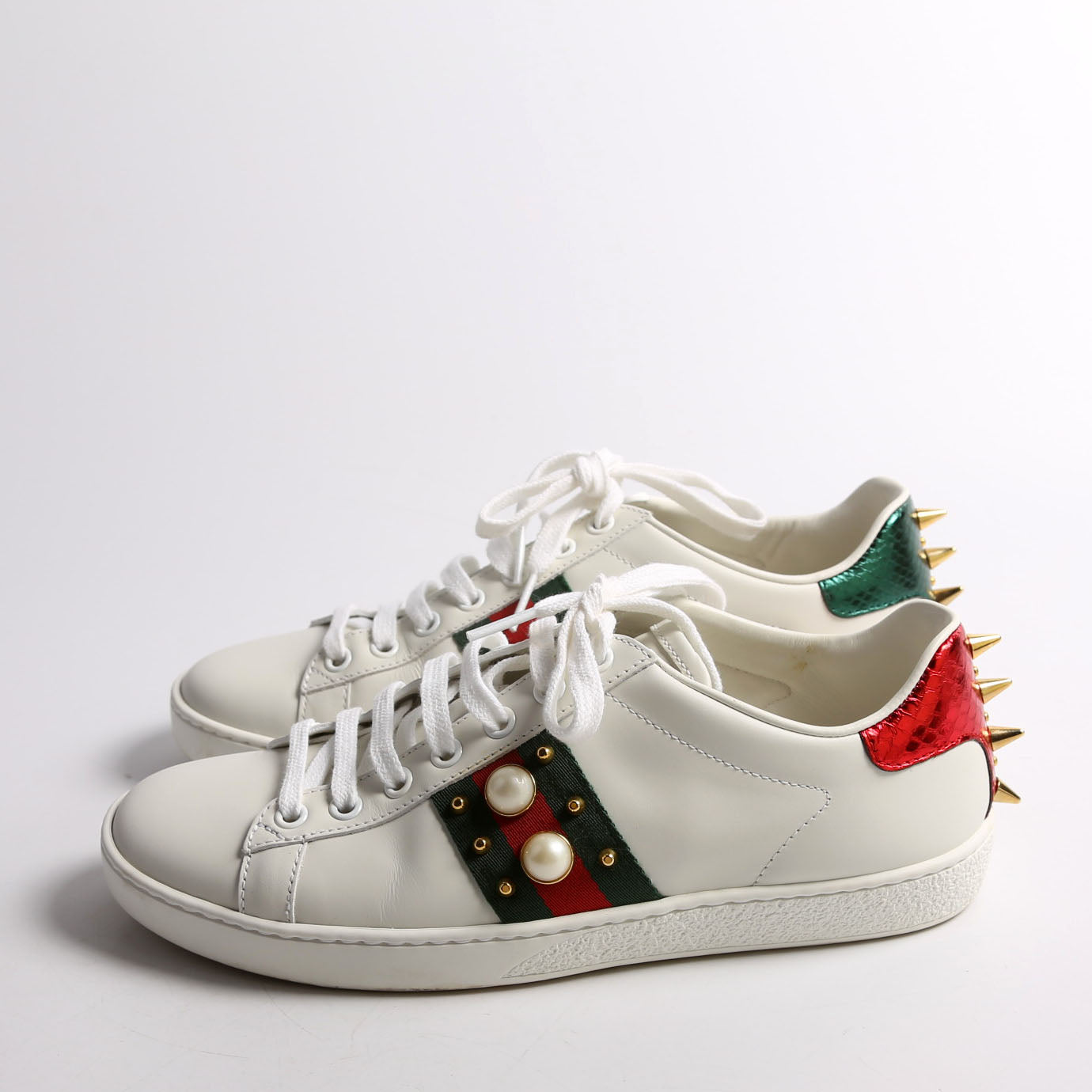 This pre-owned Gucci Ace Web Spike Sneakers is guaranteed 100% authentic.