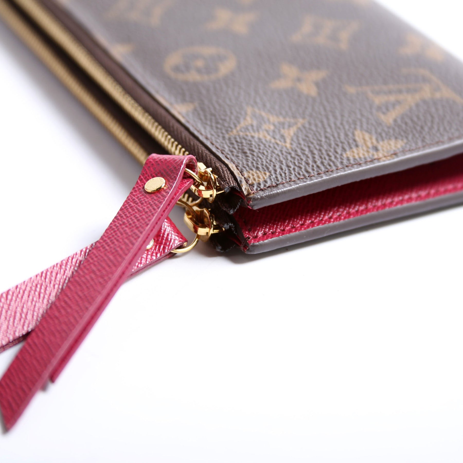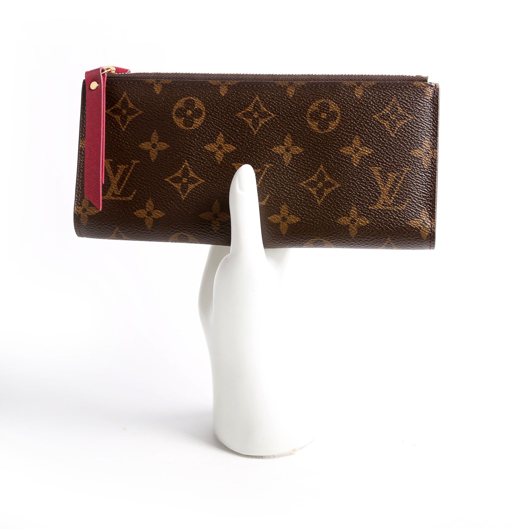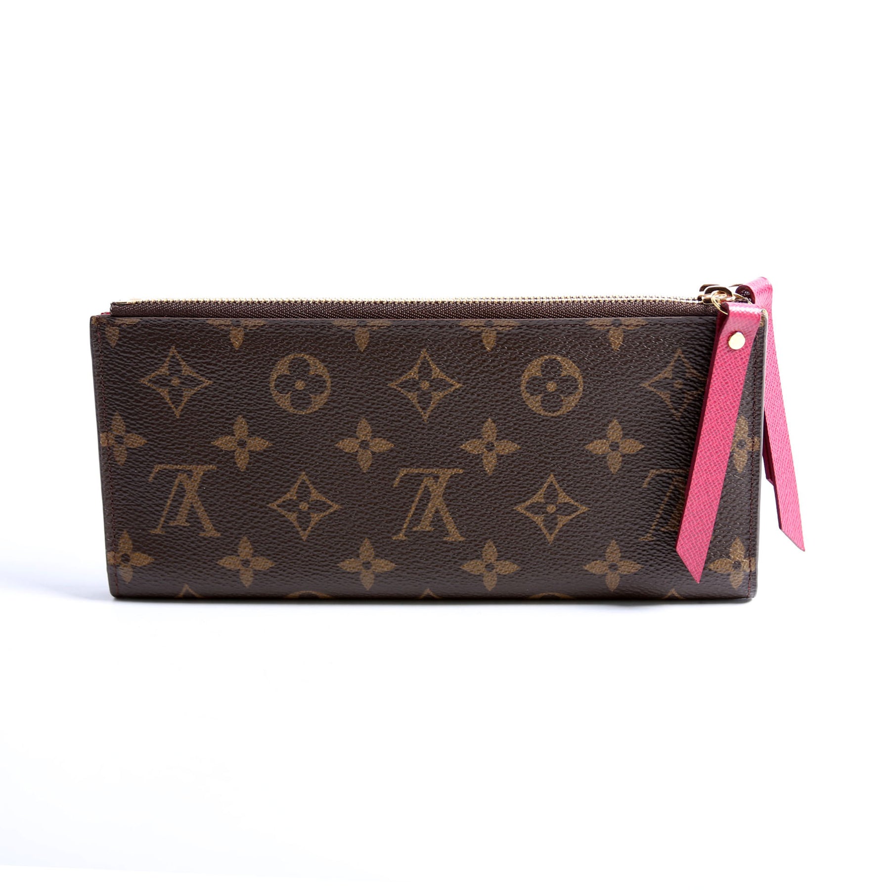 This pre-owned Louis Vuitton Adele Wallet is guaranteed 100% authentic. The exterior is in the classic Louis Vuitton Monogram coated canvas.