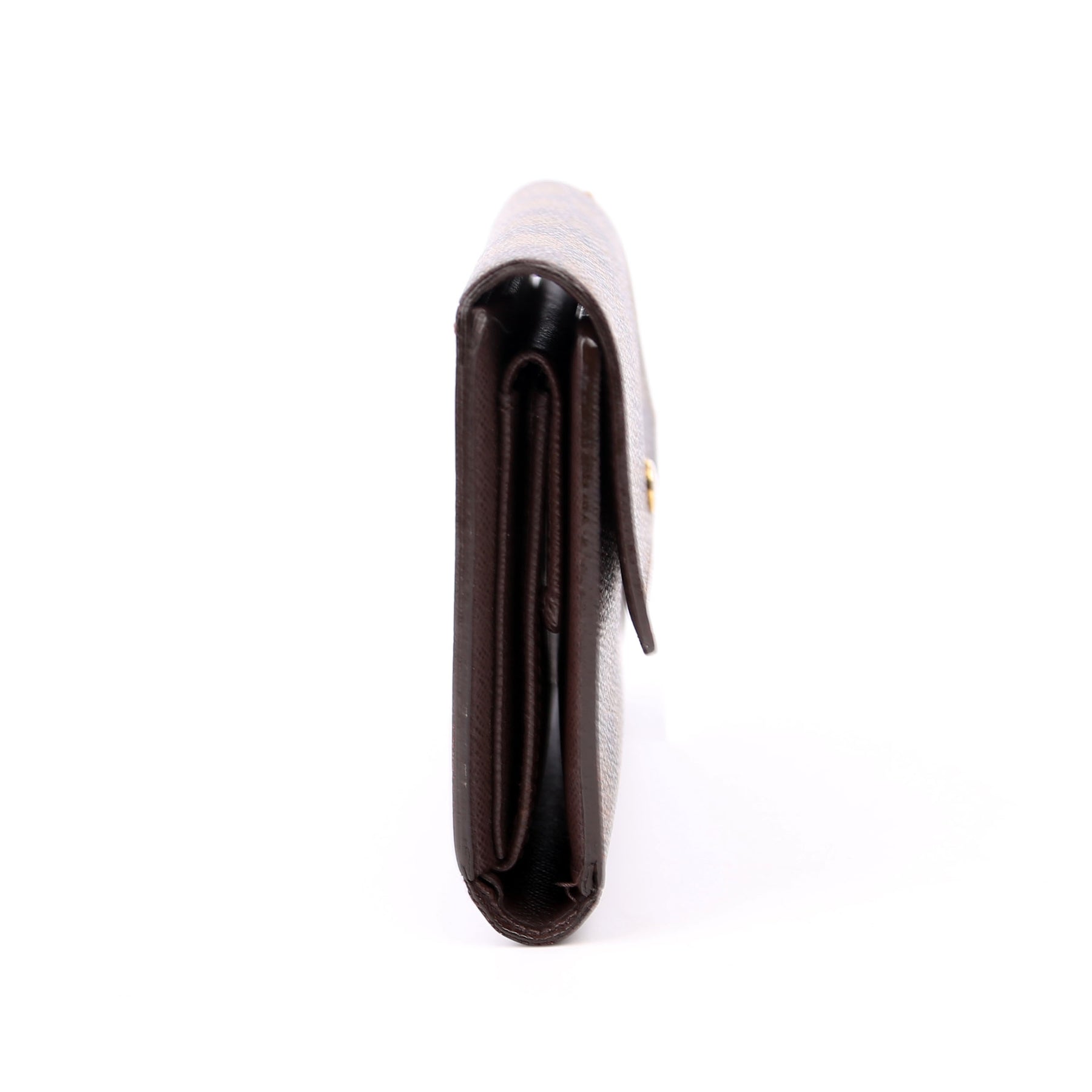 This pre-owned Louis Vuitton Alexandra Wallet is guaranteed 100% authentic. The exterior is in the classic Louis Vuitton Damier Ebene coated canvas.