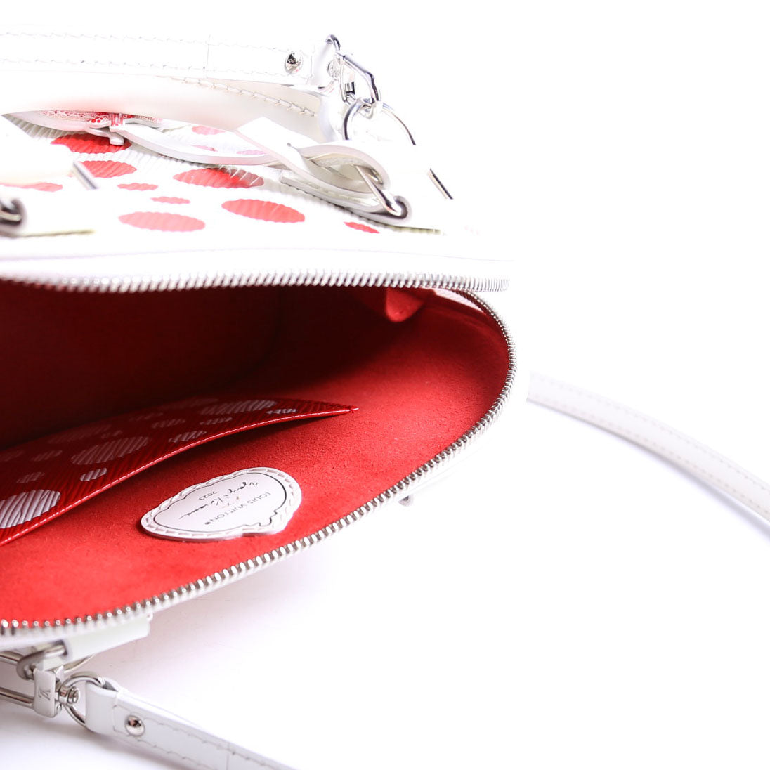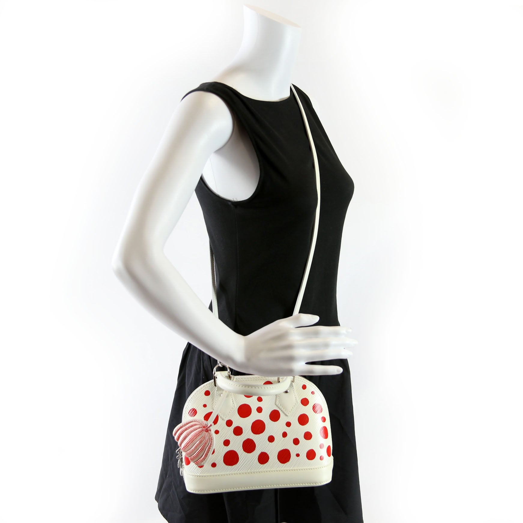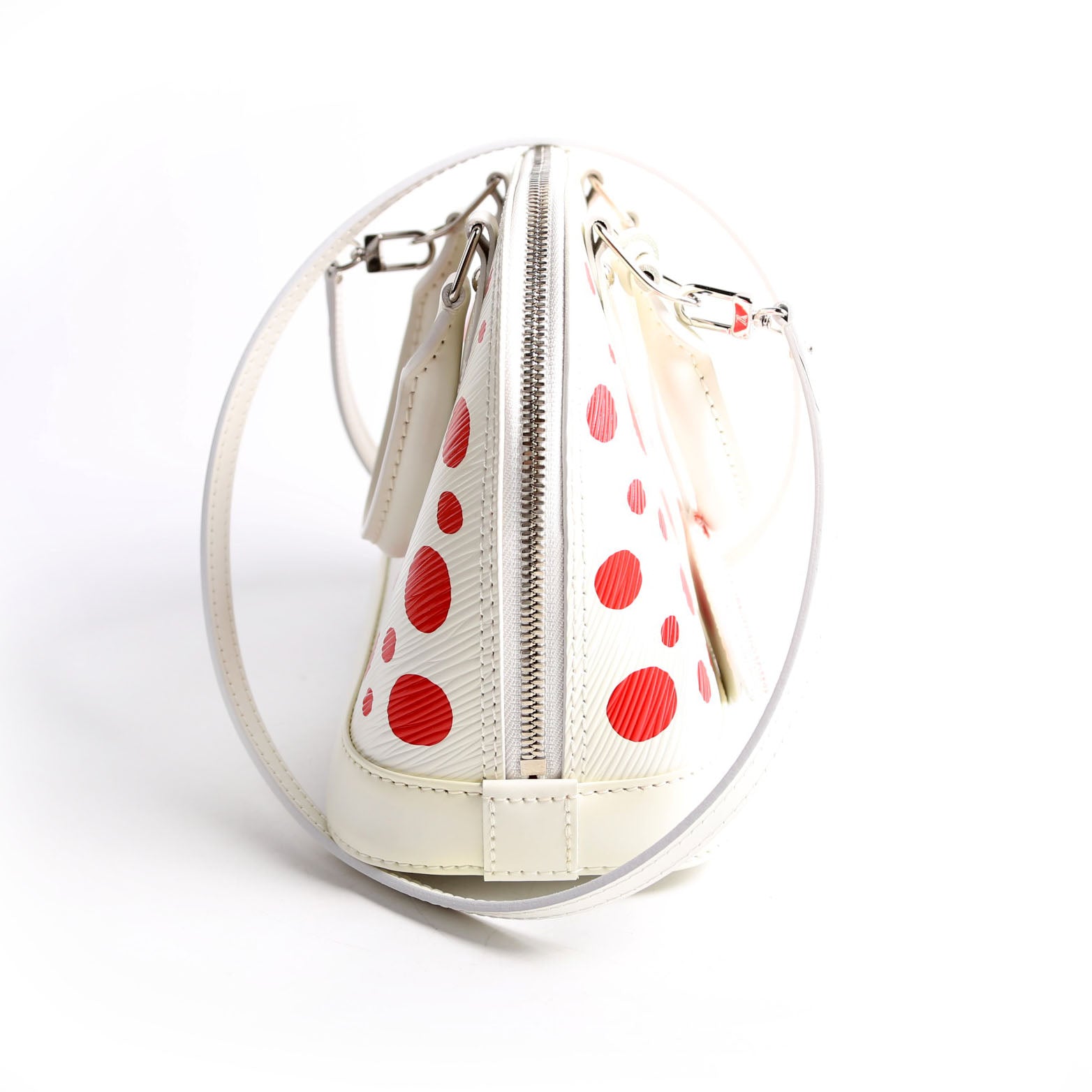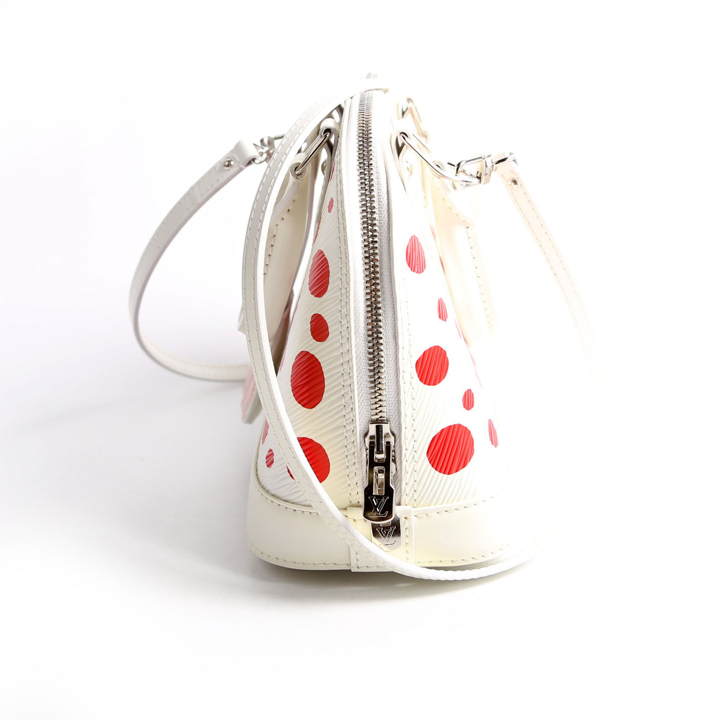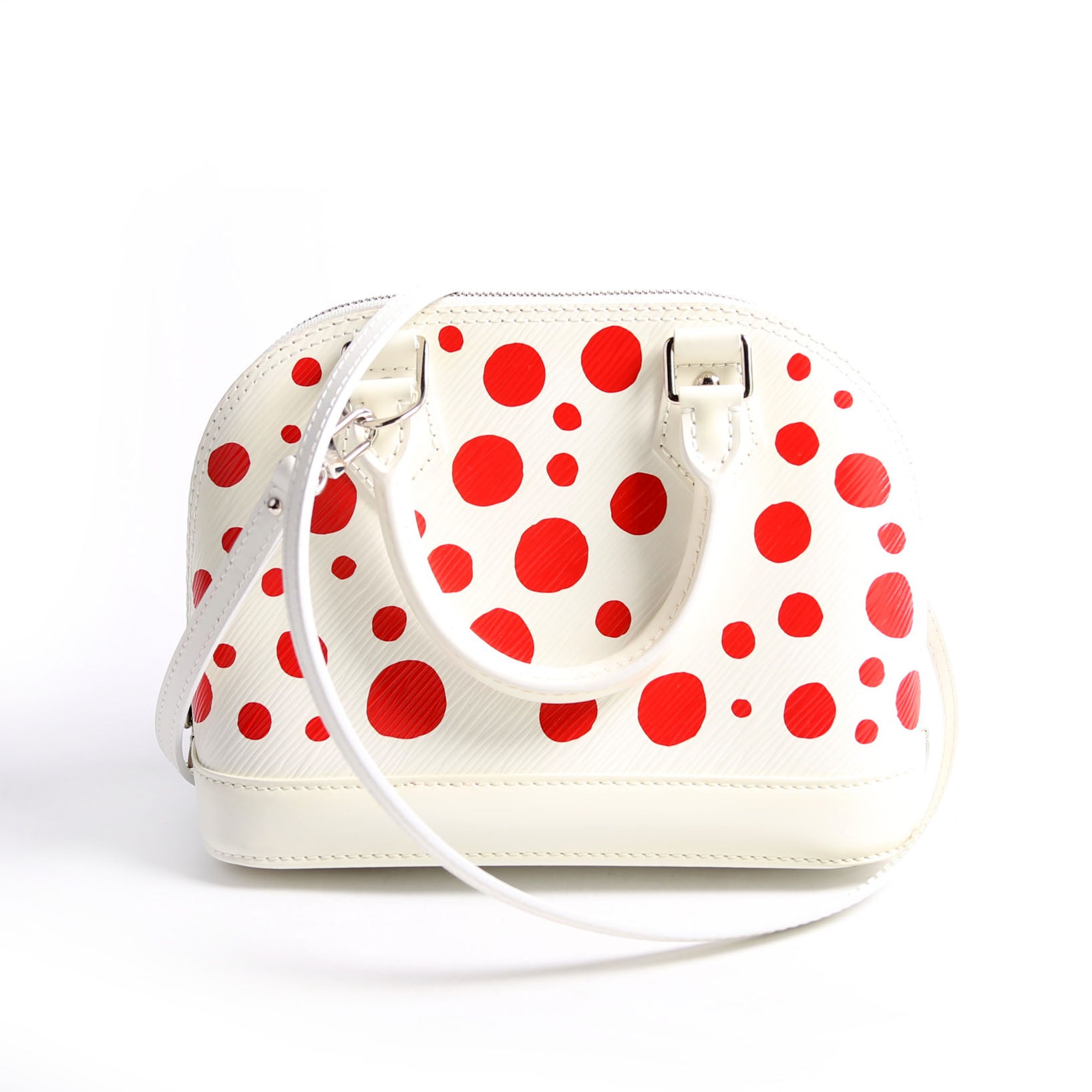 This pre-owned Louis Vuitton Alma BB Infinity Dots is guaranteed 100% authentic. The exterior is in the classic Louis Vuitton Epi Leather.