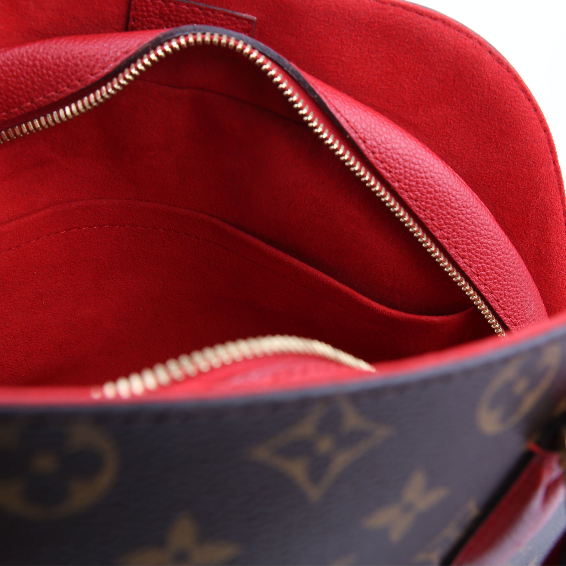 Interior: The interior shows light wear, and features three open pockets.
