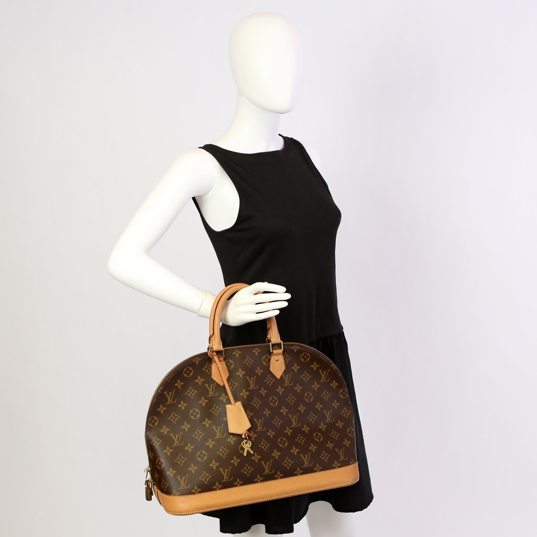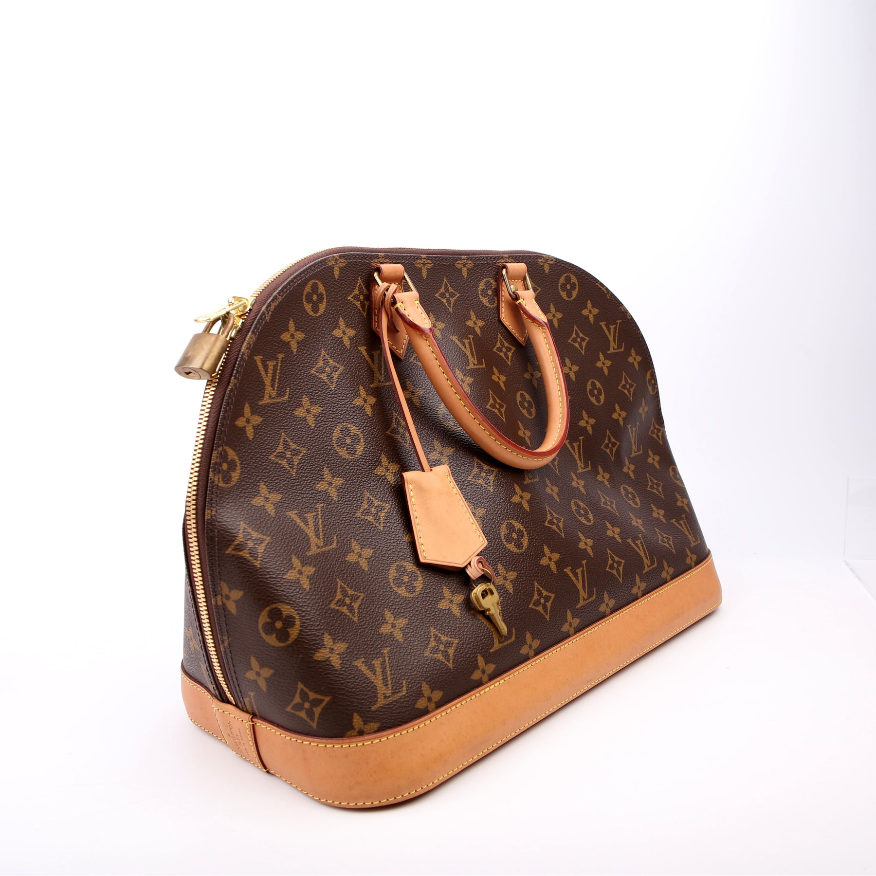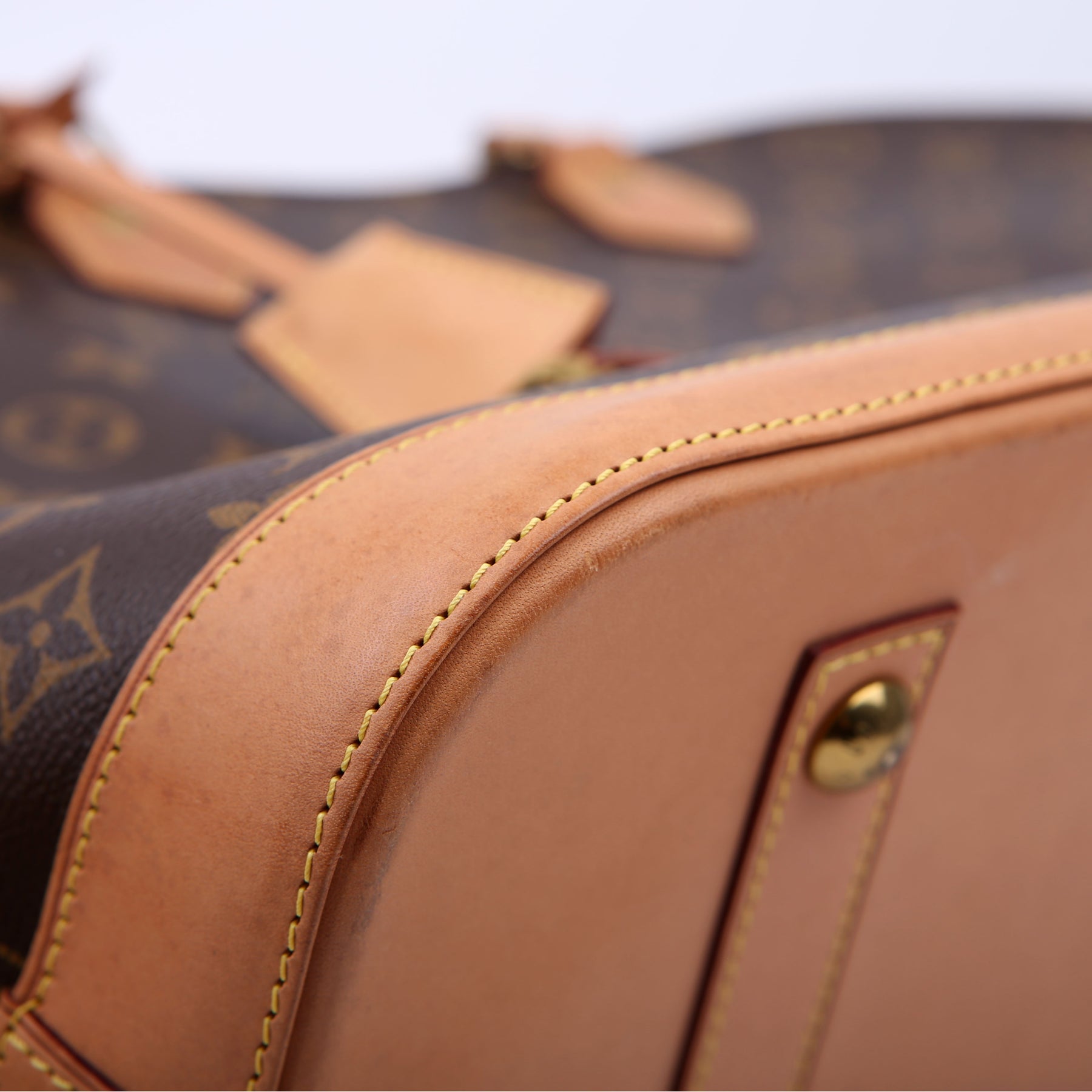 This pre-owned Louis Vuitton Alma GM is guaranteed 100% authentic. The exterior is in the classic Louis Vuitton Monogram coated canvas.