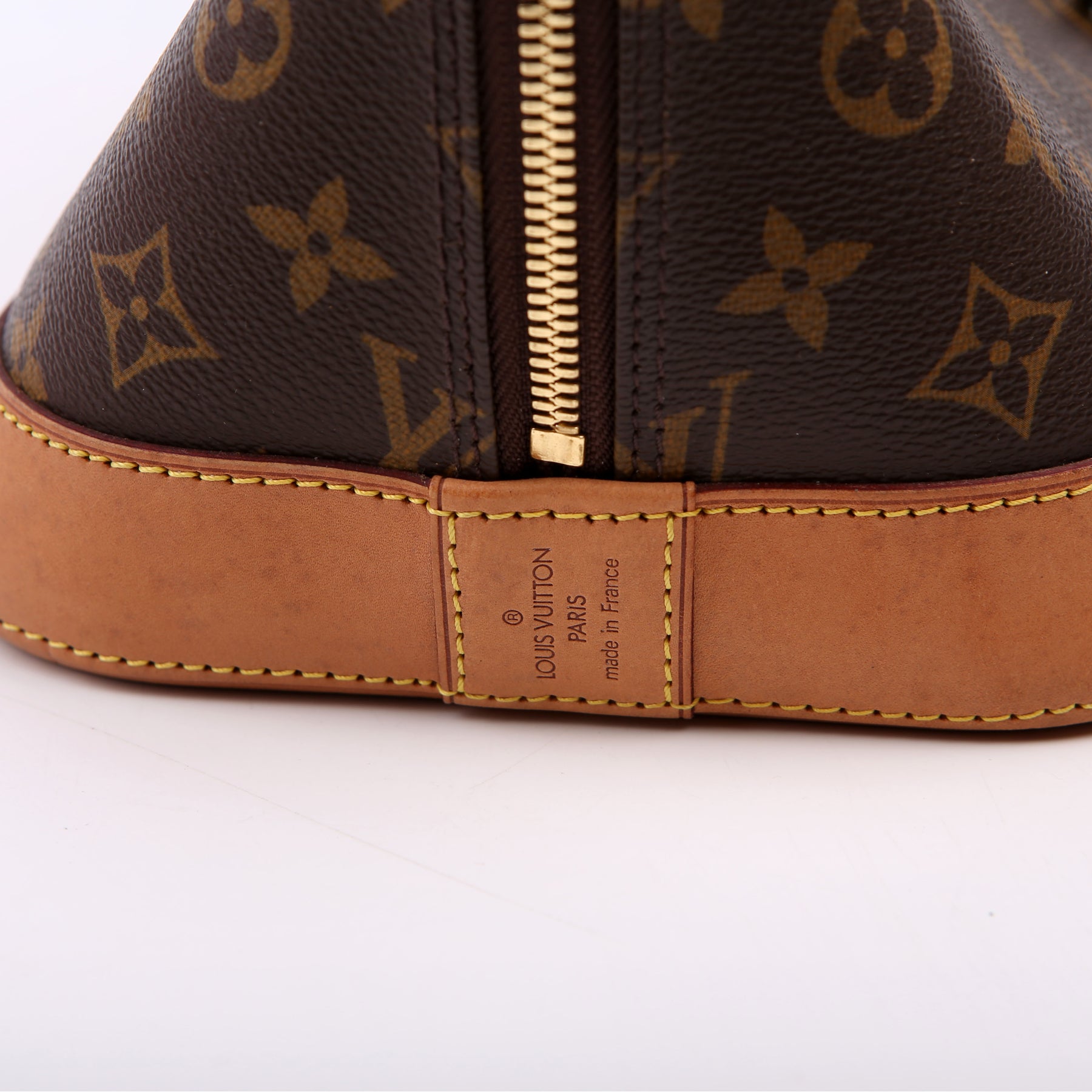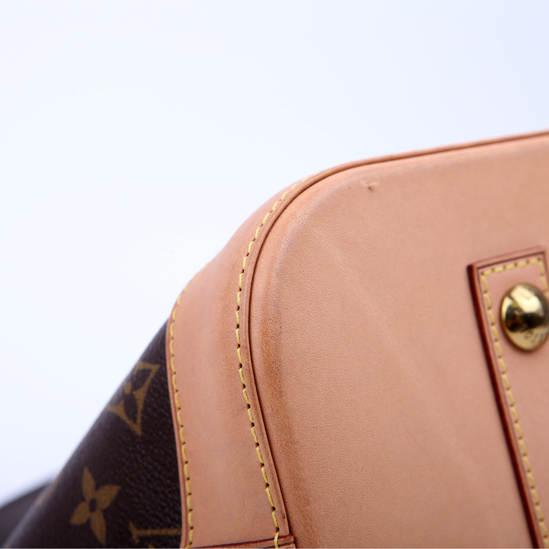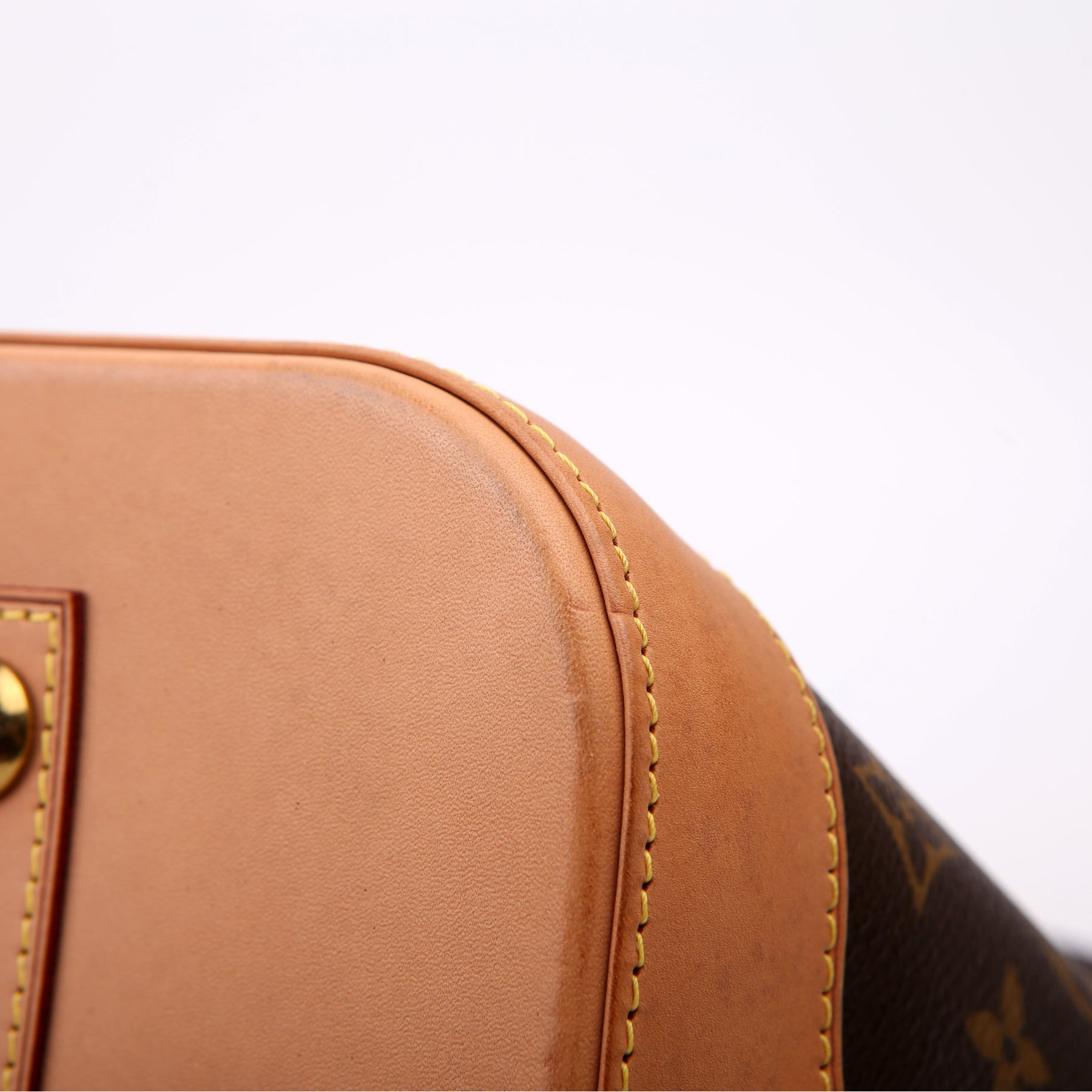 This pre-owned Louis Vuitton Alma GM is guaranteed 100% authentic. The exterior is in the classic Louis Vuitton Monogram coated canvas.