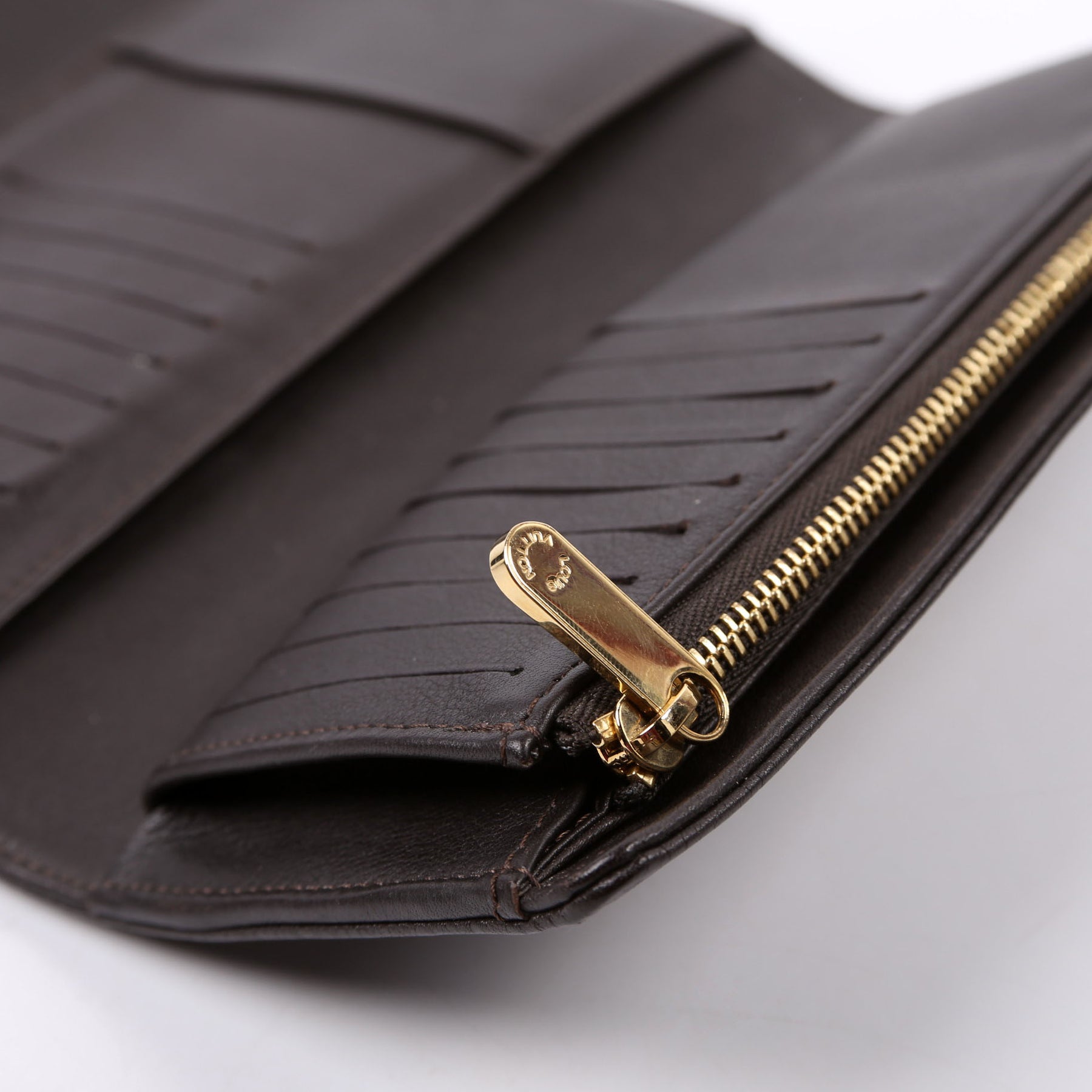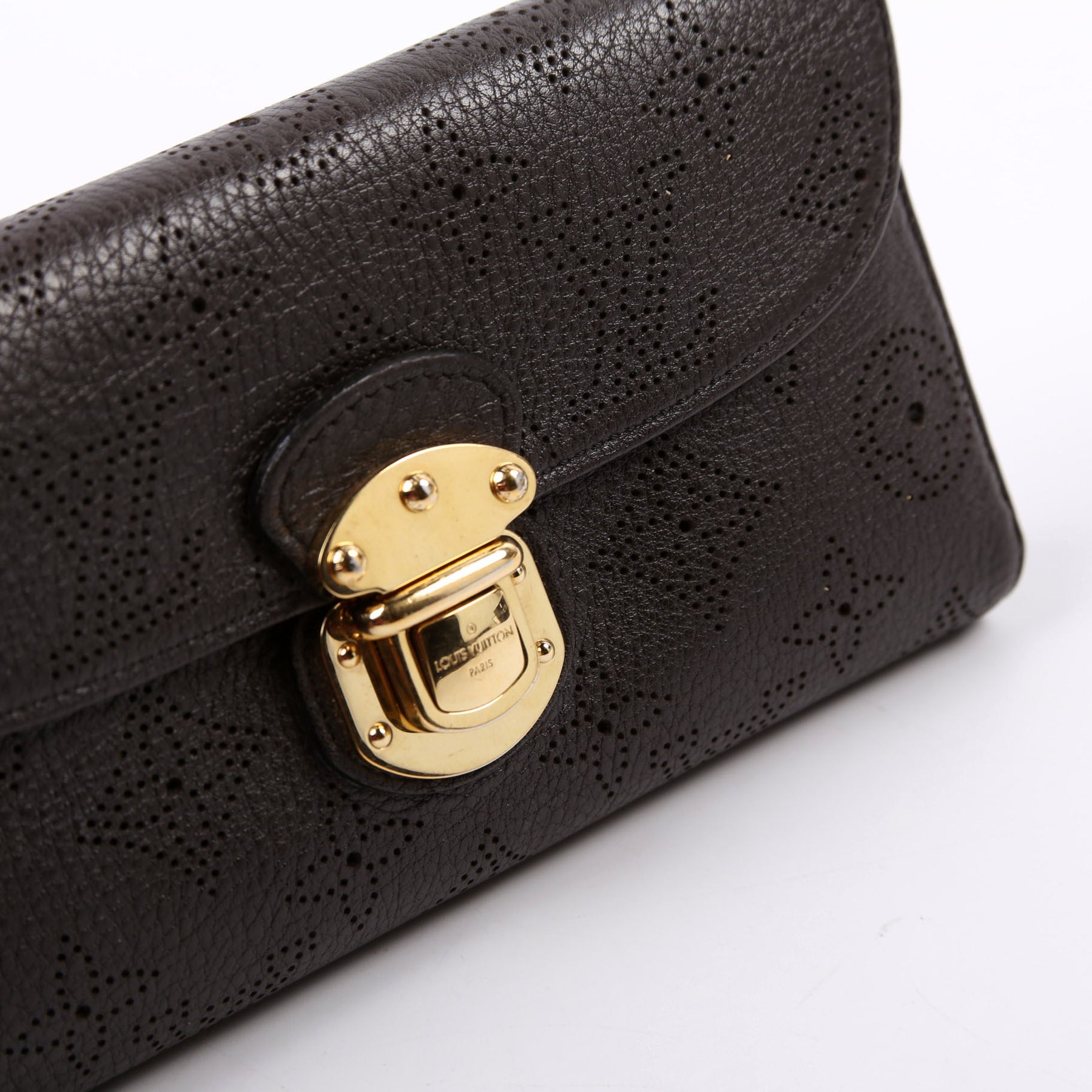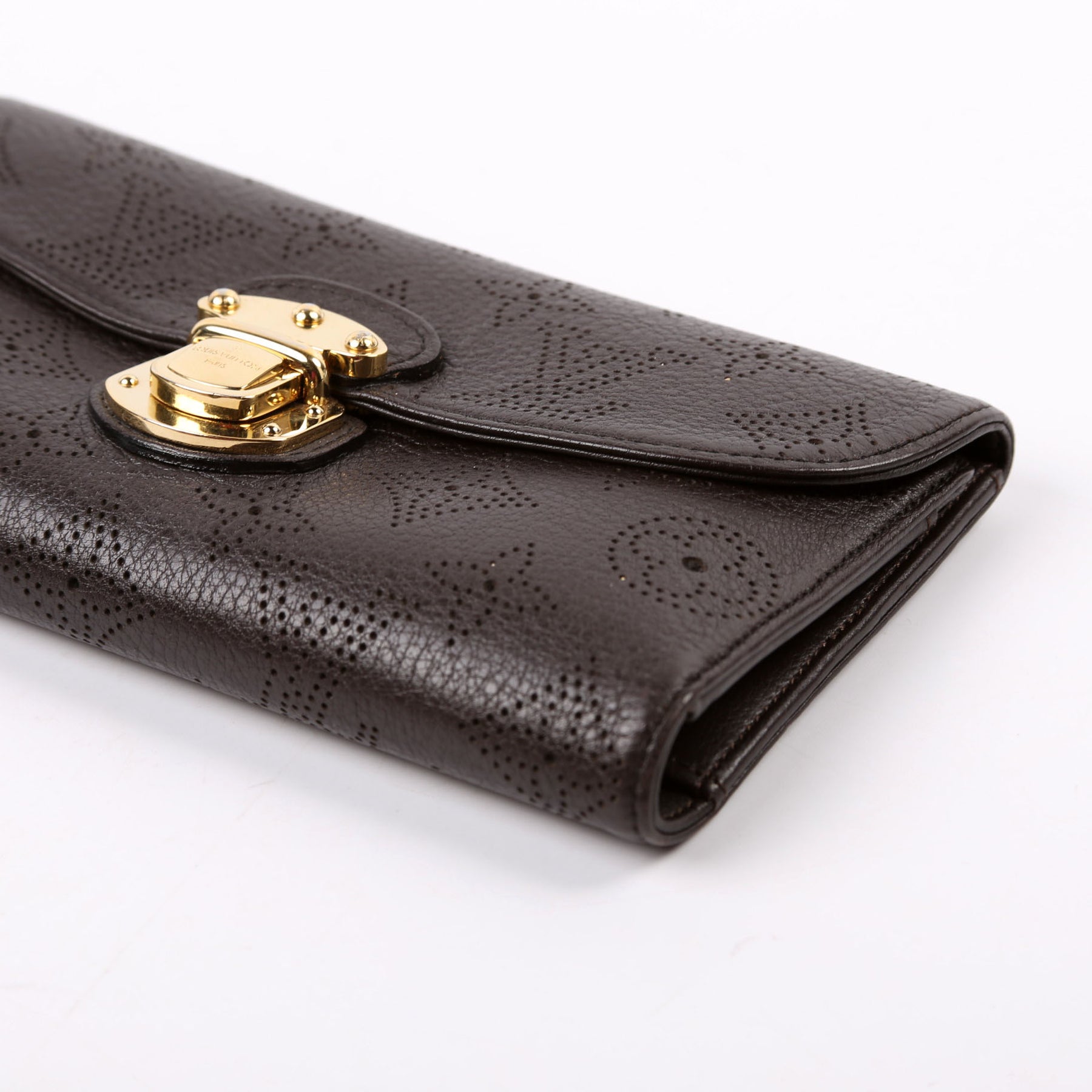 This pre-owned Louis Vuitton Amelia Wallet is guaranteed 100% authentic. The exterior is in the classic Mahina leather.