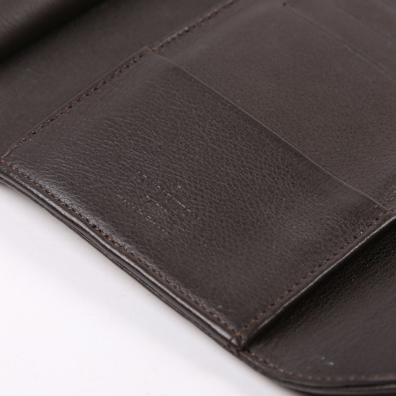 Interior: The interior is free of rips or tears. It features eighteen card slots, three bill slots, one ID slot, and one zipper closure pocket.