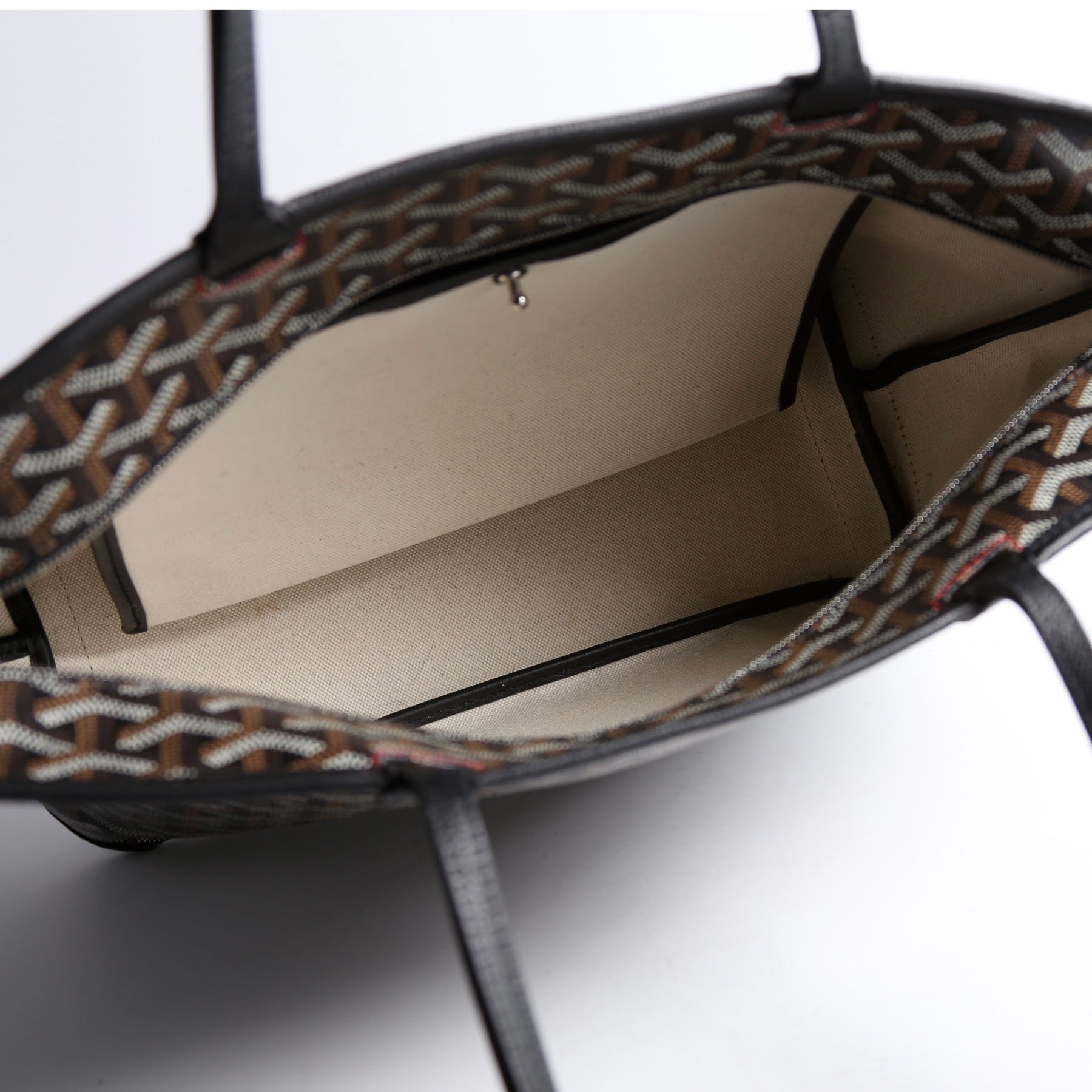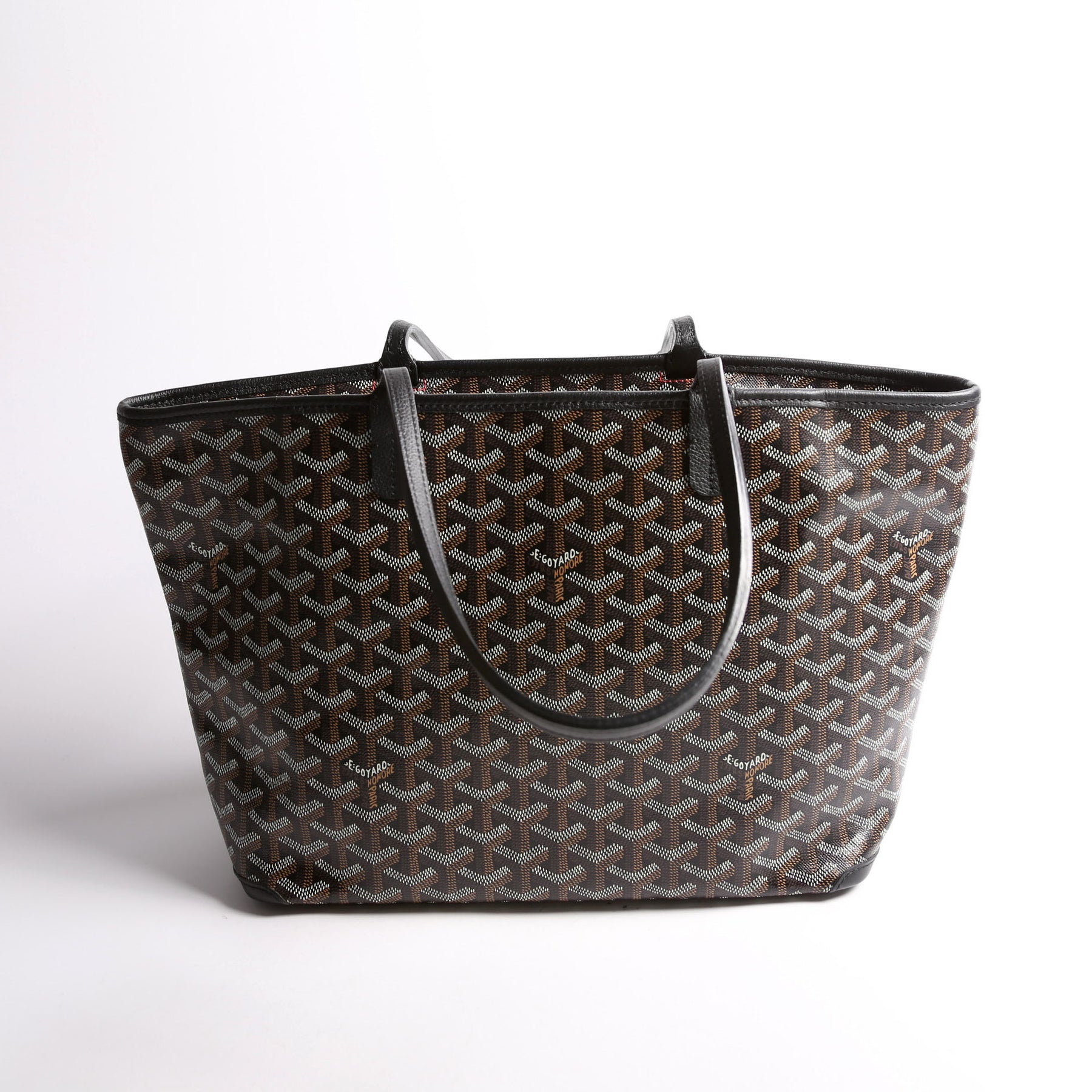This pre-owned Goyard Artois PM Tote is guaranteed 100% authentic. The exterior is in the classic Goyard Goyardine Coated Canvas