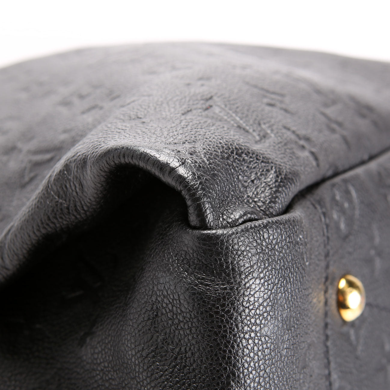 Exterior: The exterior leather shows light marks and wear throughout. The corners show wear and rubbing.