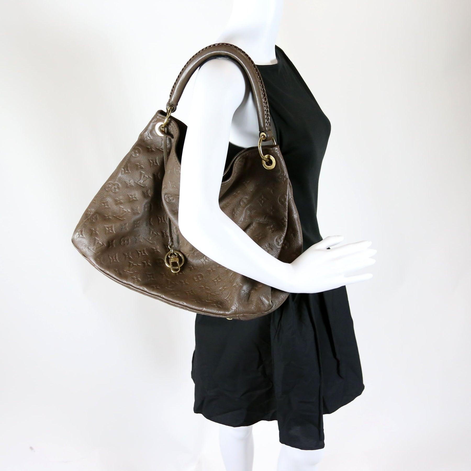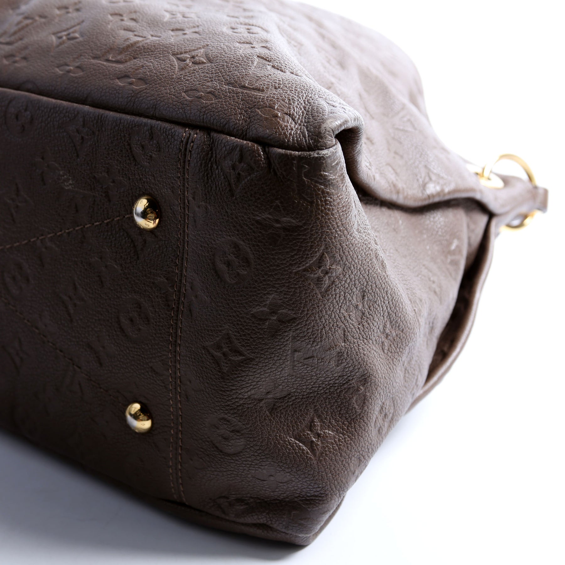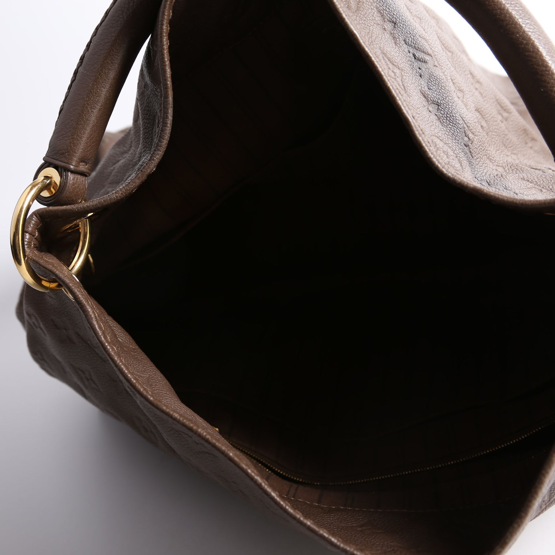 These pre-owned Louis Vuitton Artsy MM are guaranteed 100% authentic. The exterior is in the classic Empreinte leather.