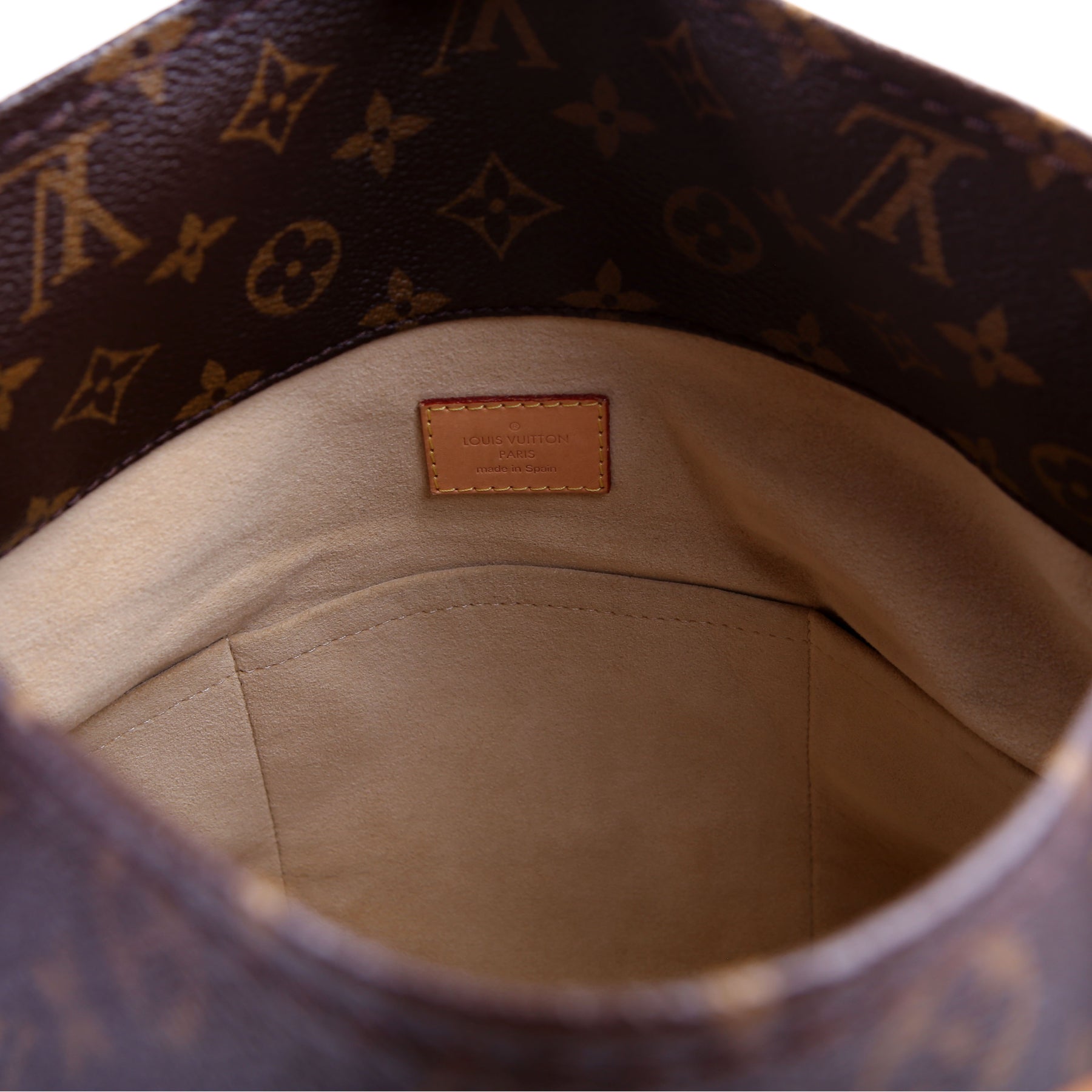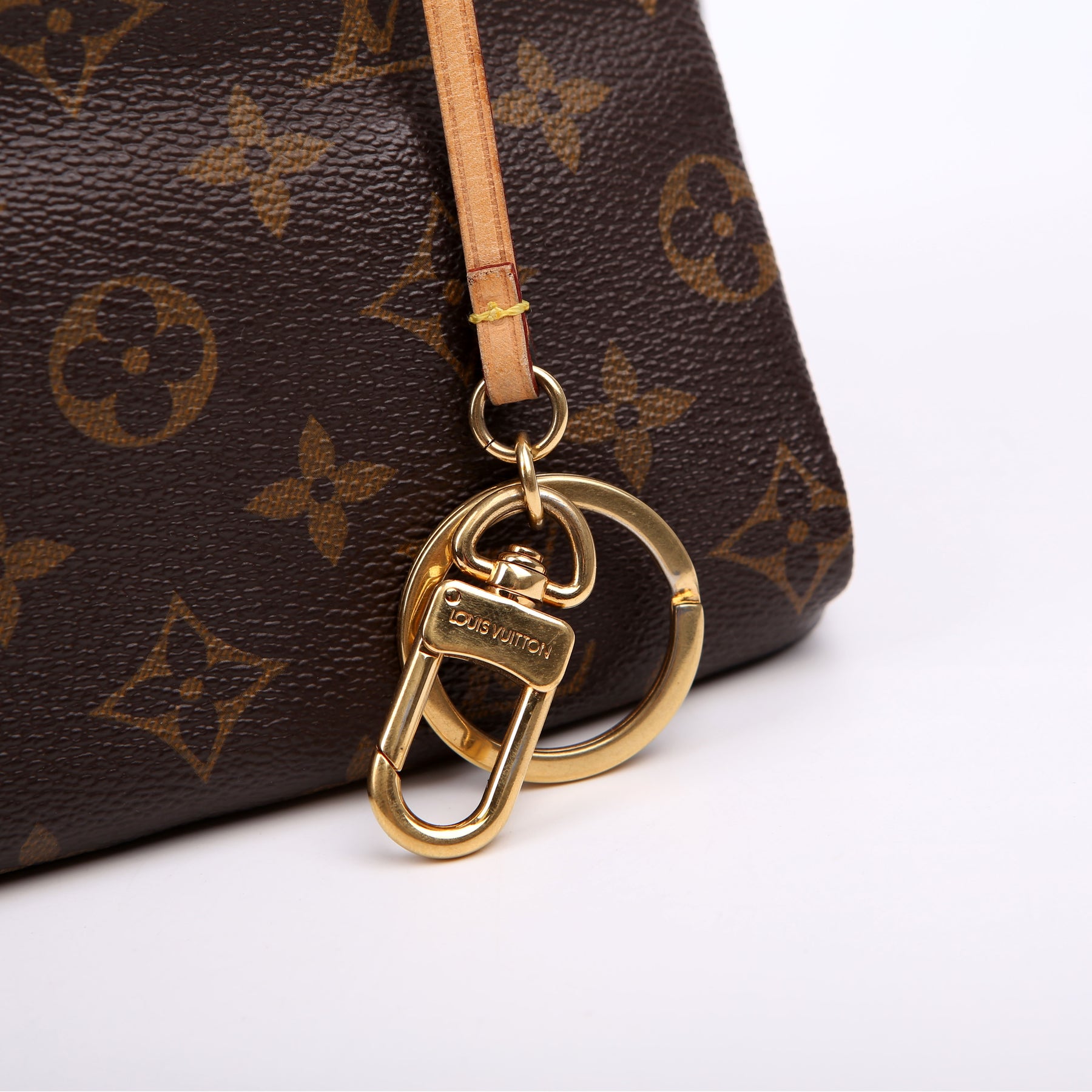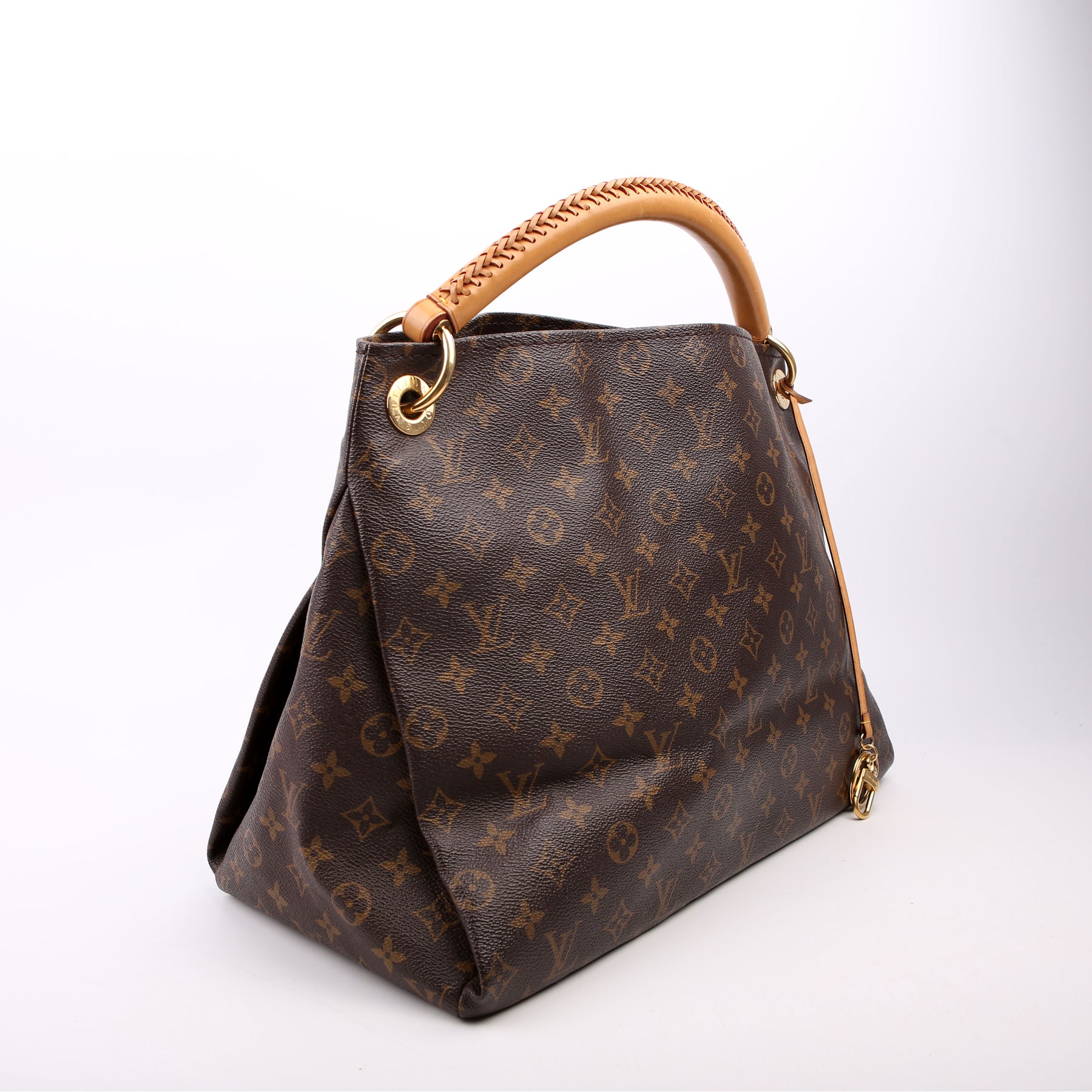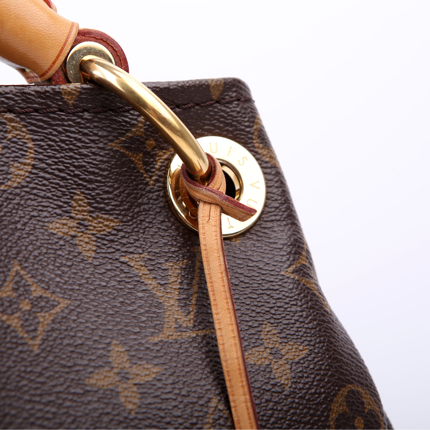 This pre-owned Louis Vuitton Artsy MM is guaranteed 100% authentic. The exterior is in the classic Louis Vuitton Monogram coated canvas.