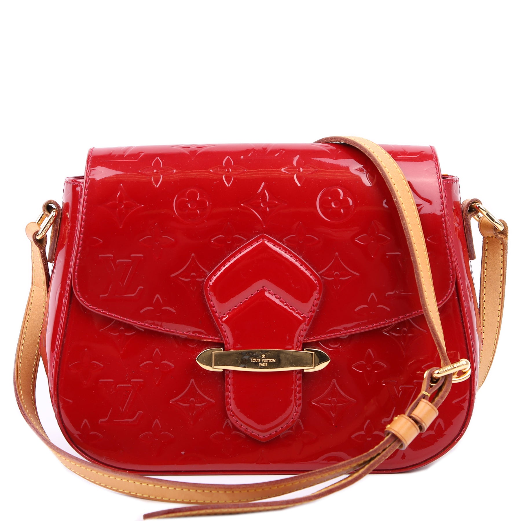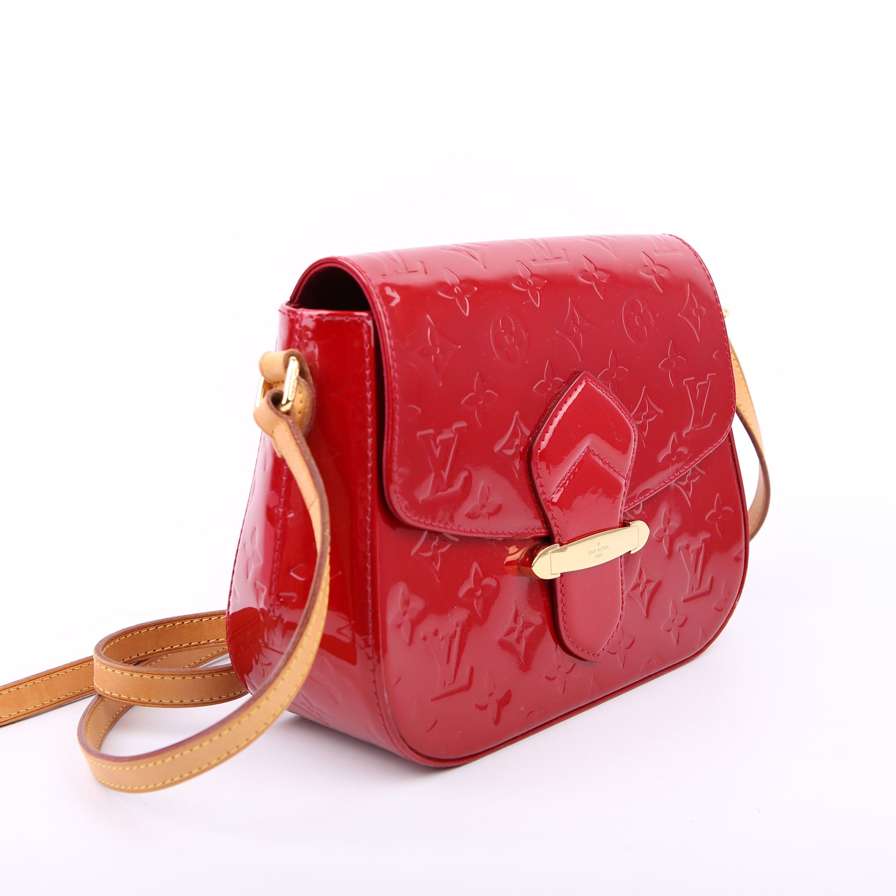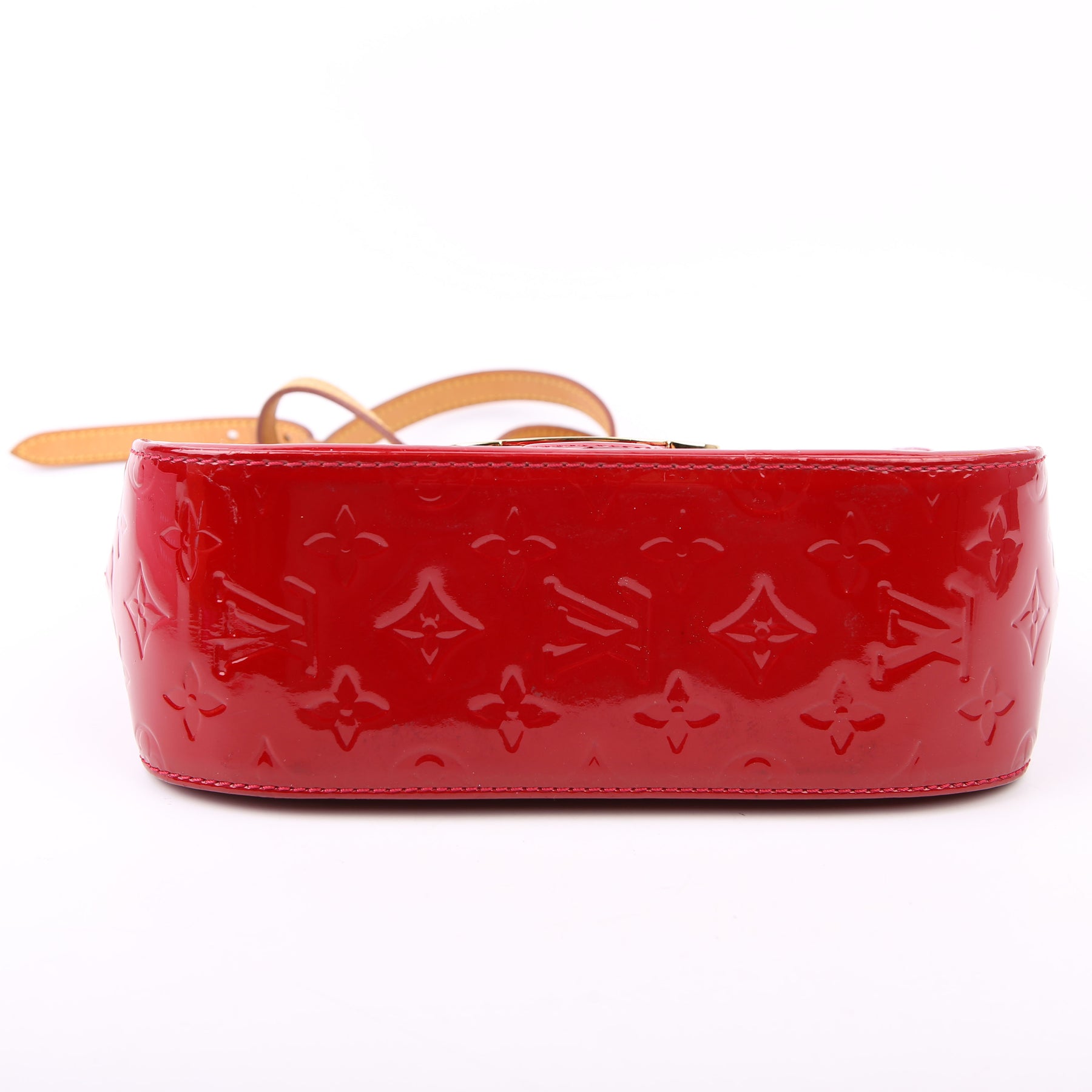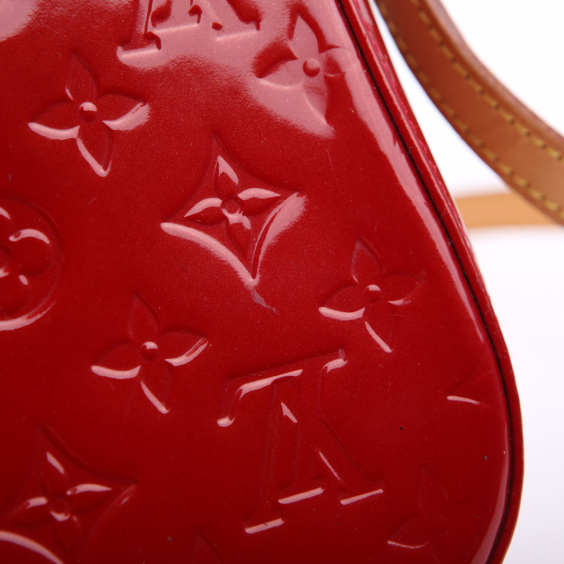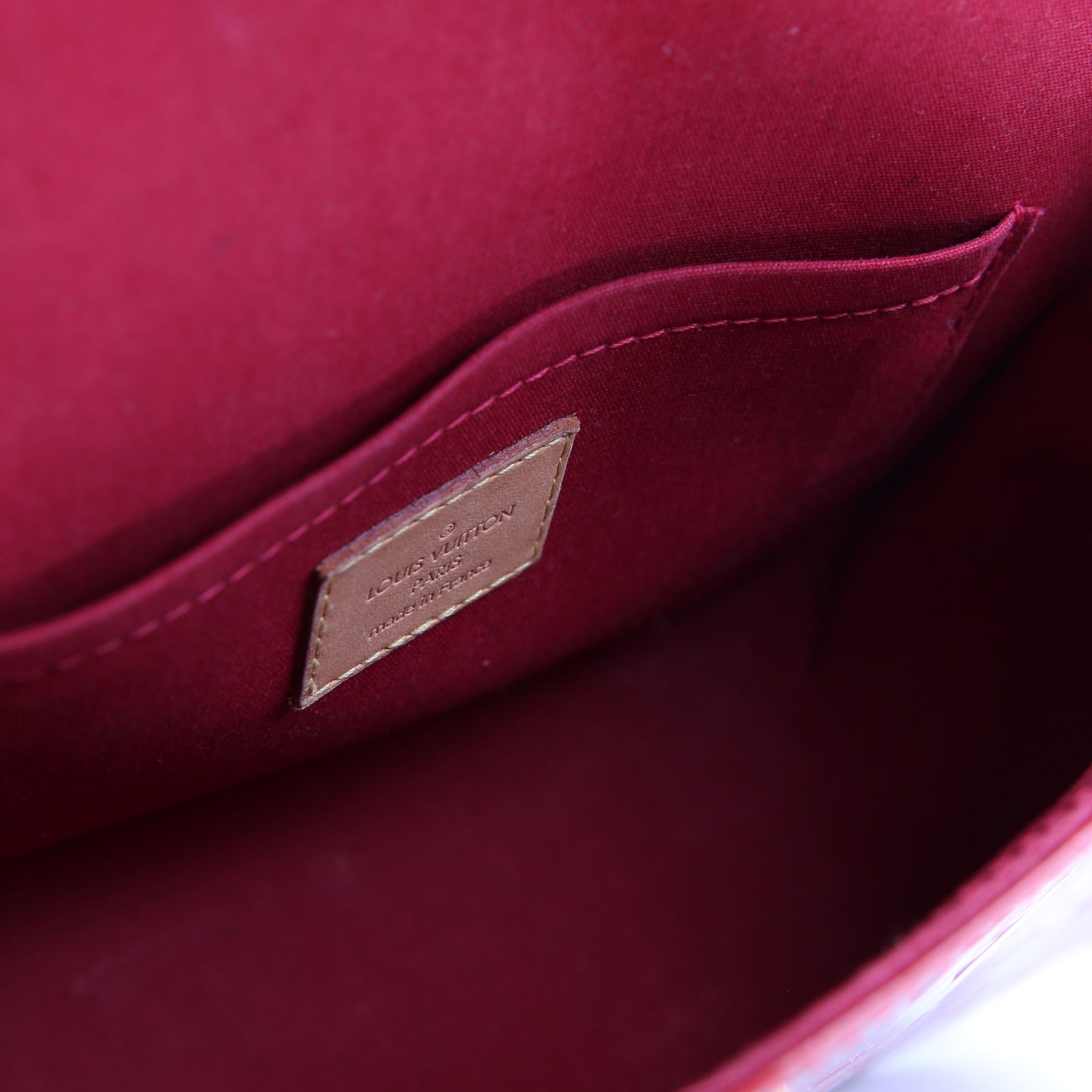 This pre-owned Louis Vuitton Bellflower PM is guaranteed 100% authentic. The exterior is in the classic Vernis patent leather.