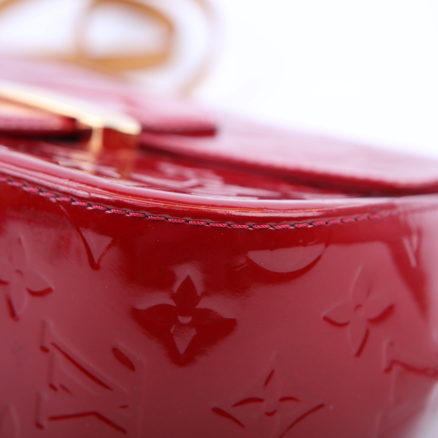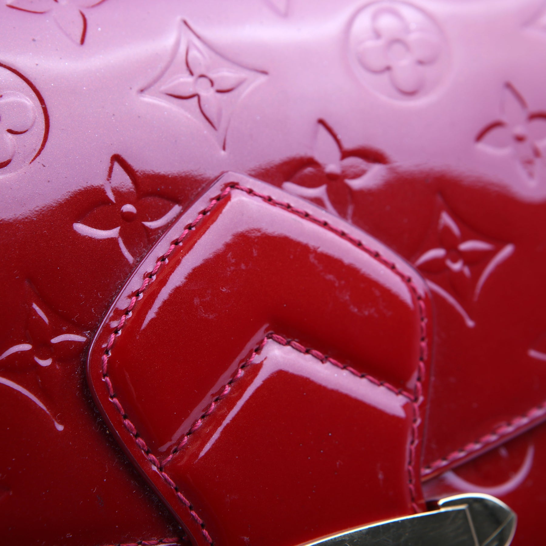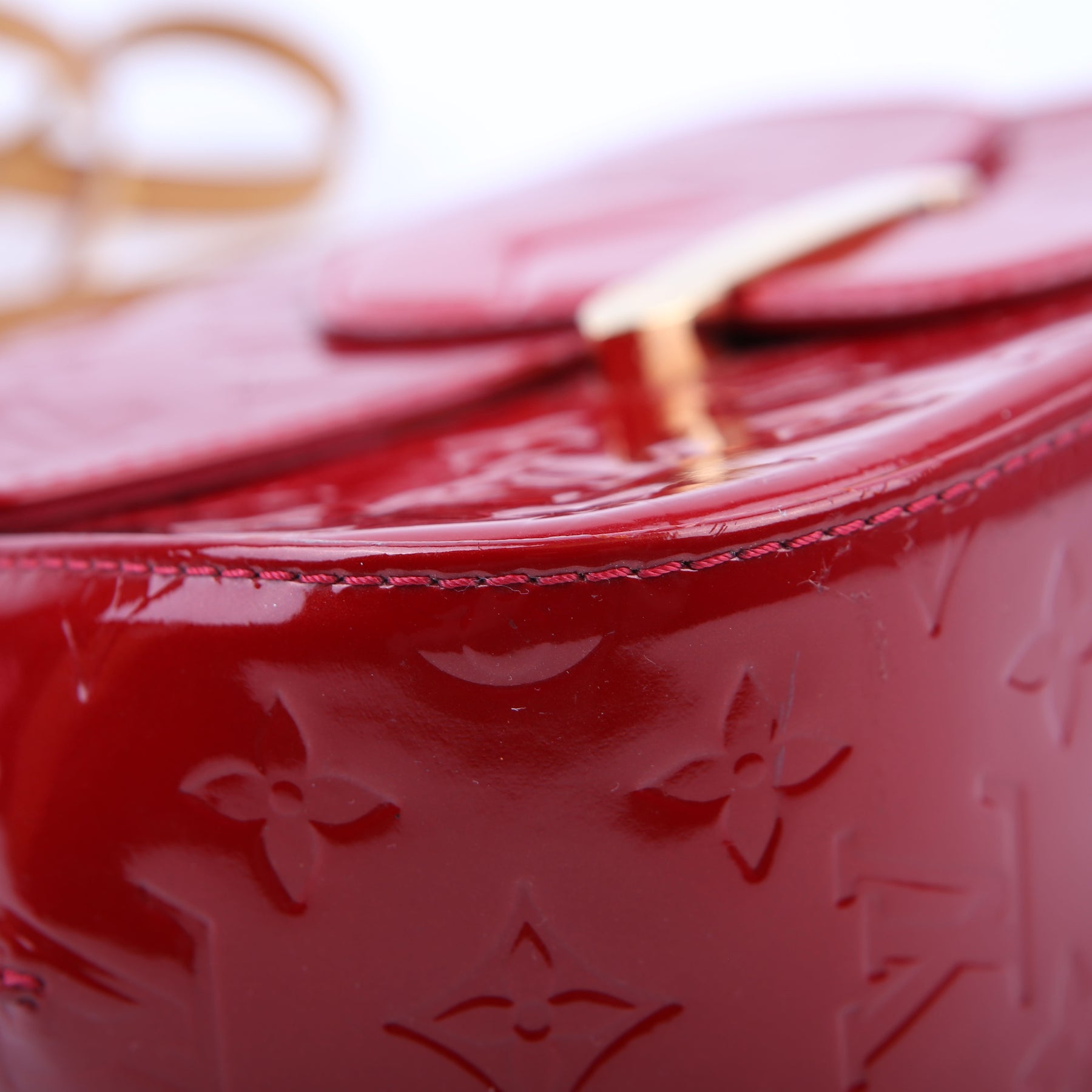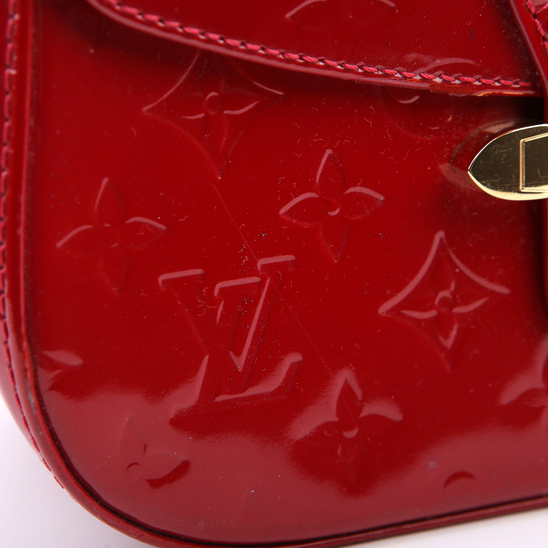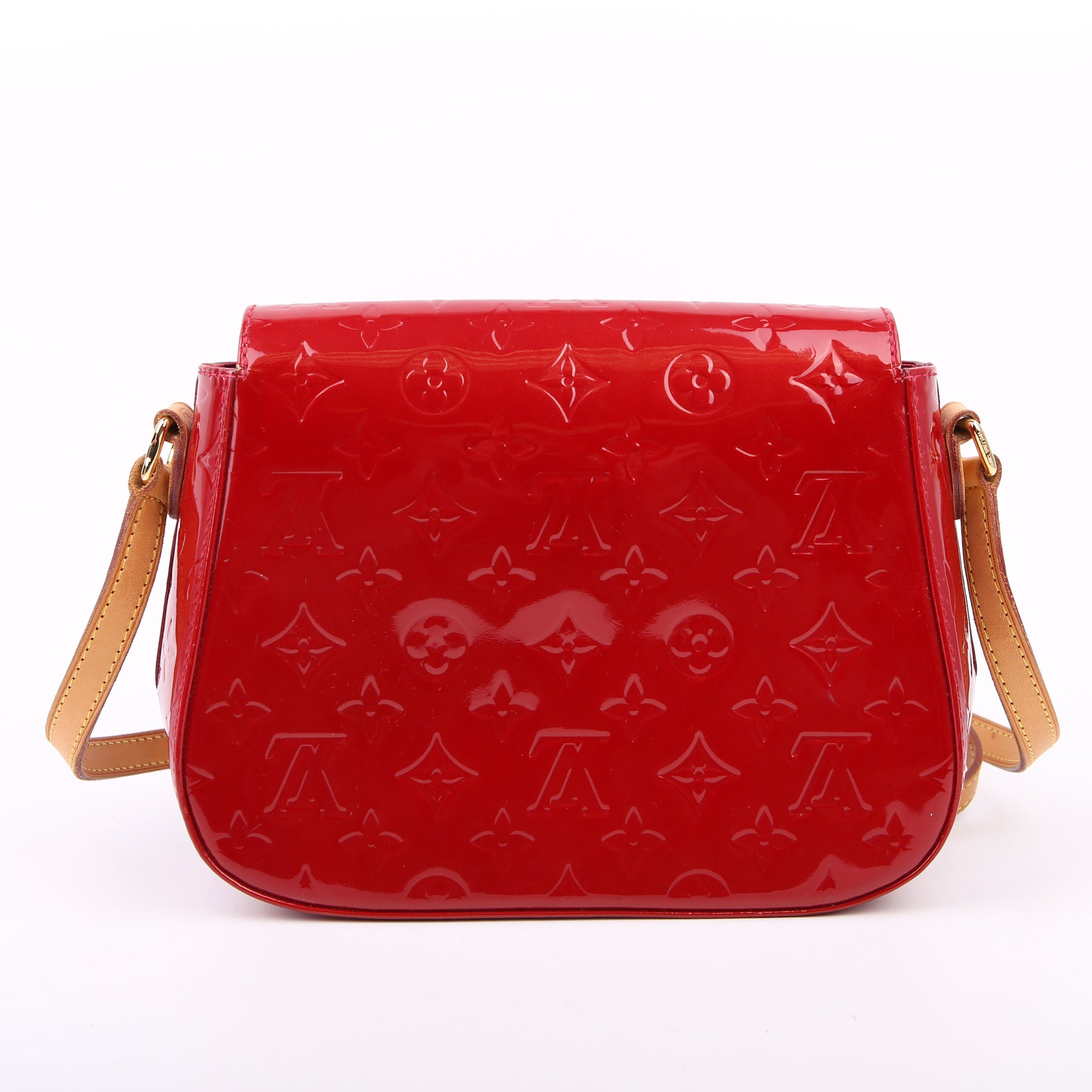 This pre-owned Louis Vuitton Bellflower PM is guaranteed 100% authentic. The exterior is in the classic Vernis patent leather.