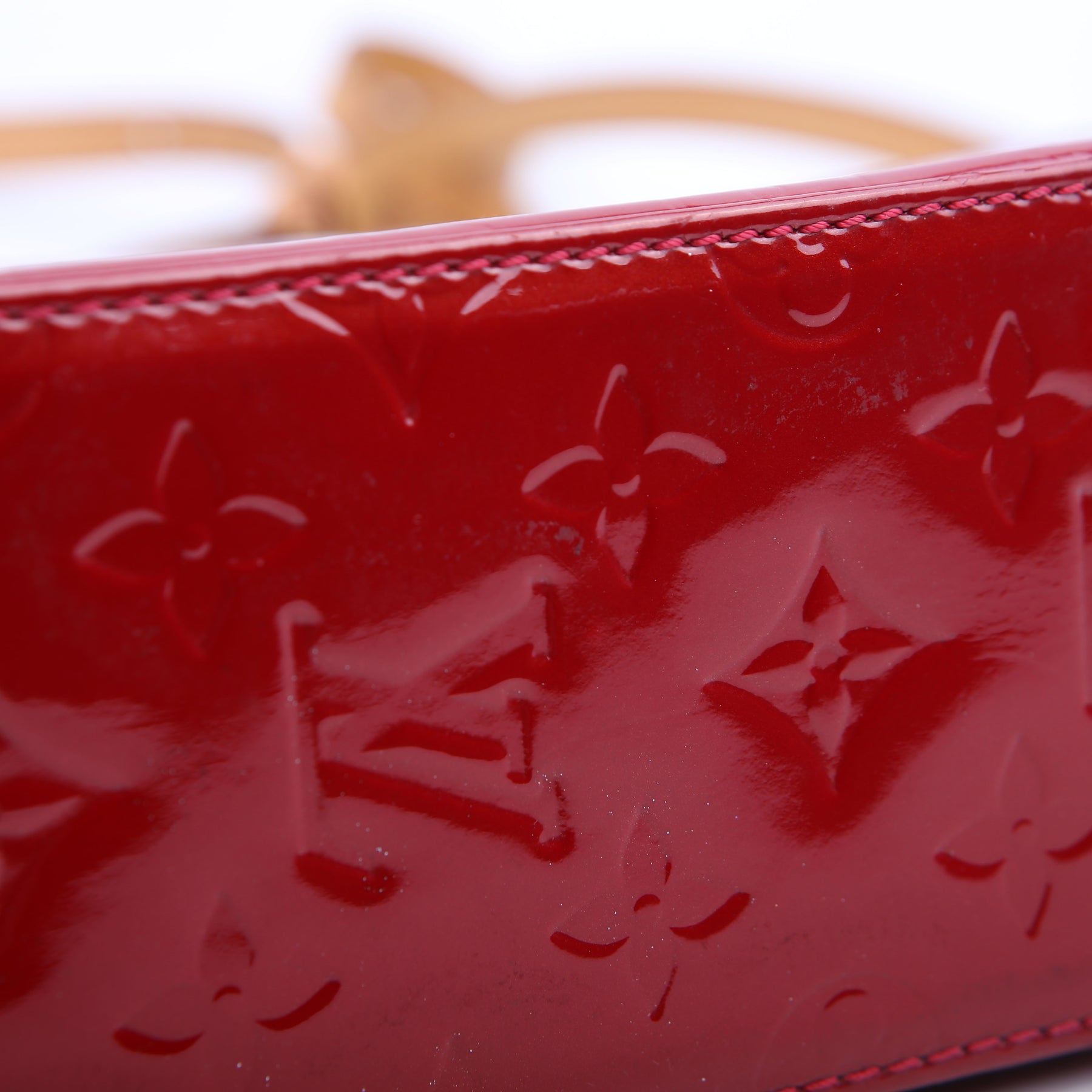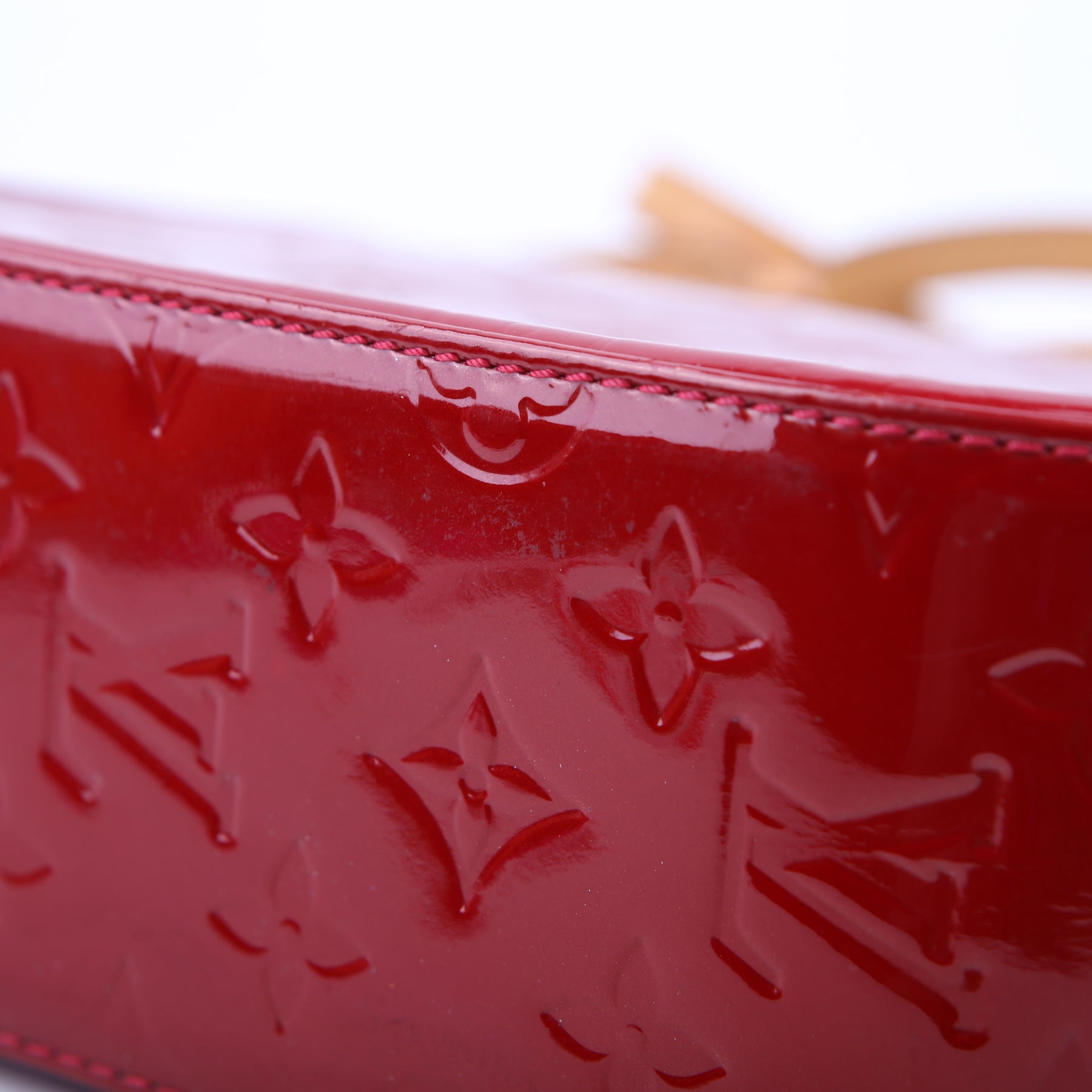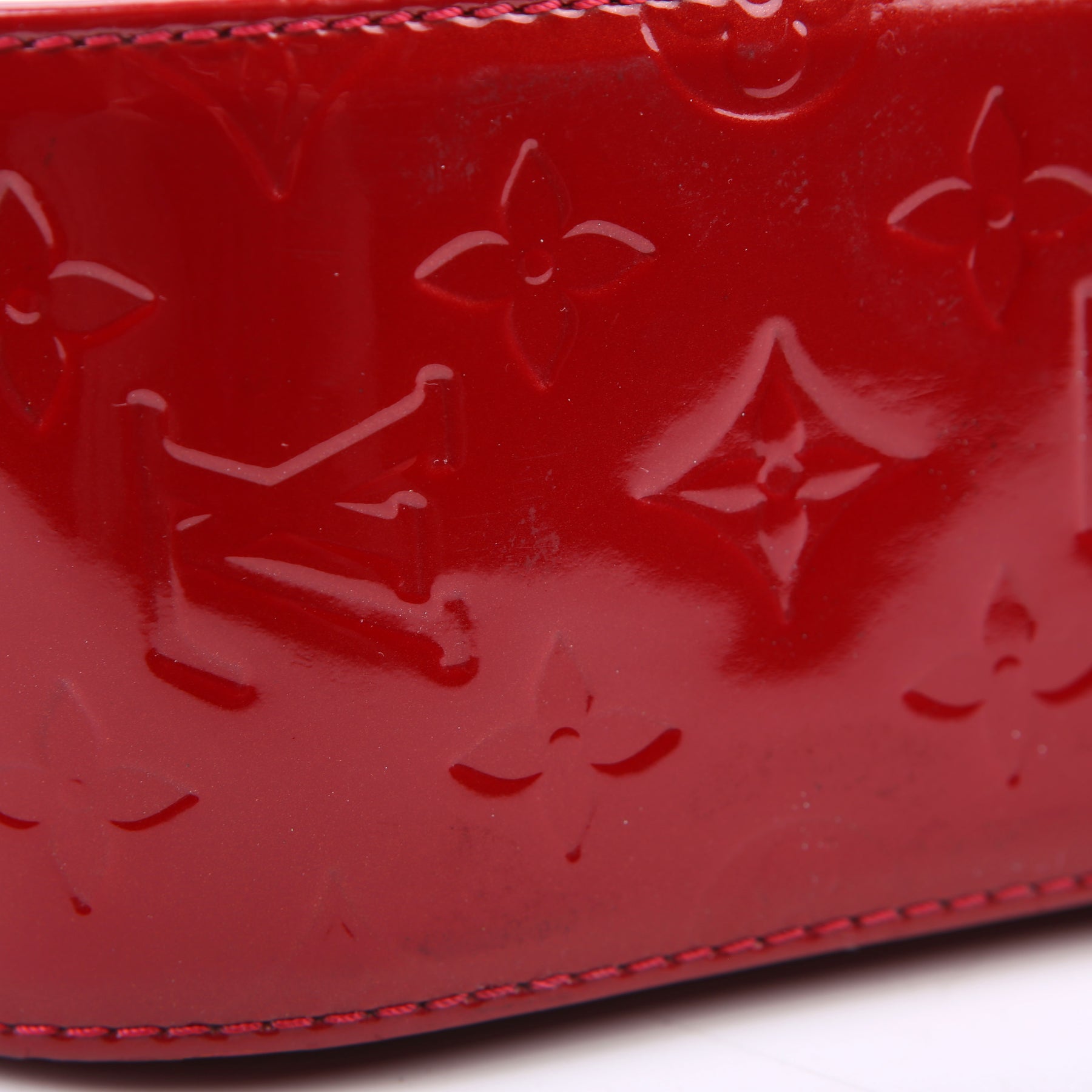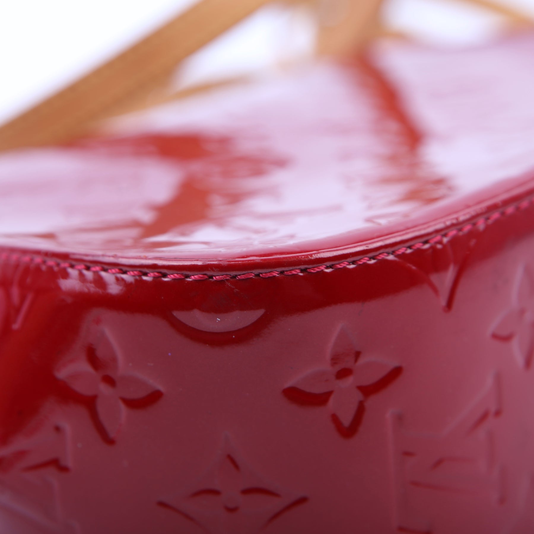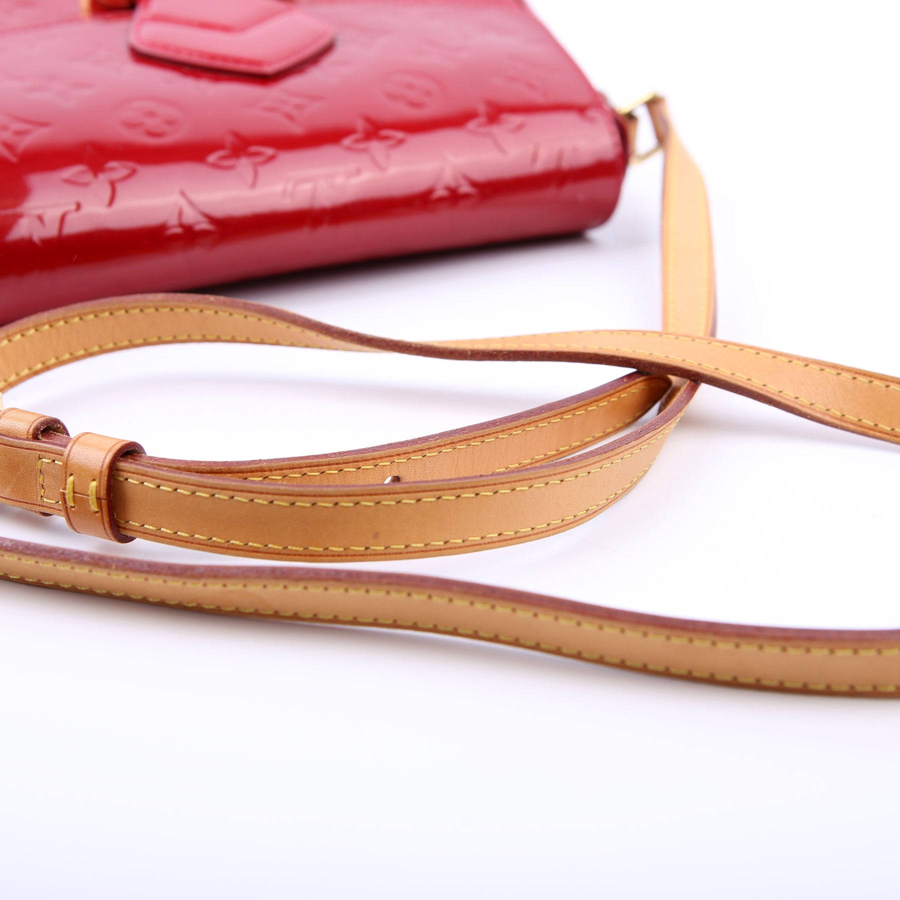 This pre-owned Louis Vuitton Bellflower PM is guaranteed 100% authentic. The exterior is in the classic Vernis patent leather.
