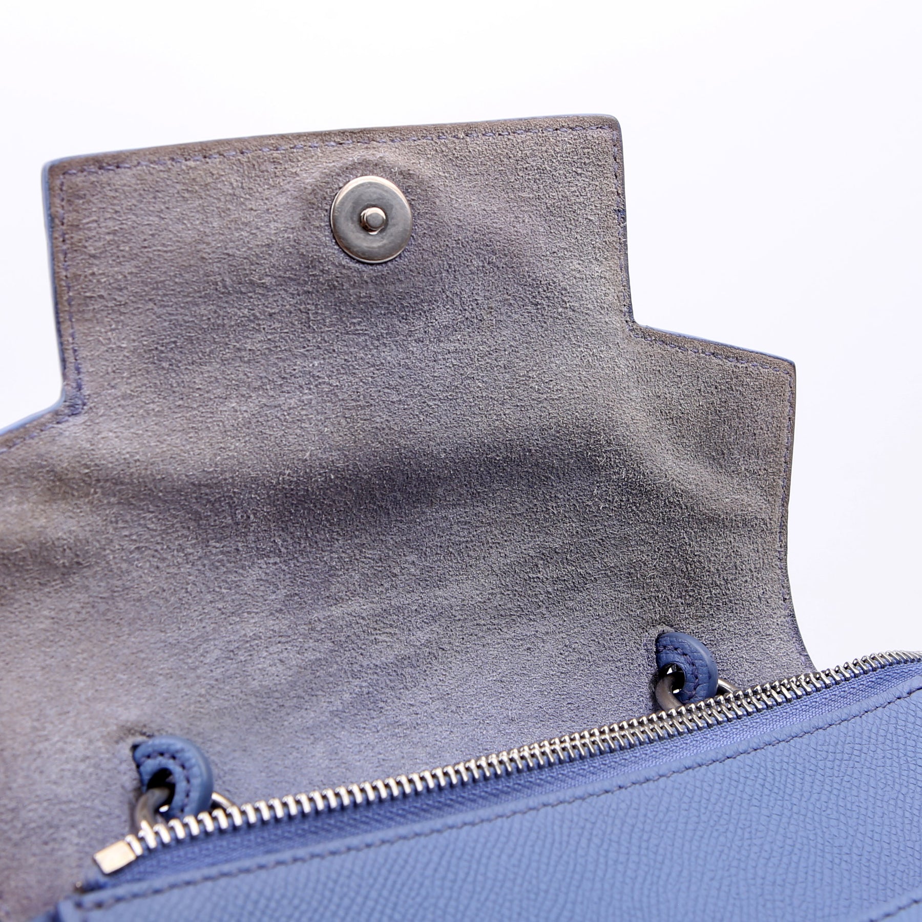 Hardware: The zipper and magnetic closure operate properly. The leather zipper pull shows minor wear.