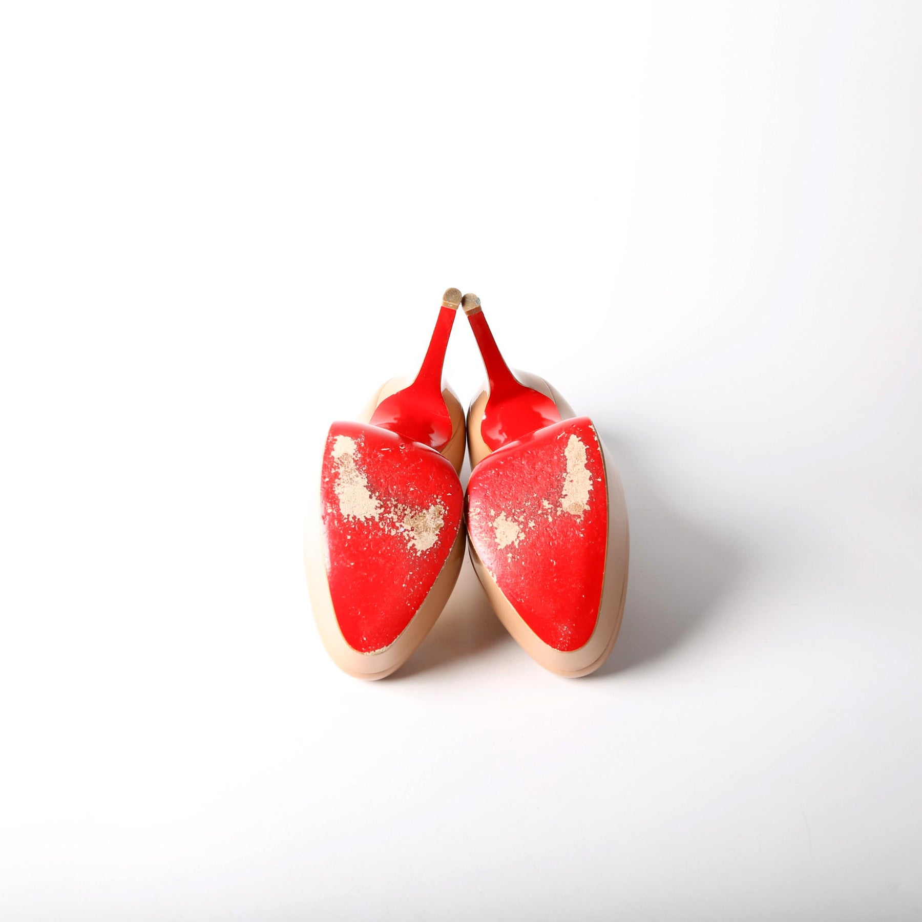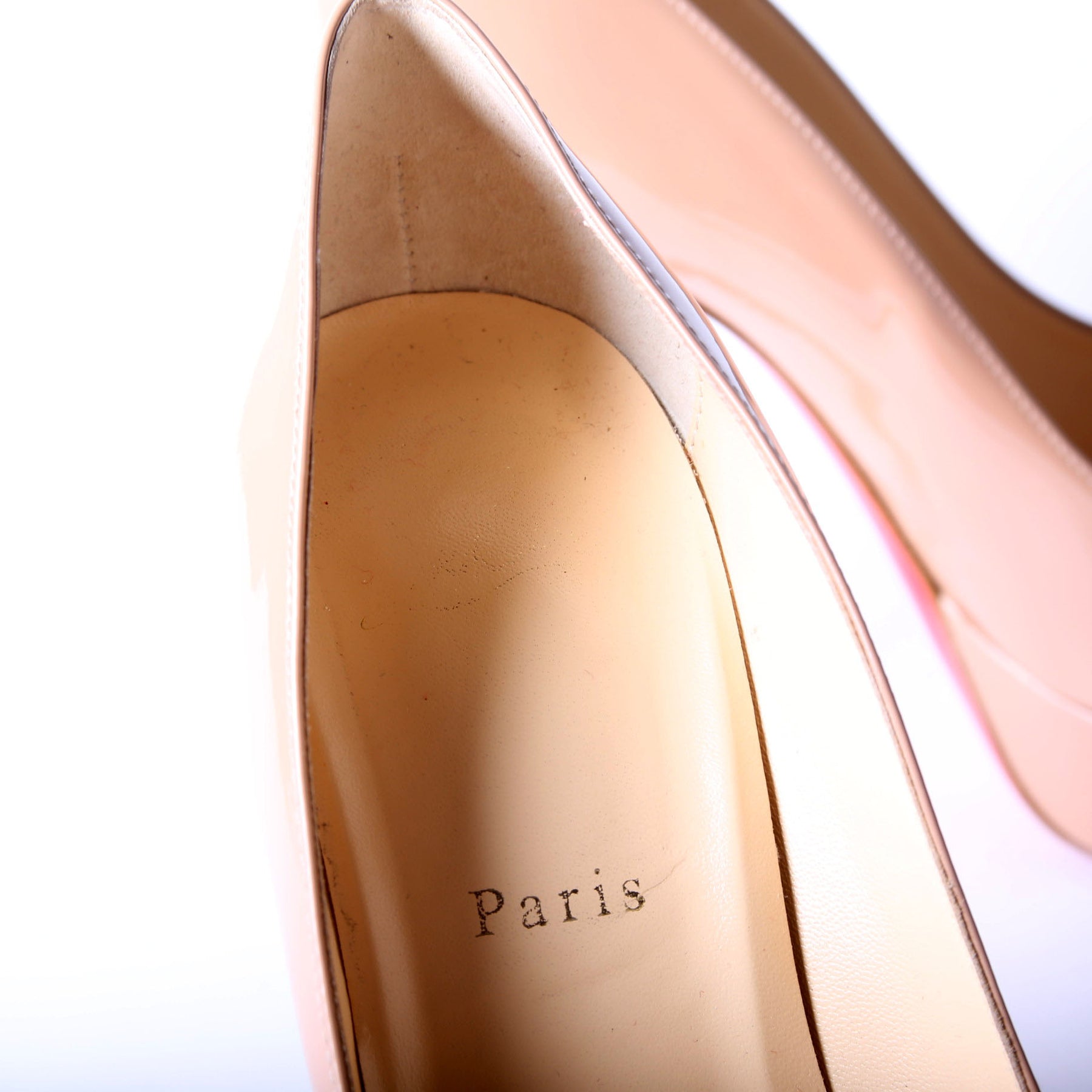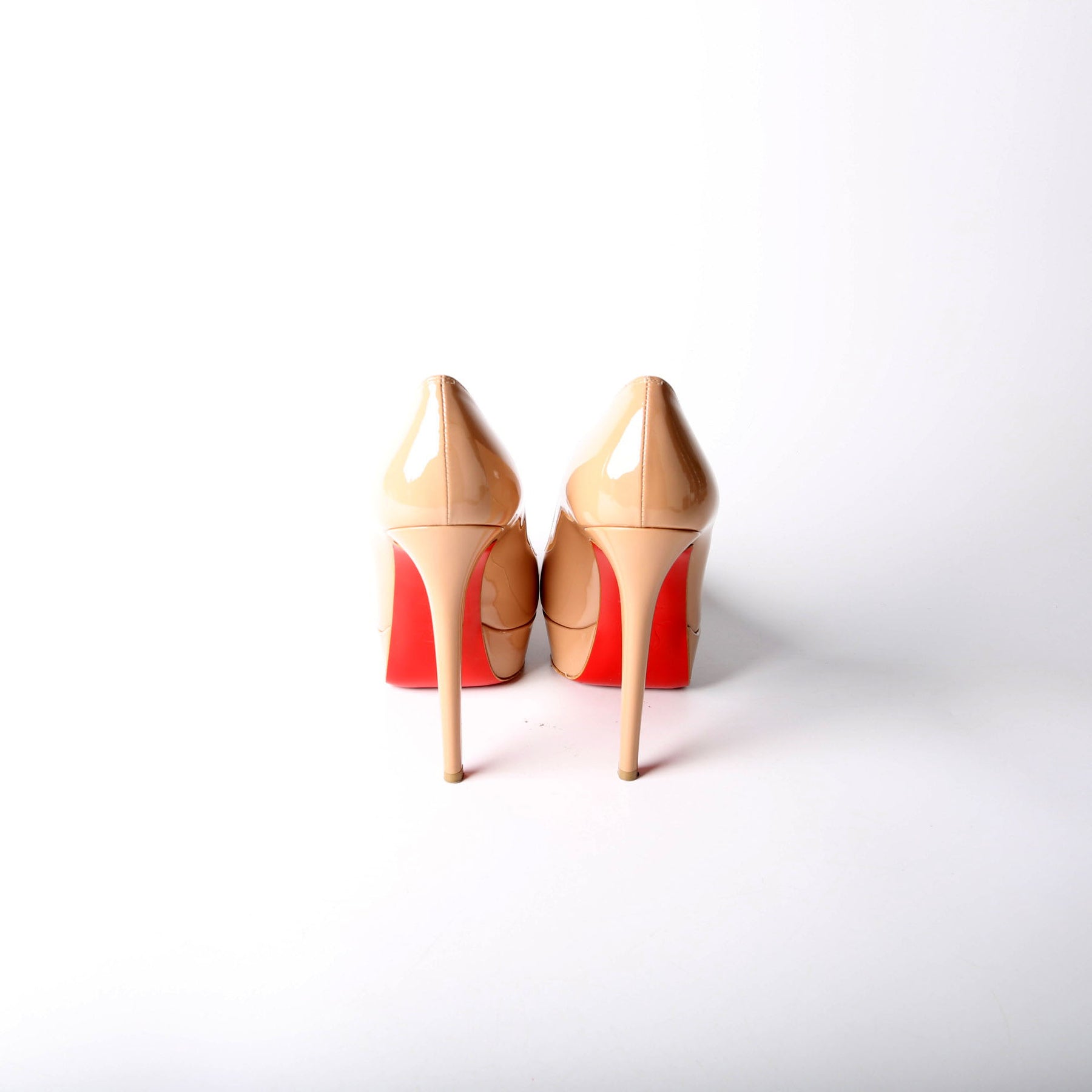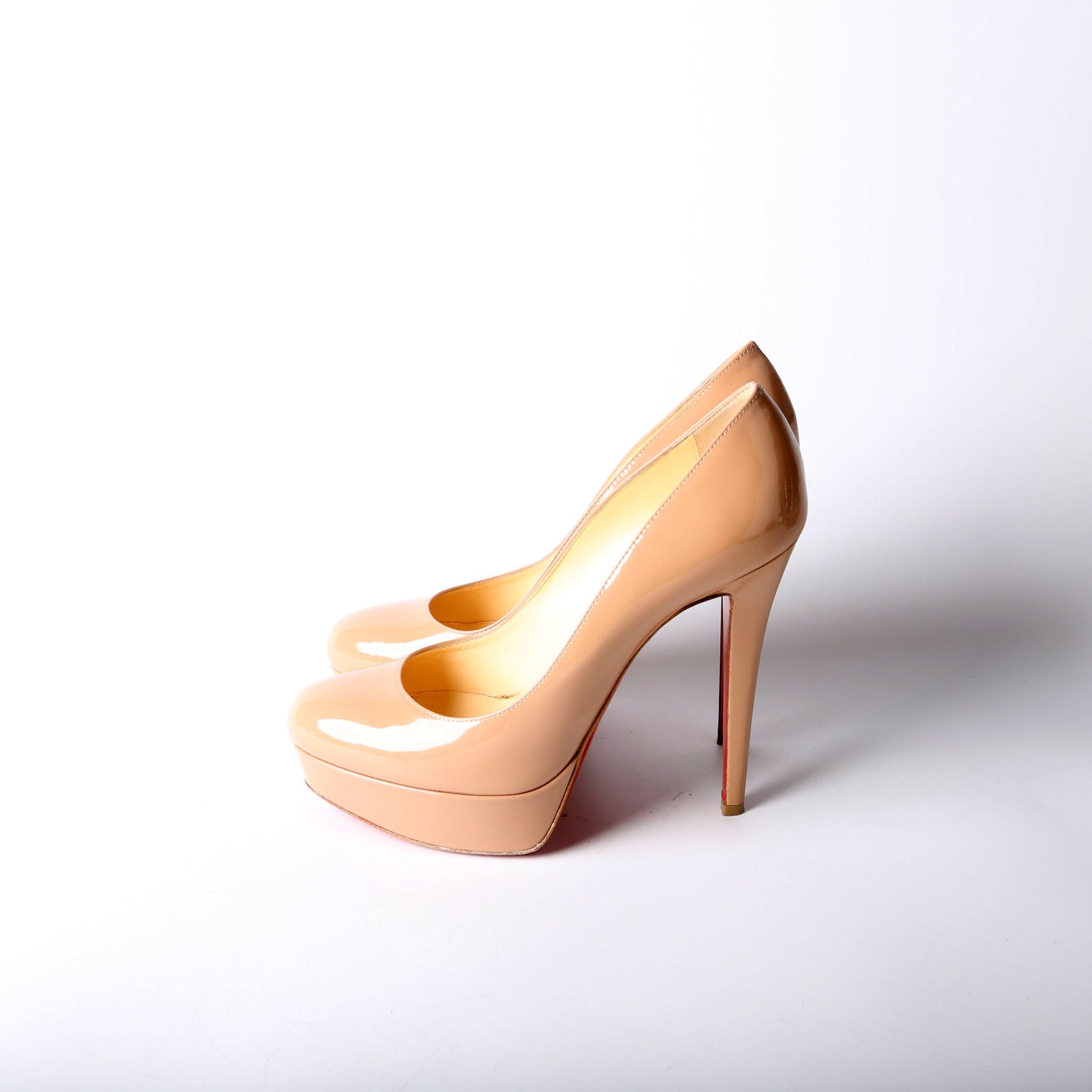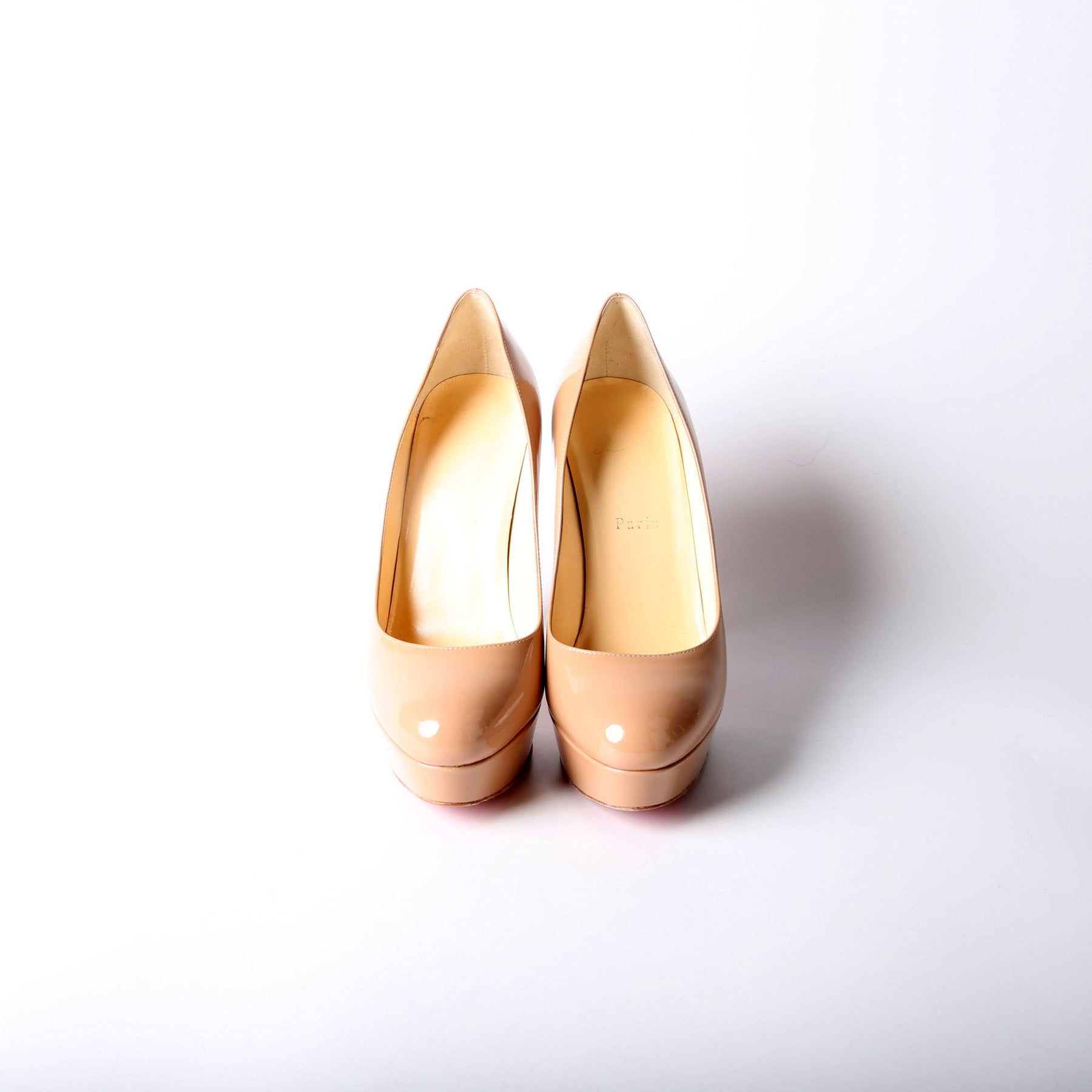 These pre-owned Christian Louboutin Bianca 140 Patent Platform Pumps are guaranteed 100% authentic.
