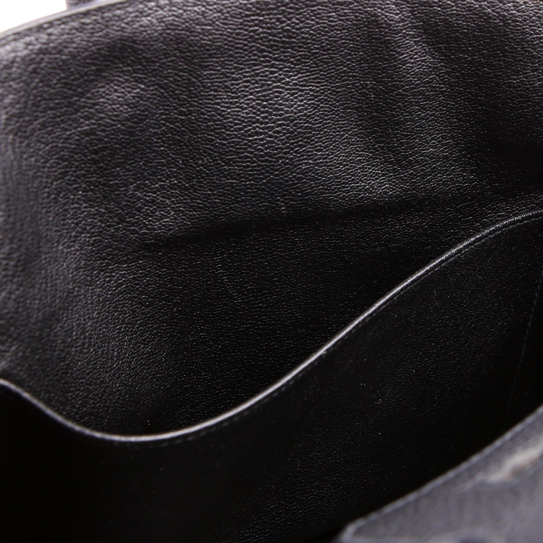 Interior: The interior leather has minor scuffs to the base and inside the open pocket. It features one open pocket, and one zipper pocket.