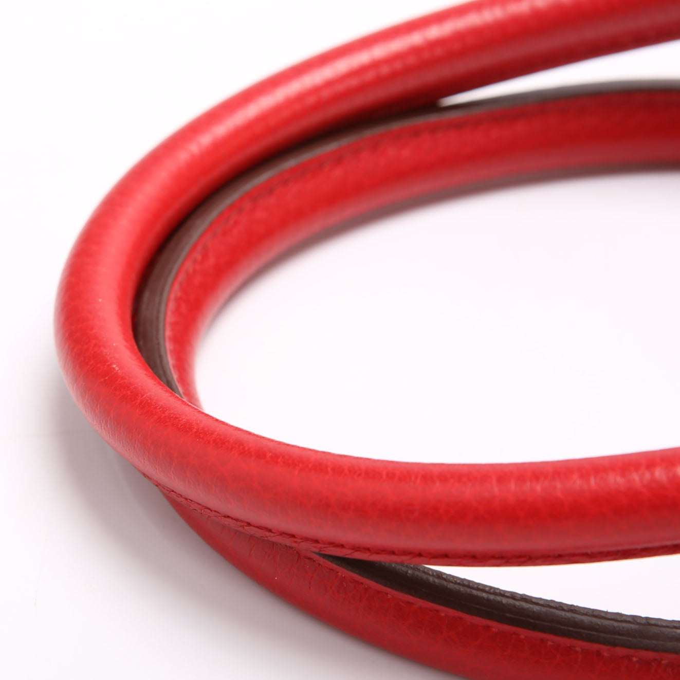 Exterior: The exterior leather is free from wear. The corners show very light rubbing. The hardware on the base shows light scratches.