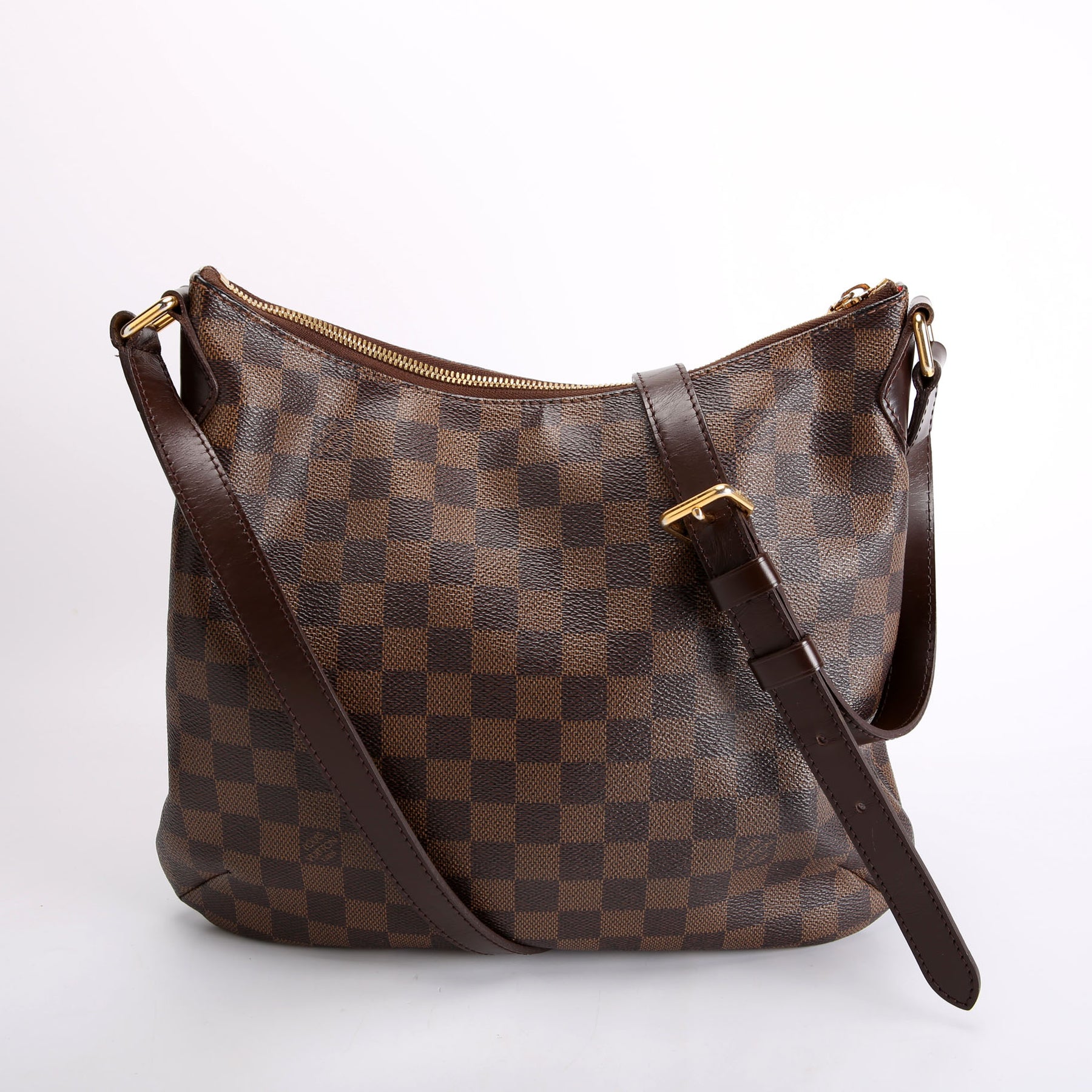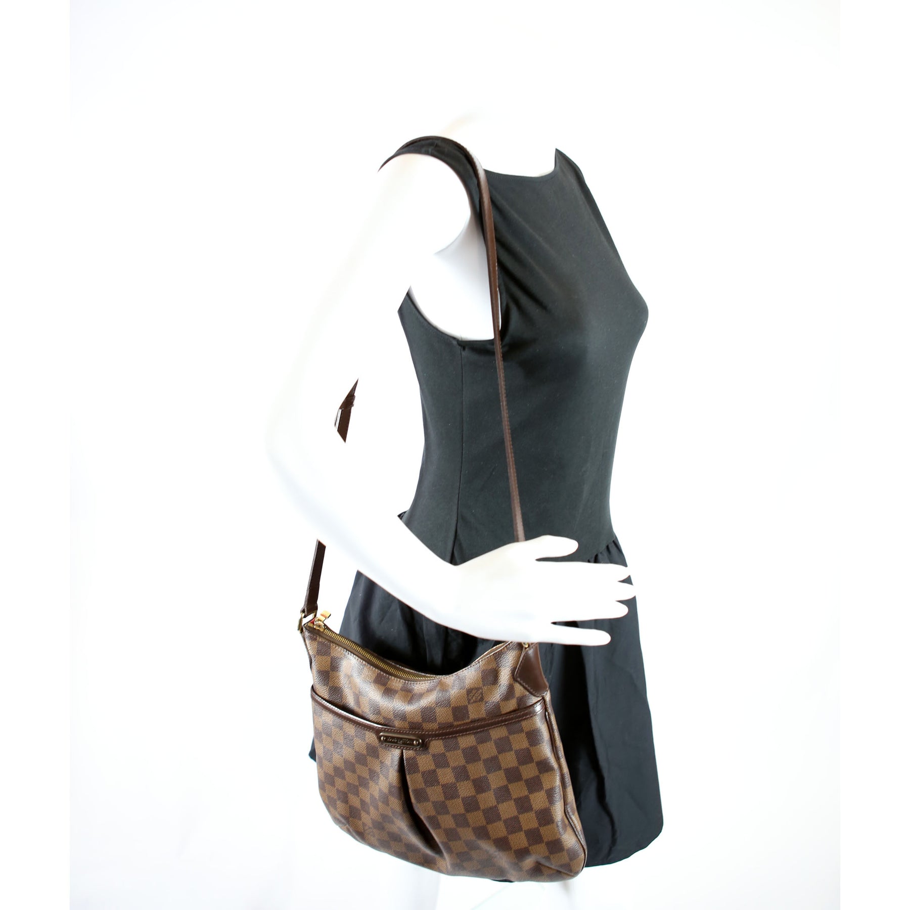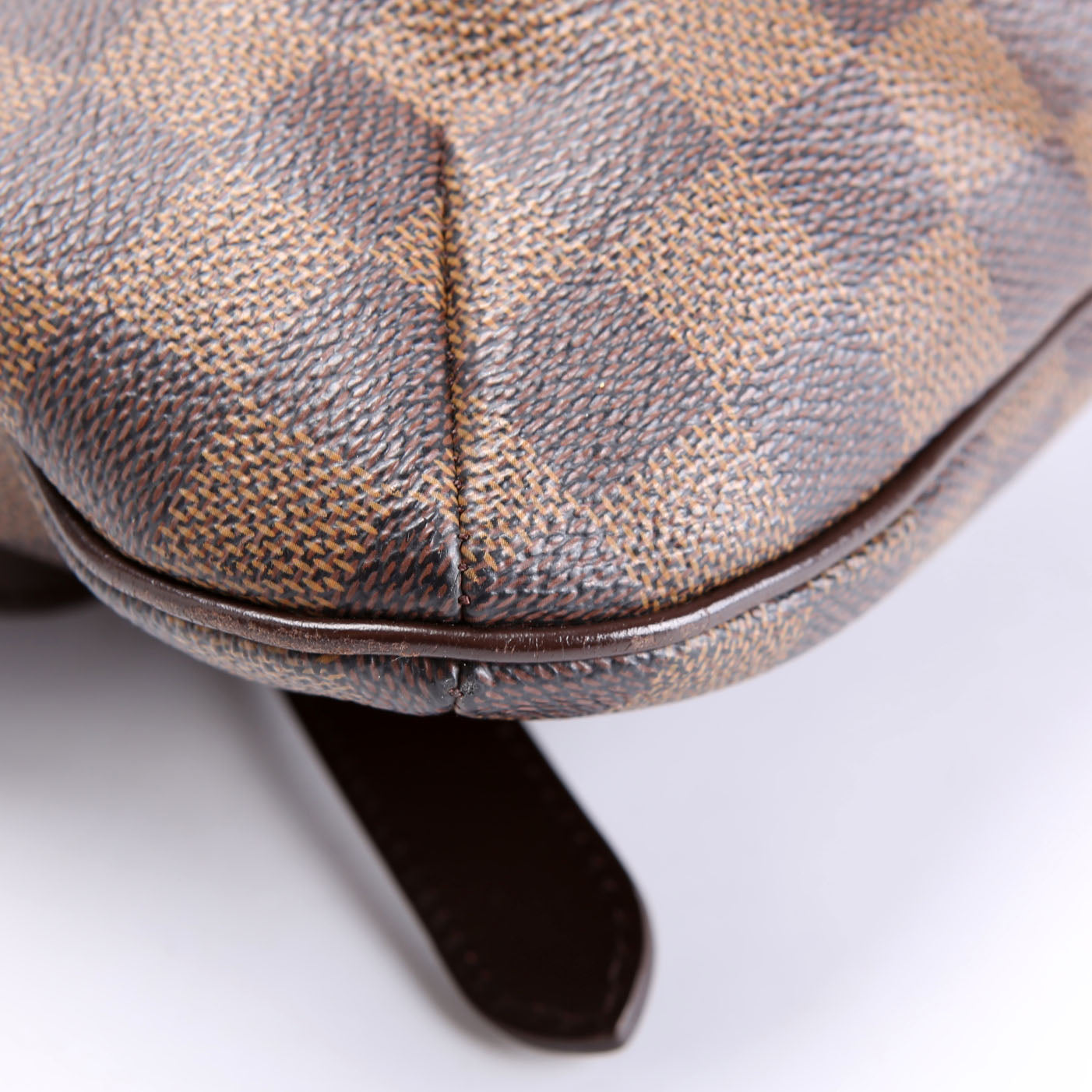 This pre-owned Louis Vuitton Bloomsbury PM is guaranteed 100% authentic. The exterior is in the classic Louis Vuitton Coated Canvas Damier Ebene