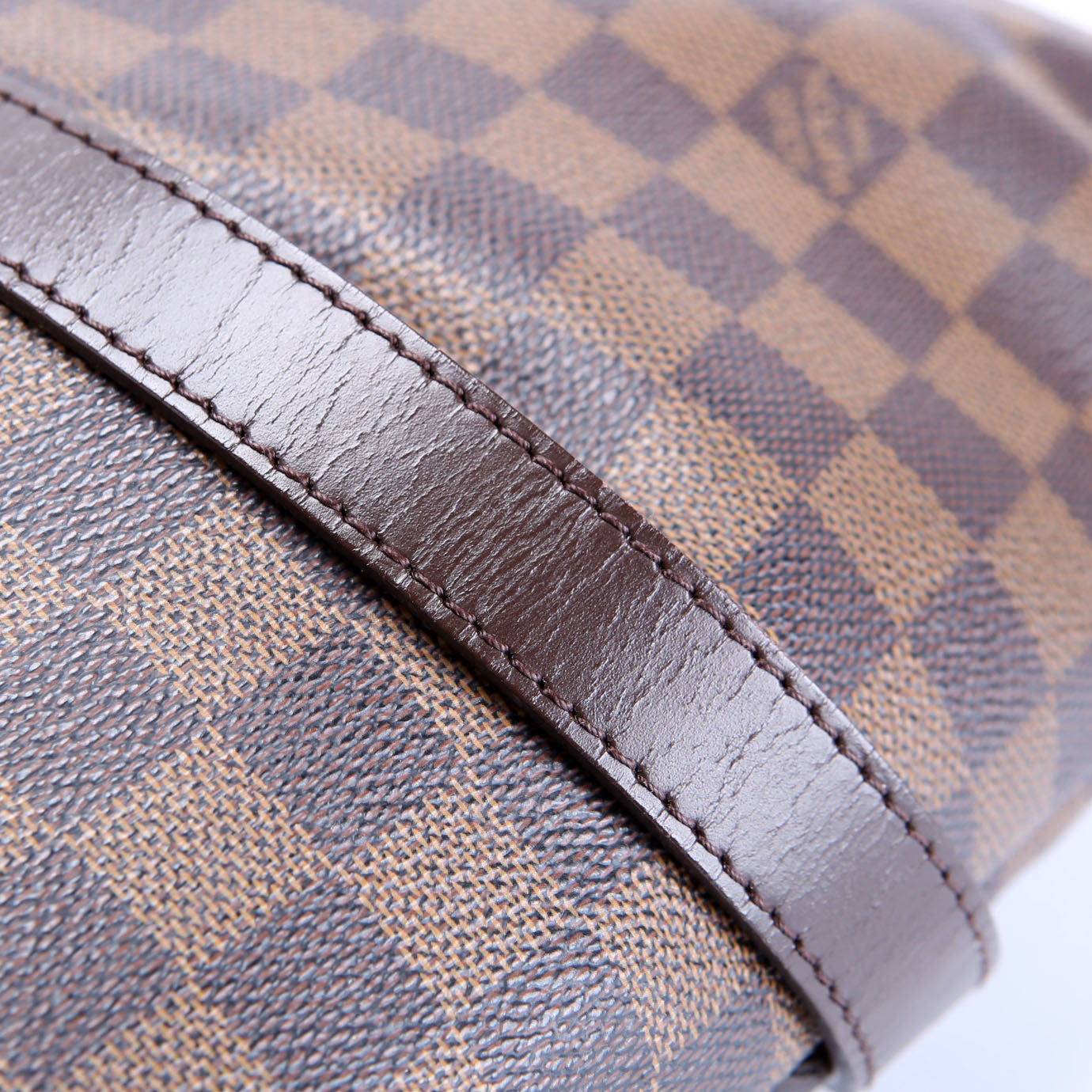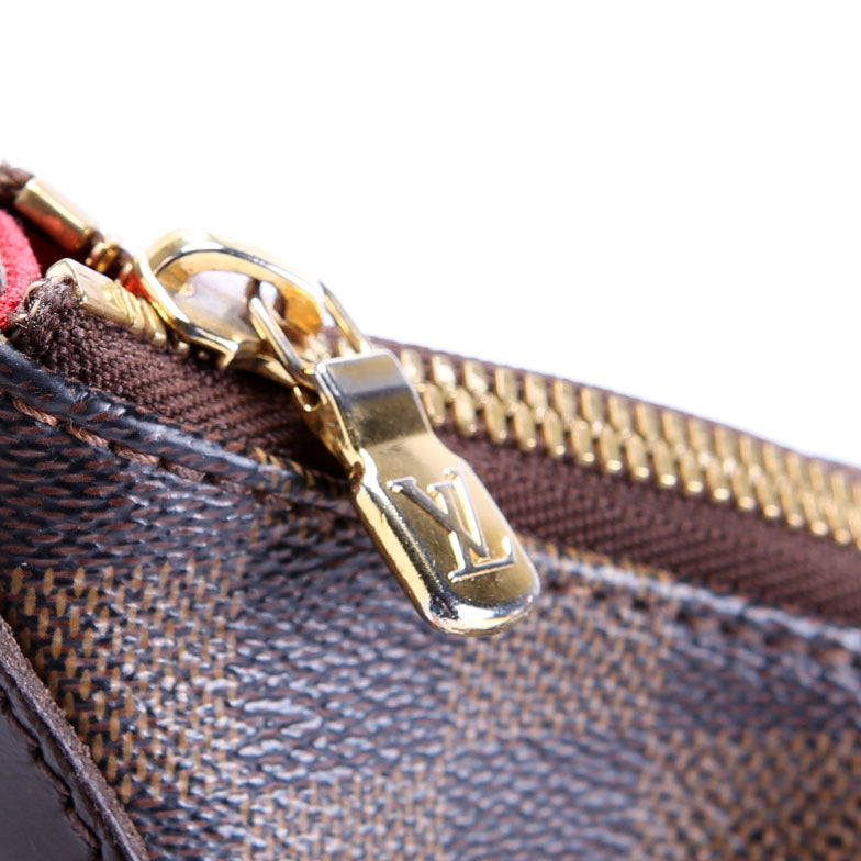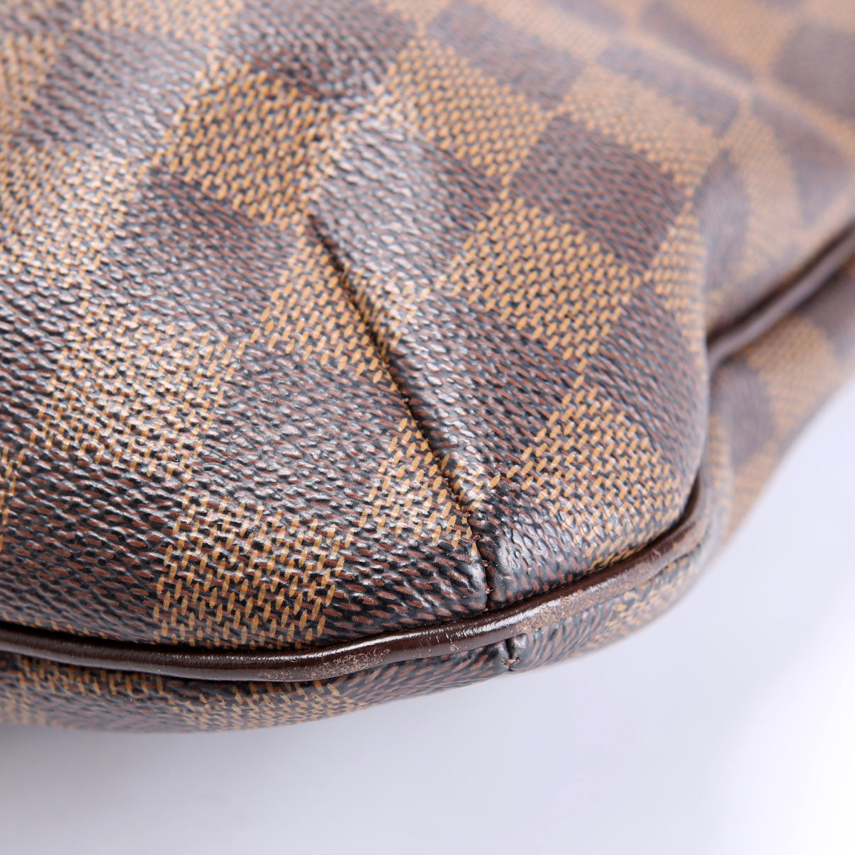 This pre-owned Louis Vuitton Bloomsbury PM is guaranteed 100% authentic. The exterior is in the classic Louis Vuitton Coated Canvas Damier Ebene