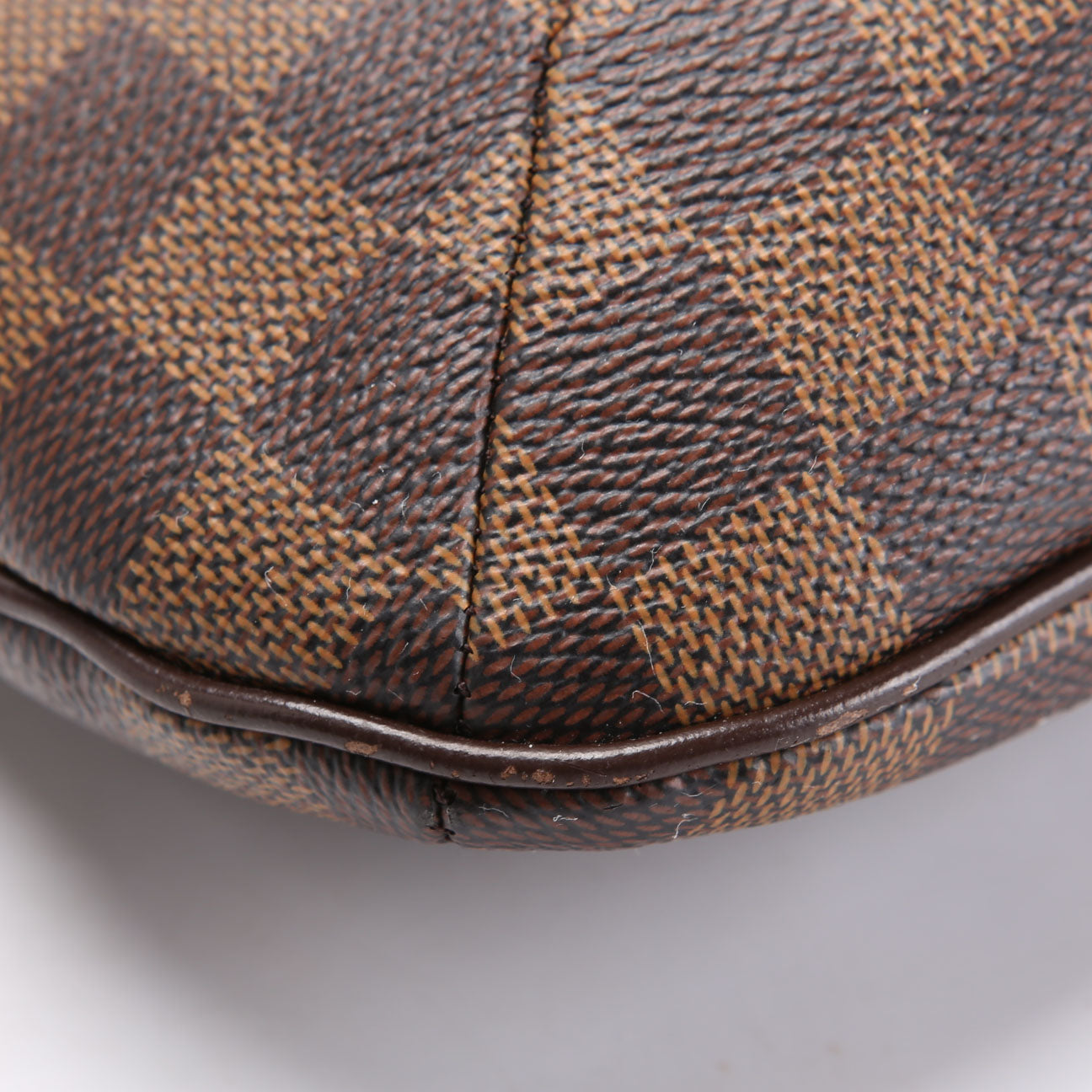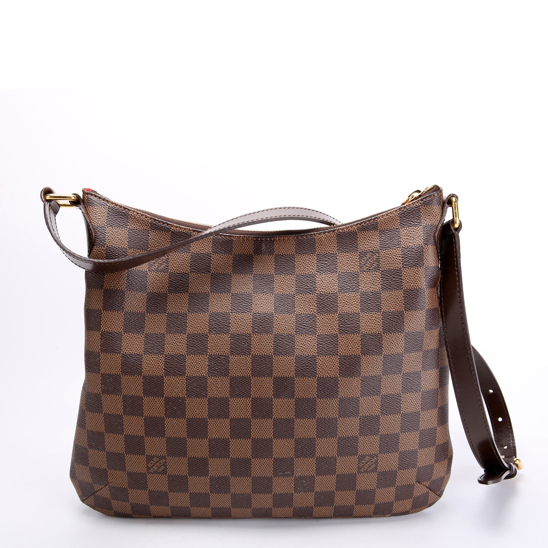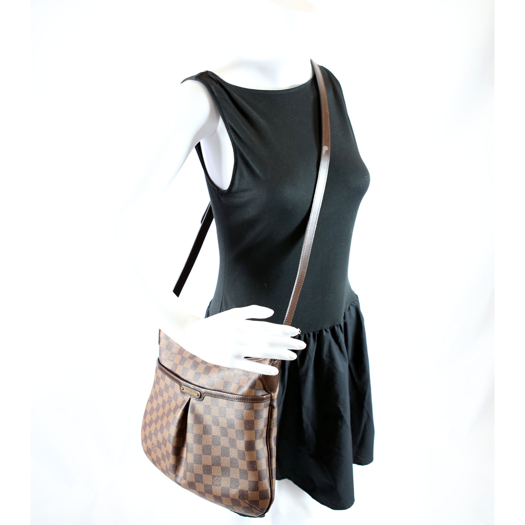 This pre-owned Louis Vuitton Bloomsbury PM is guaranteed 100% authentic. The exterior is in the classic Louis Vuitton Coated Canvas Ebene Monogram.