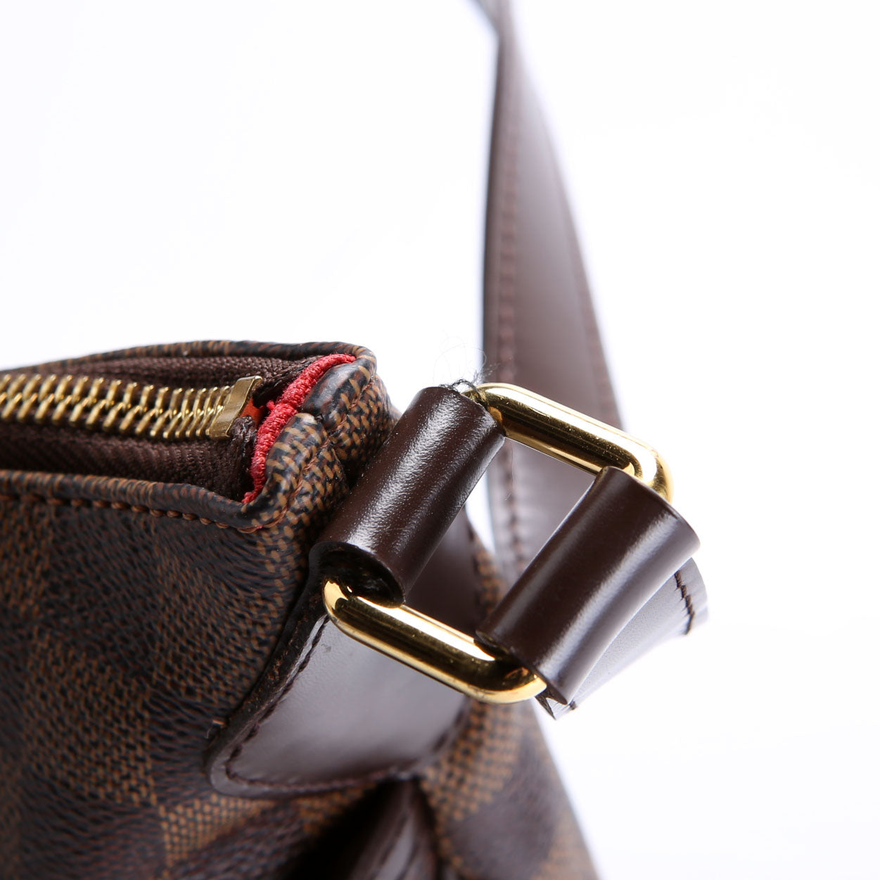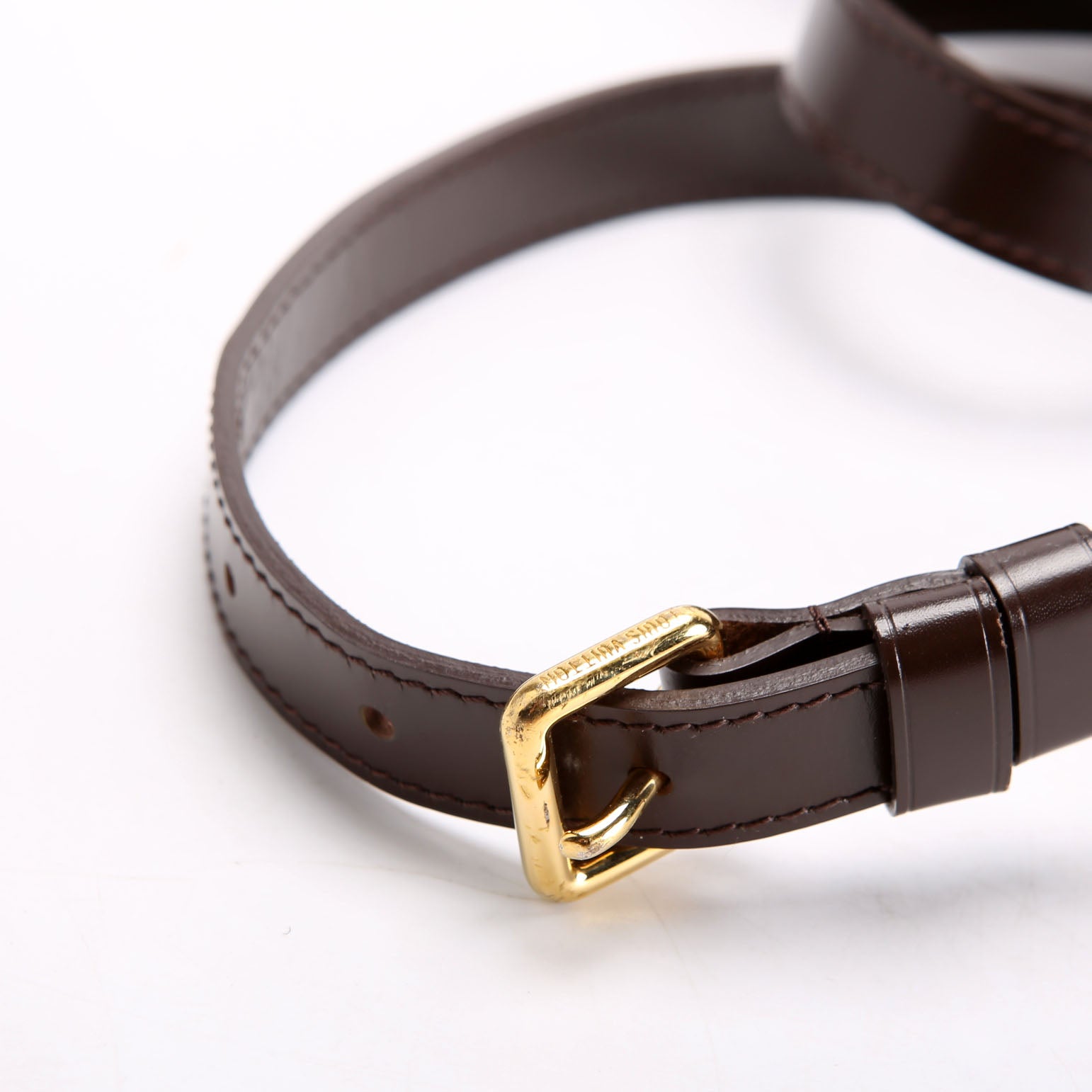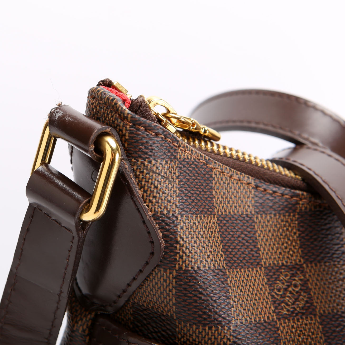 This pre-owned Louis Vuitton Bloomsbury PM is guaranteed 100% authentic. The exterior is in the classic Louis Vuitton Coated Canvas Ebene Monogram.