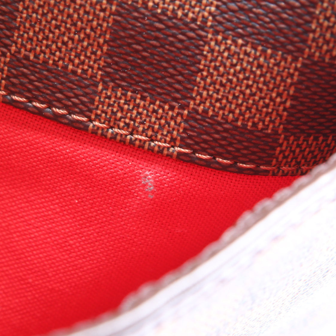 Interior: The interior shows minor staining. It features two open pockets.