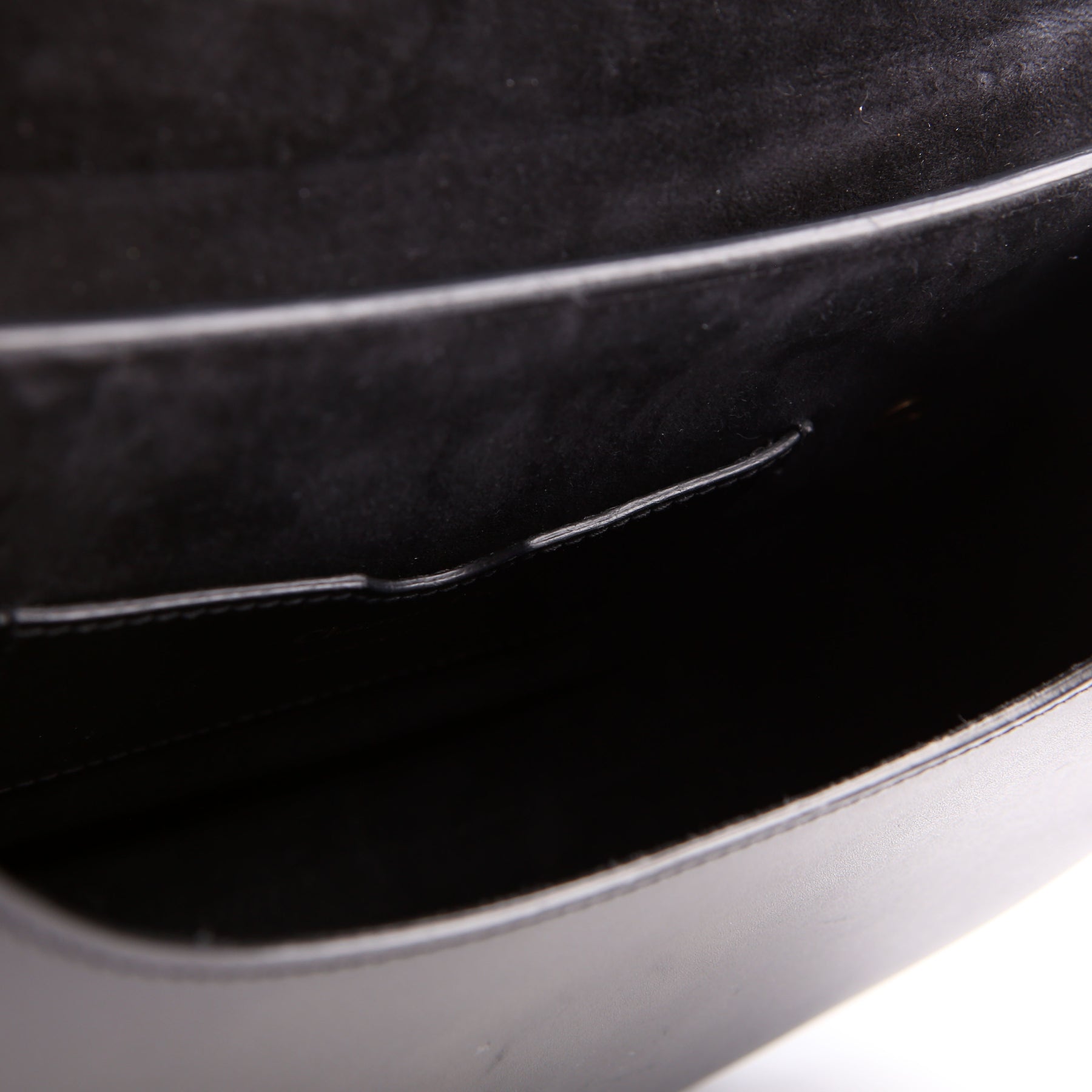 Exterior: The exterior leather has minor scuffs. The exterior features one open pocket.