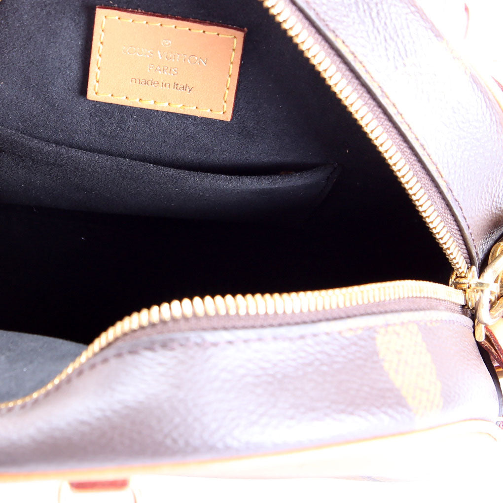 This pre-owned Louis Vuitton Boite Chapeau is guaranteed 100% authentic. The exterior is in the classic Louis Vuitton Reverse Giant Monogram coated canvas.