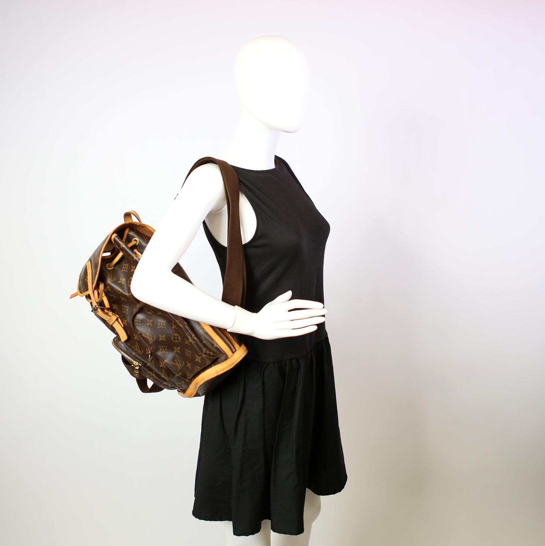 This pre-owned Louis Vuitton Bosphore Backpack is guaranteed 100% authentic. The exterior is in the classic Louis Vuitton Monogram coated canvas.