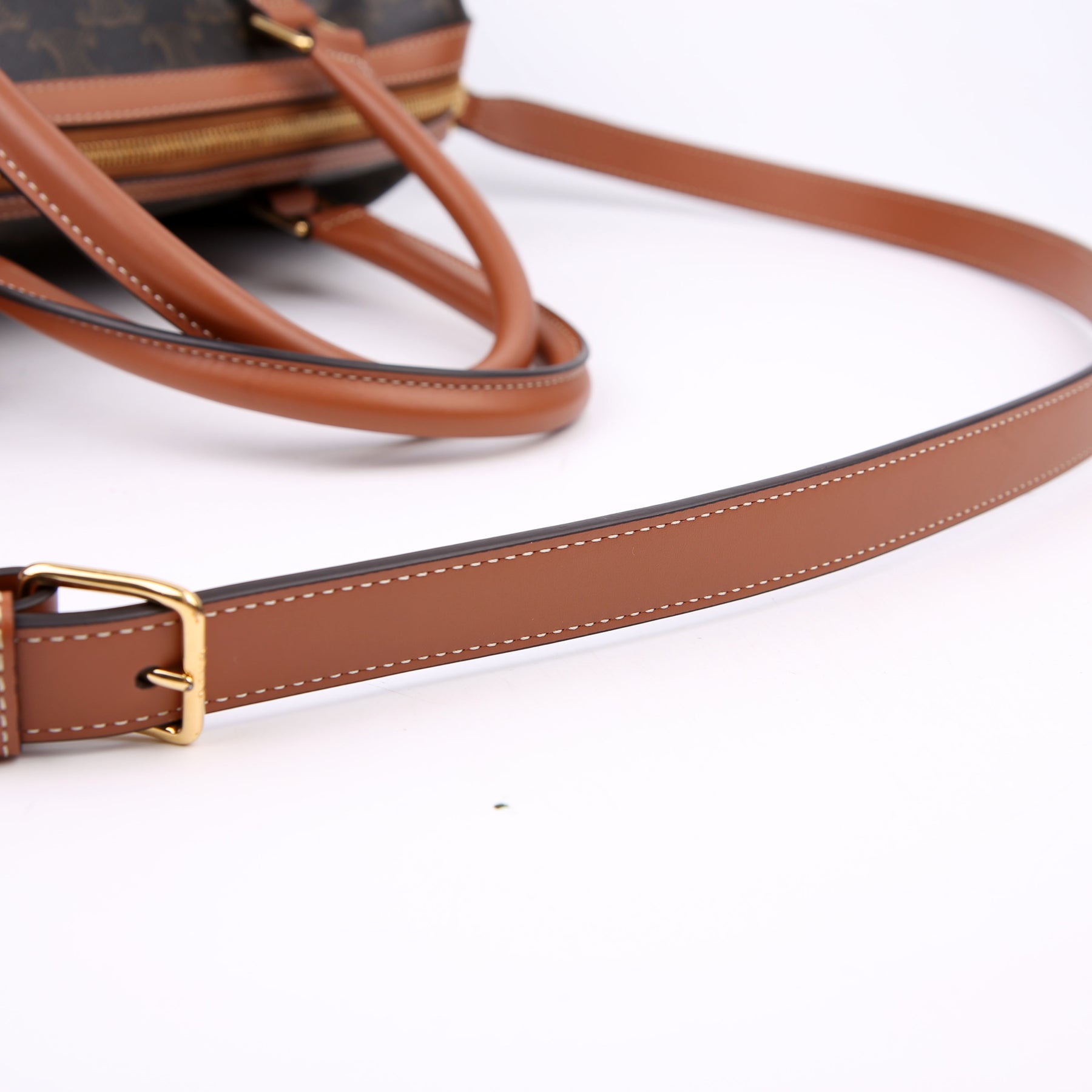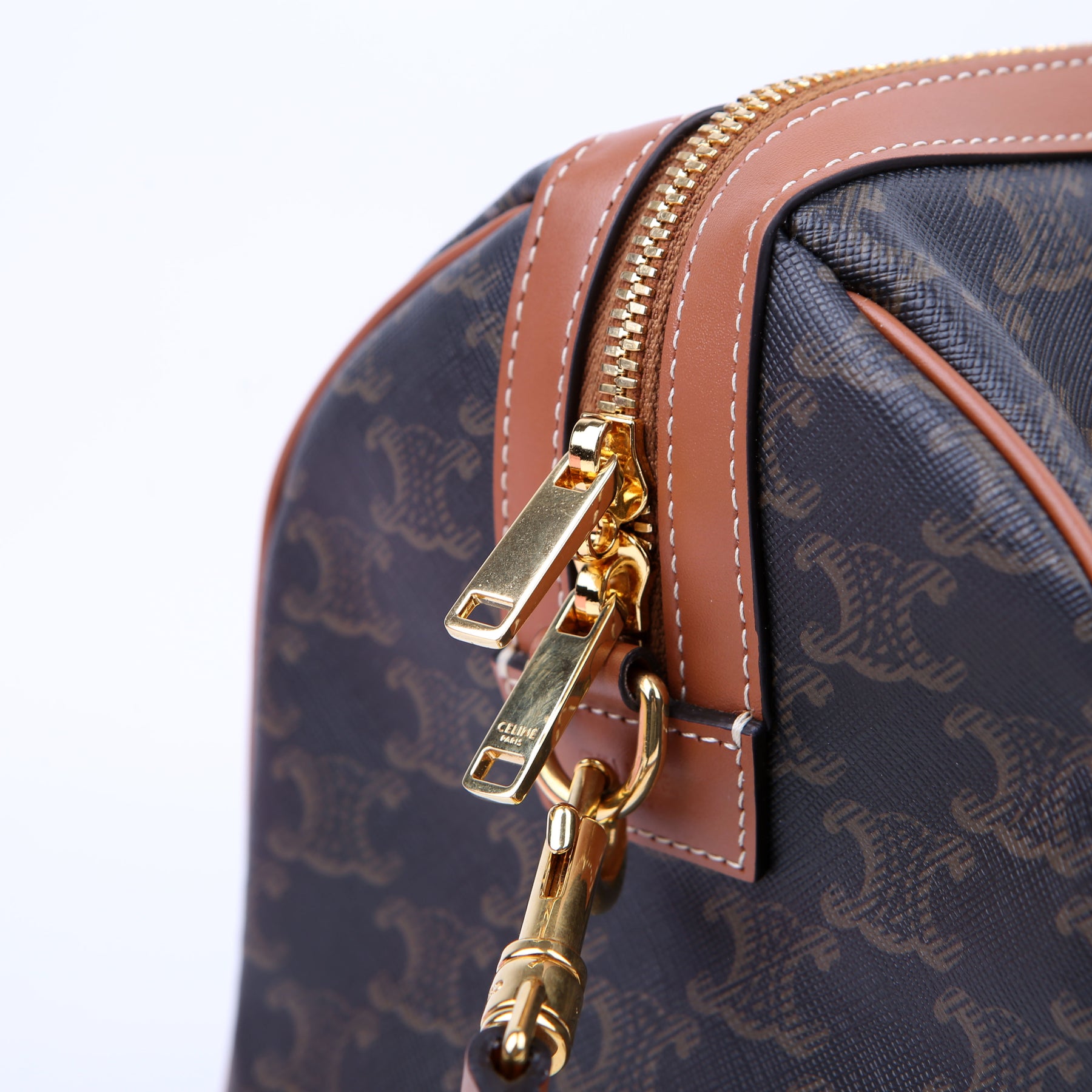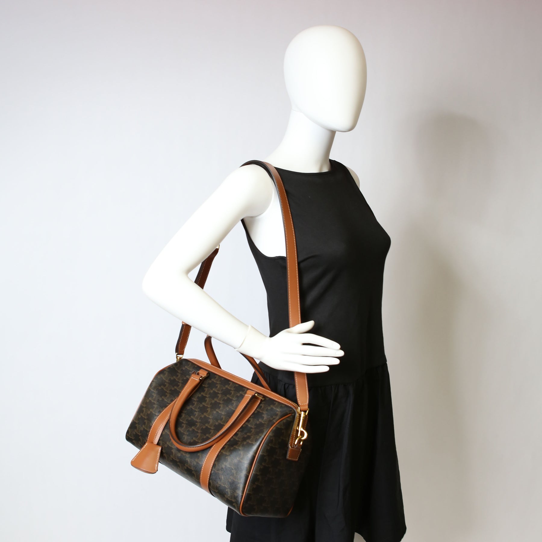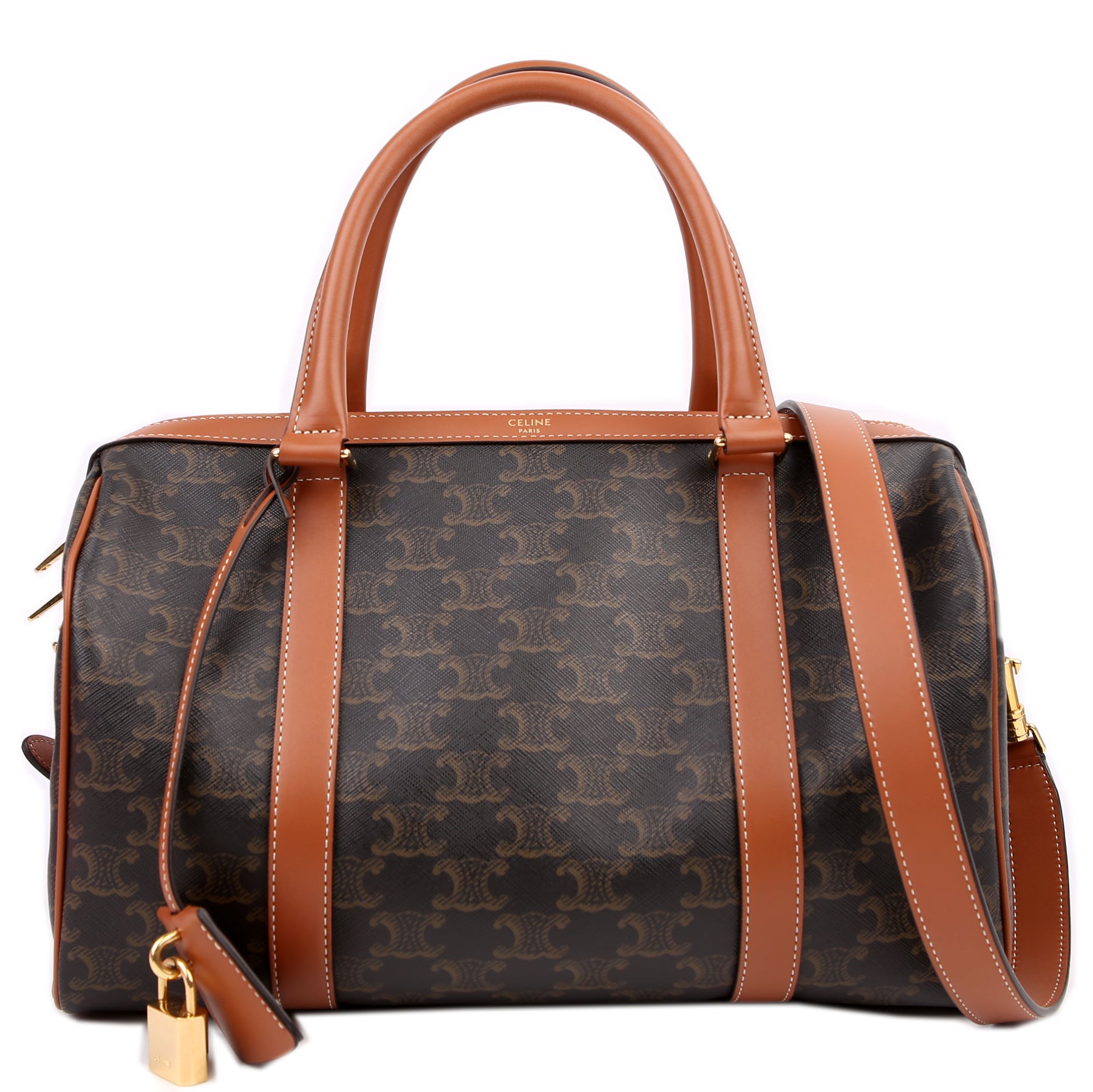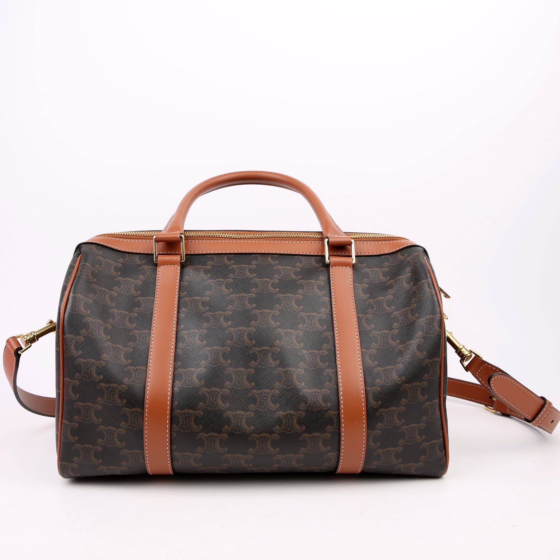 This pre-owned Celine Boston Bag Triomphe Canvas Large is guaranteed 100% authentic.