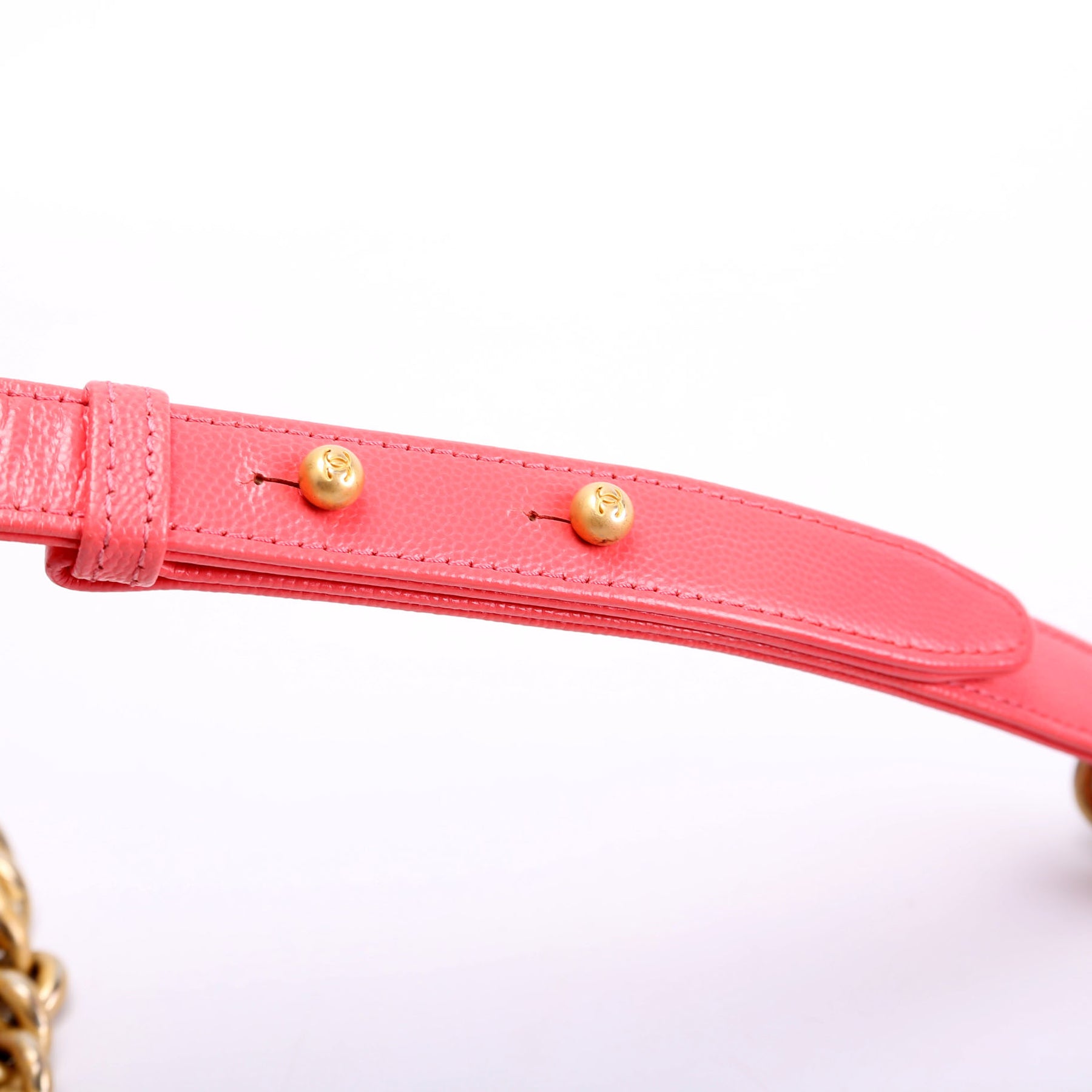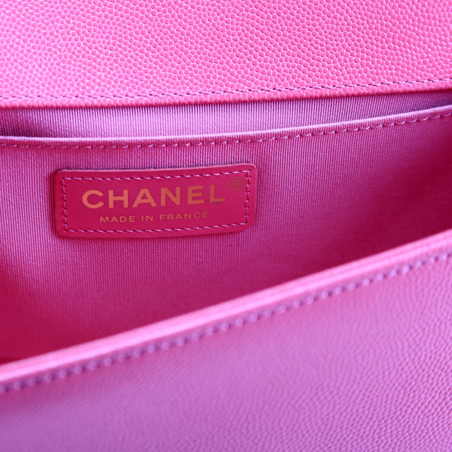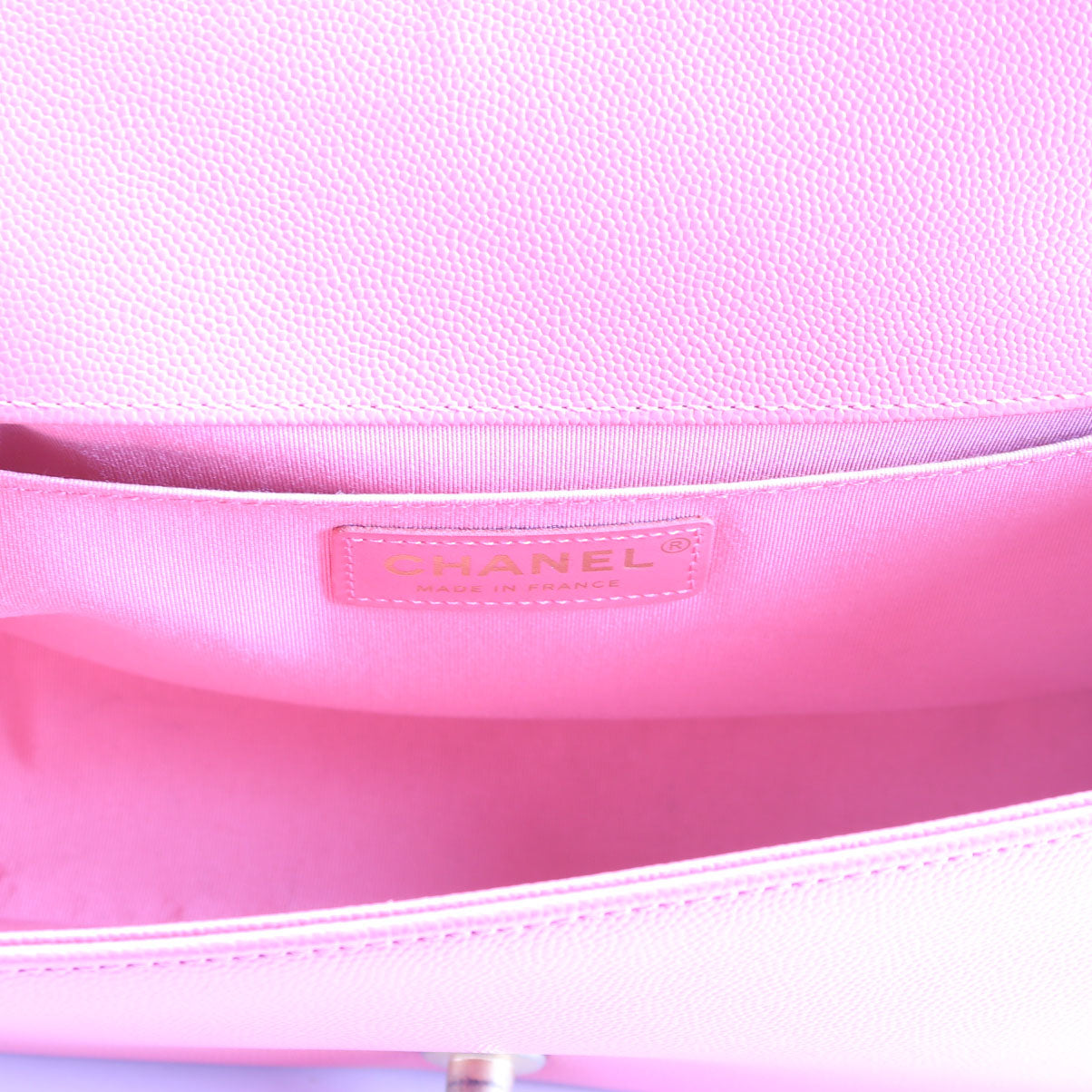 This pre-owned Chanel Boy Flap Medium Old Caviar 25M is guaranteed 100% authentic. The exterior is in the classic Chanel Caviar leather.
