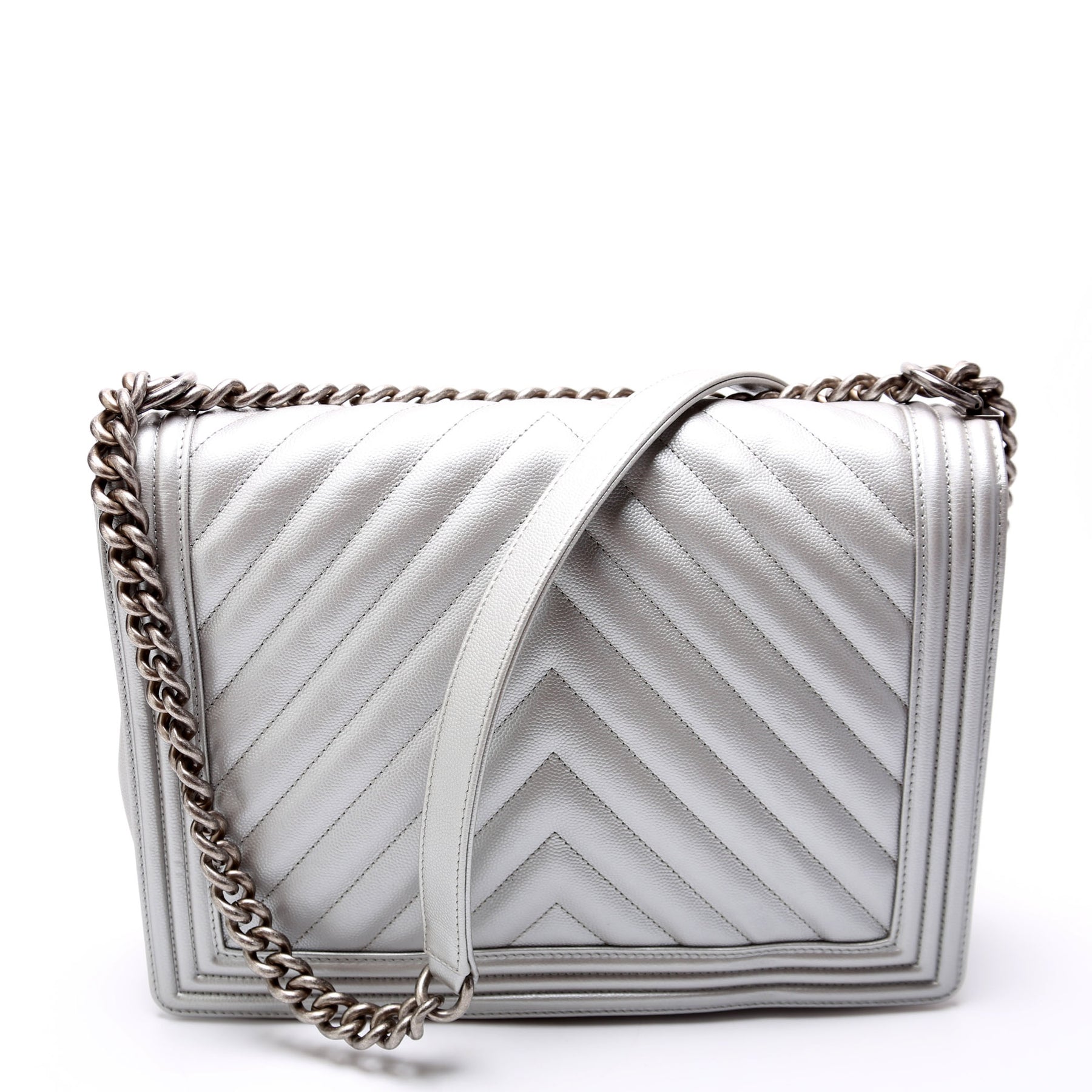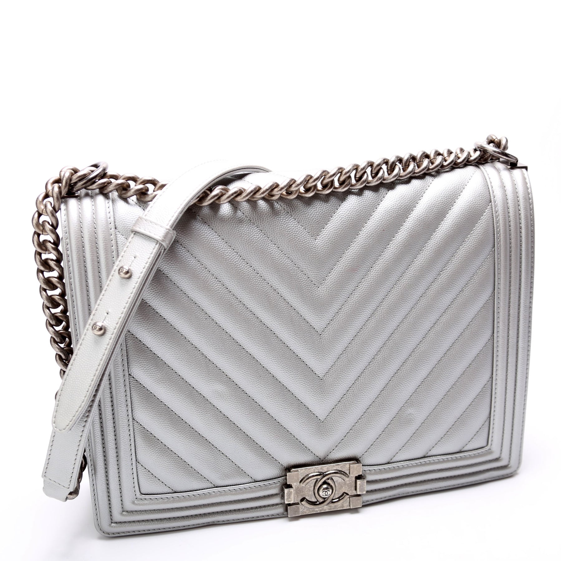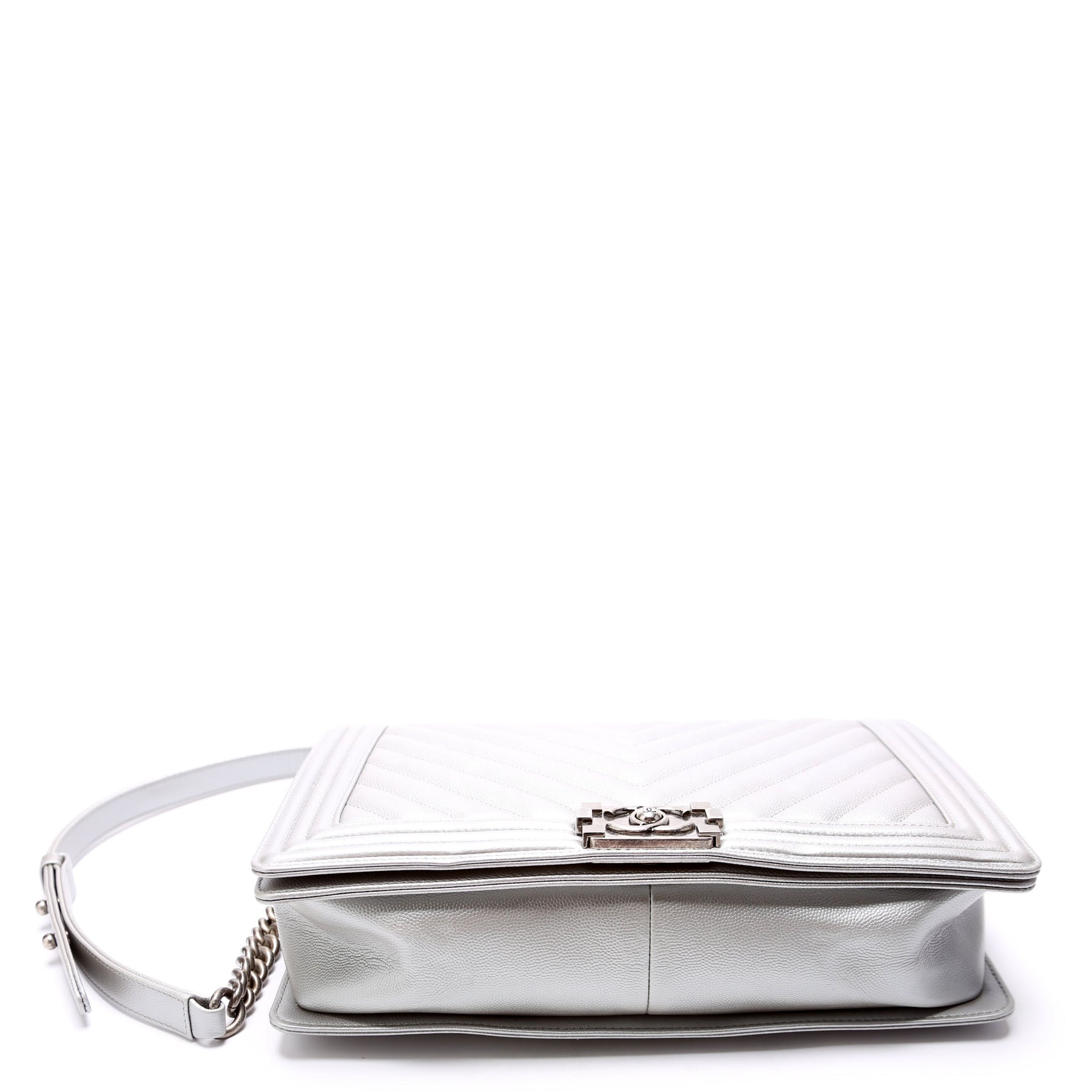 Boy Flap Medium Old Chevron Caviar 21-25M Silver