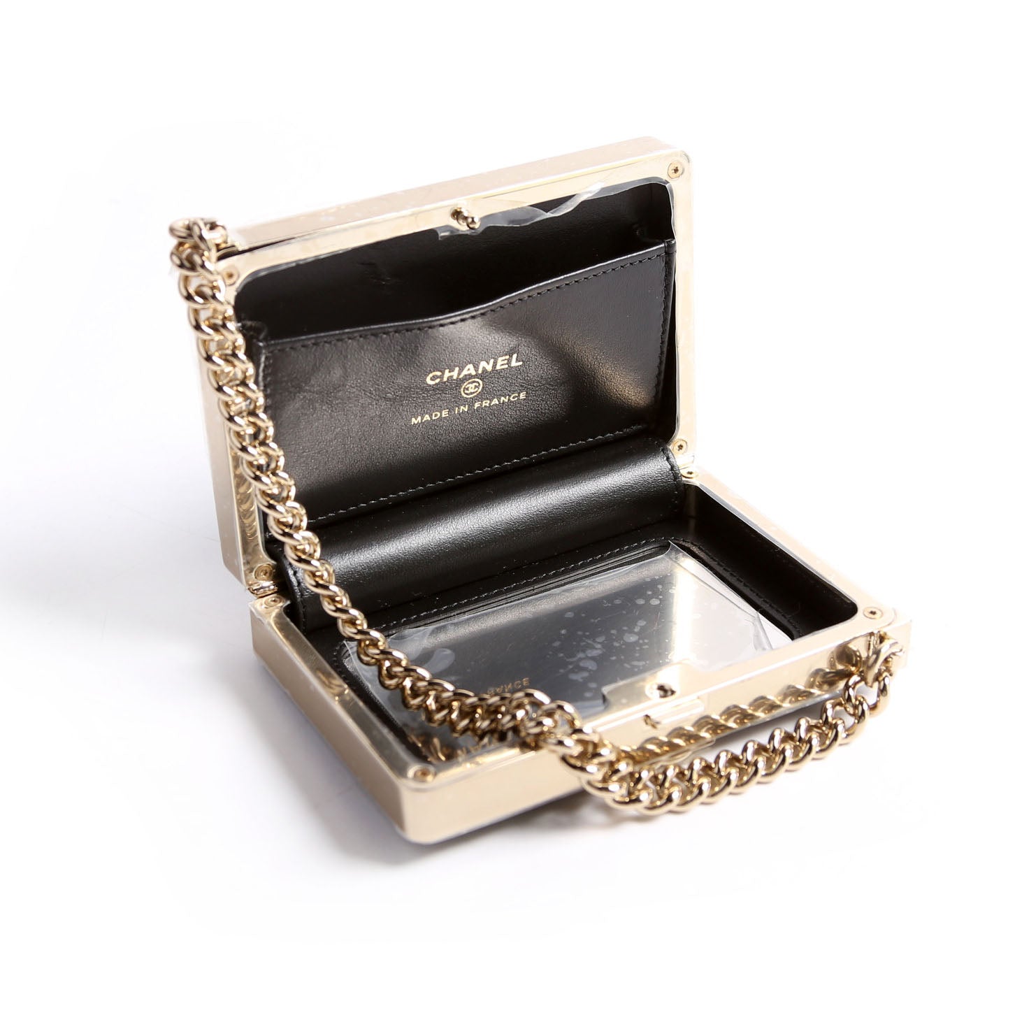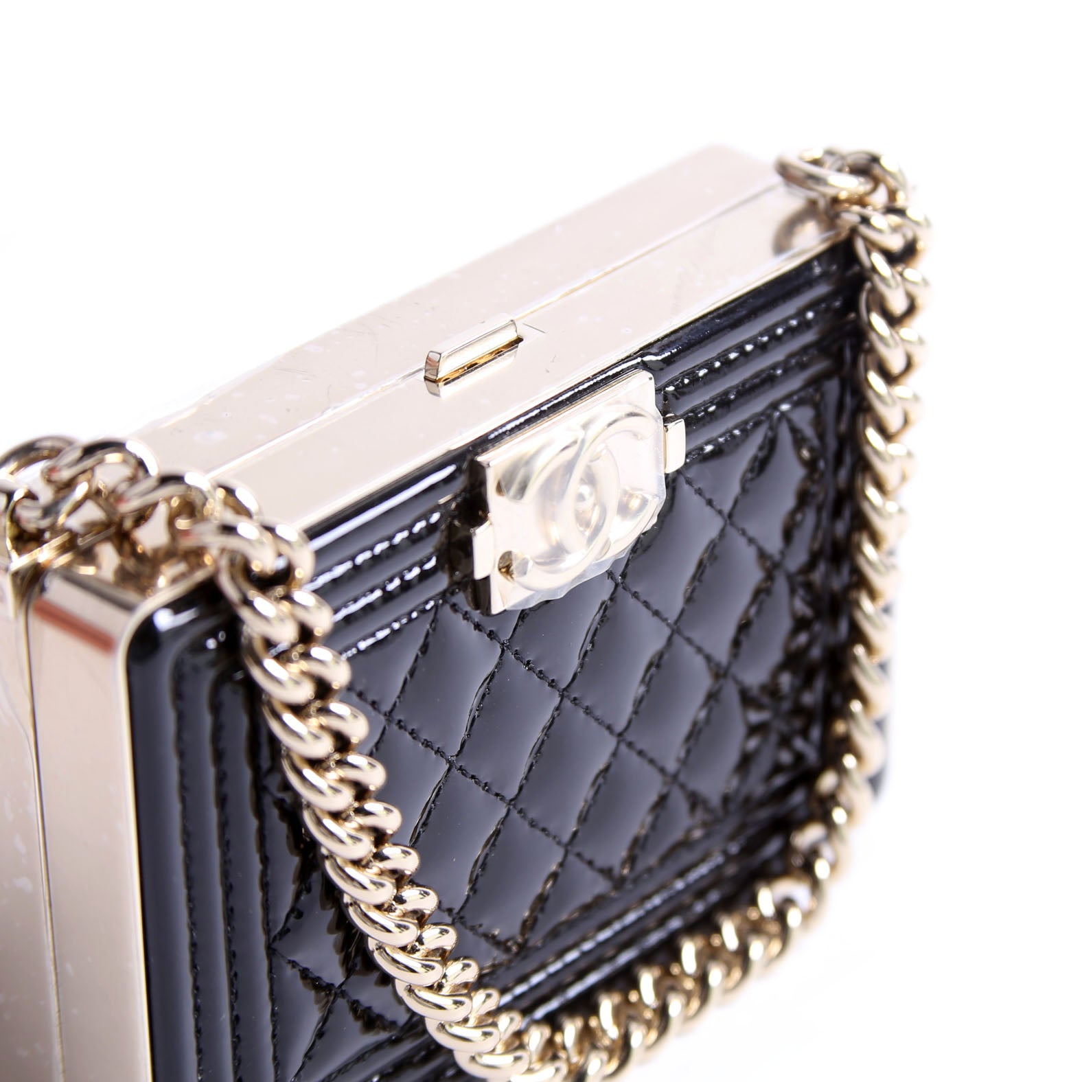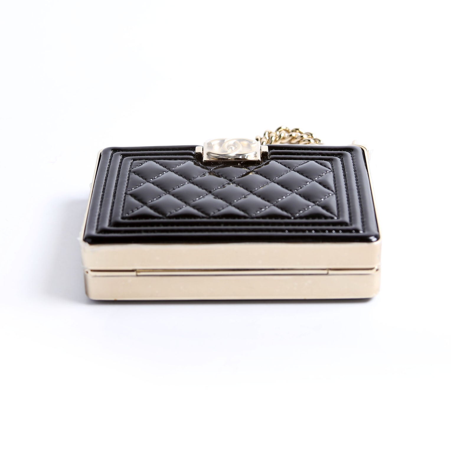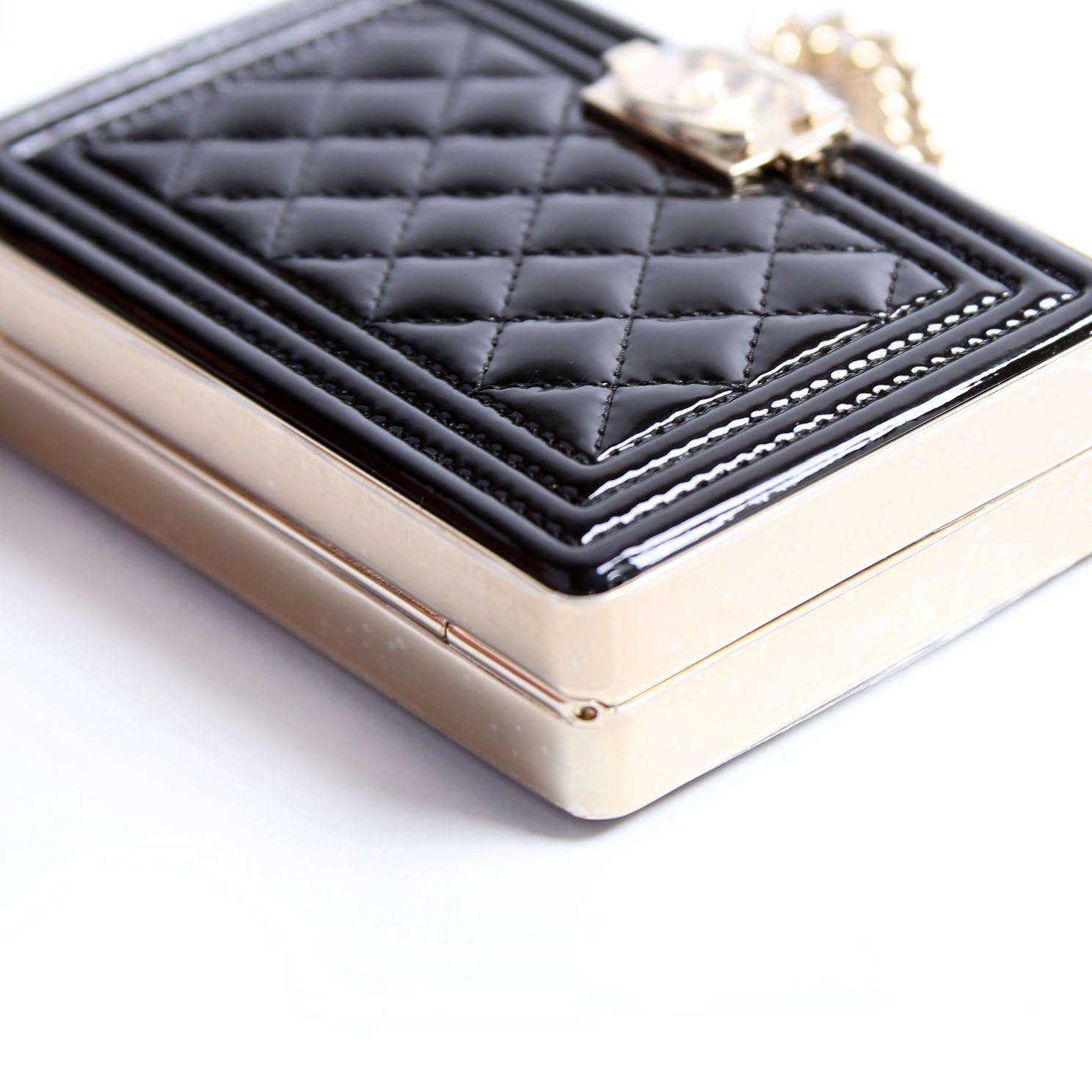 This pre-owned Chanel Boy Miniaudiere Patent RFID is guaranteed 100% authentic.