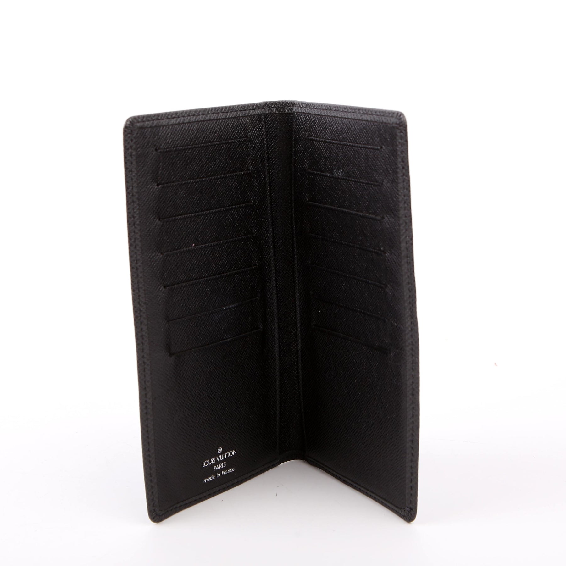 This pre-owned Louis Vuitton Brazza Wallet is guaranteed 100% authentic. The exterior is in the classic Louis Vuitton Taiga leather.