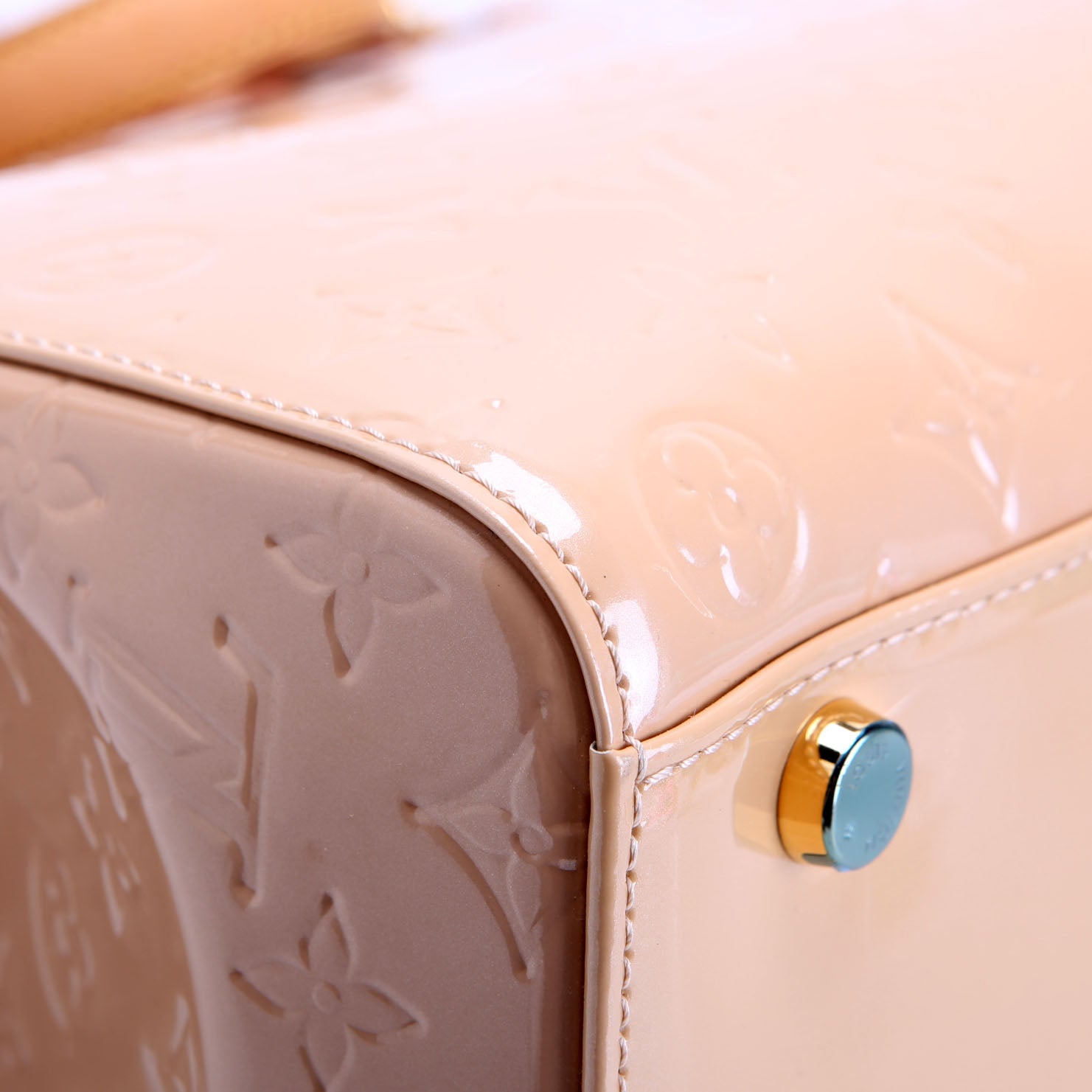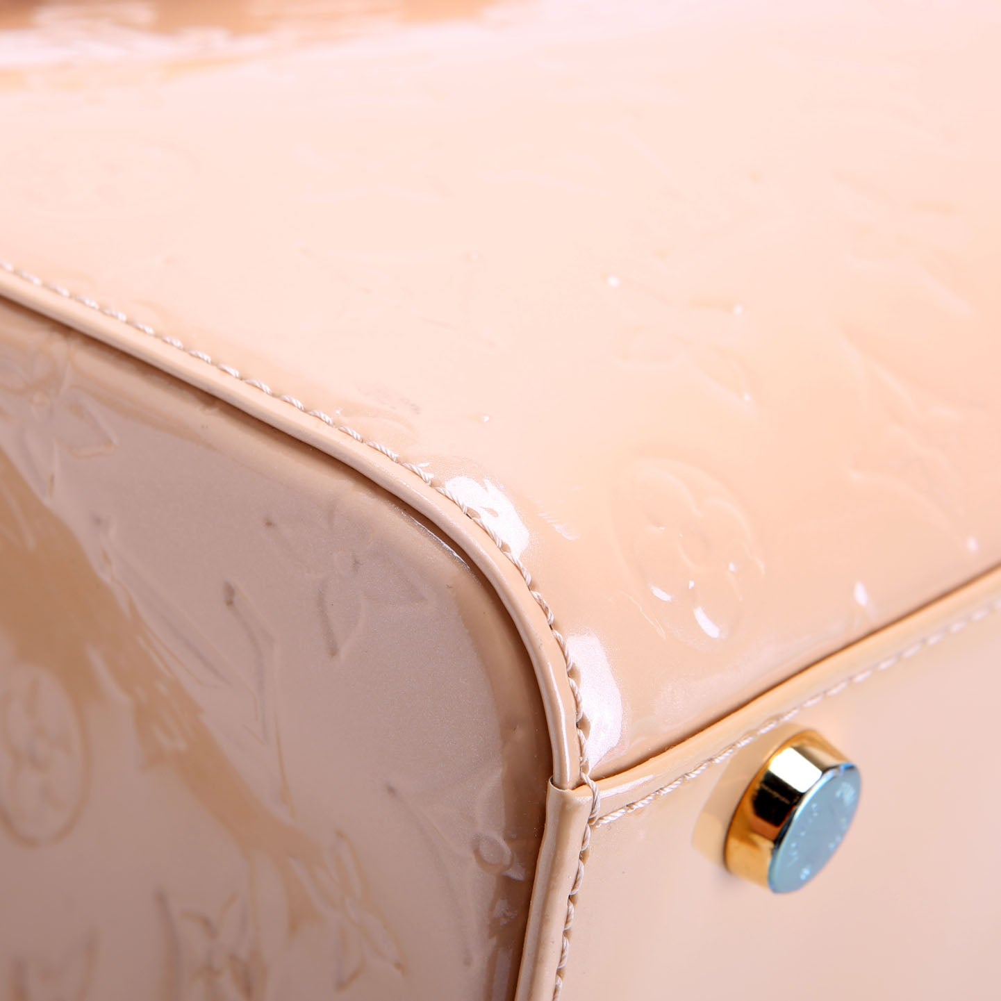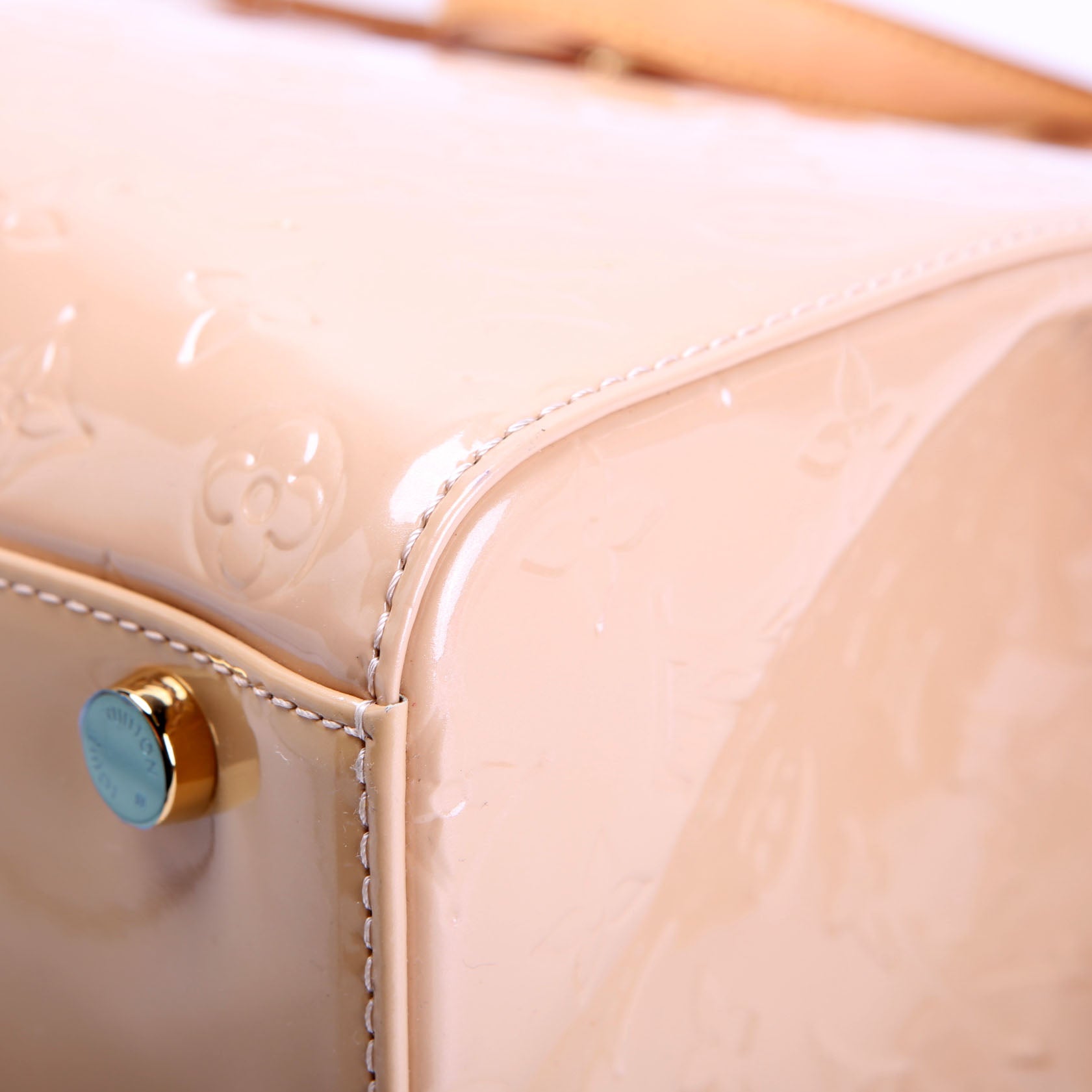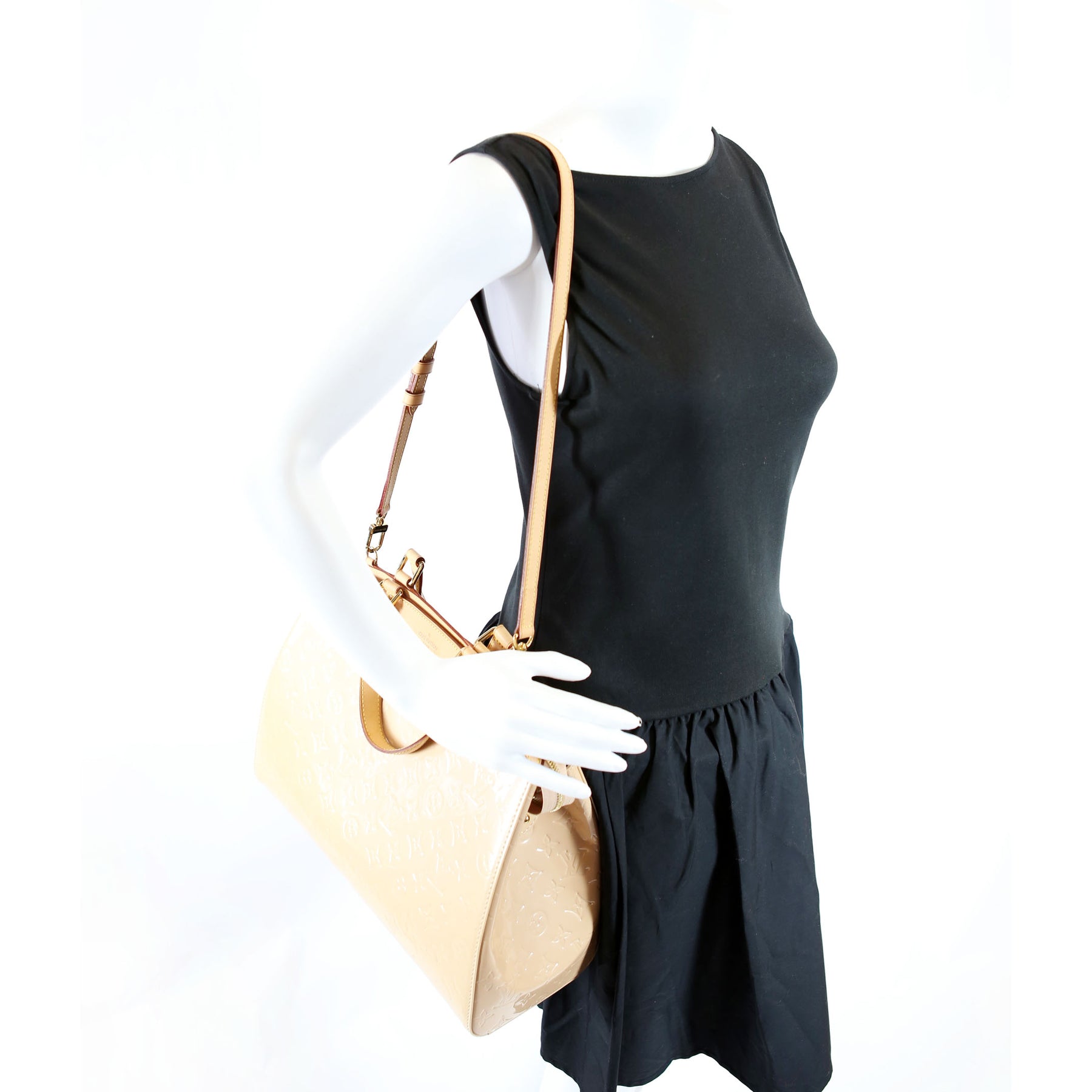 This pre-owned Louis Vuitton Brea GM is guaranteed 100% authentic. The exterior is in the classic Louis Vuitton Vernis Leather
