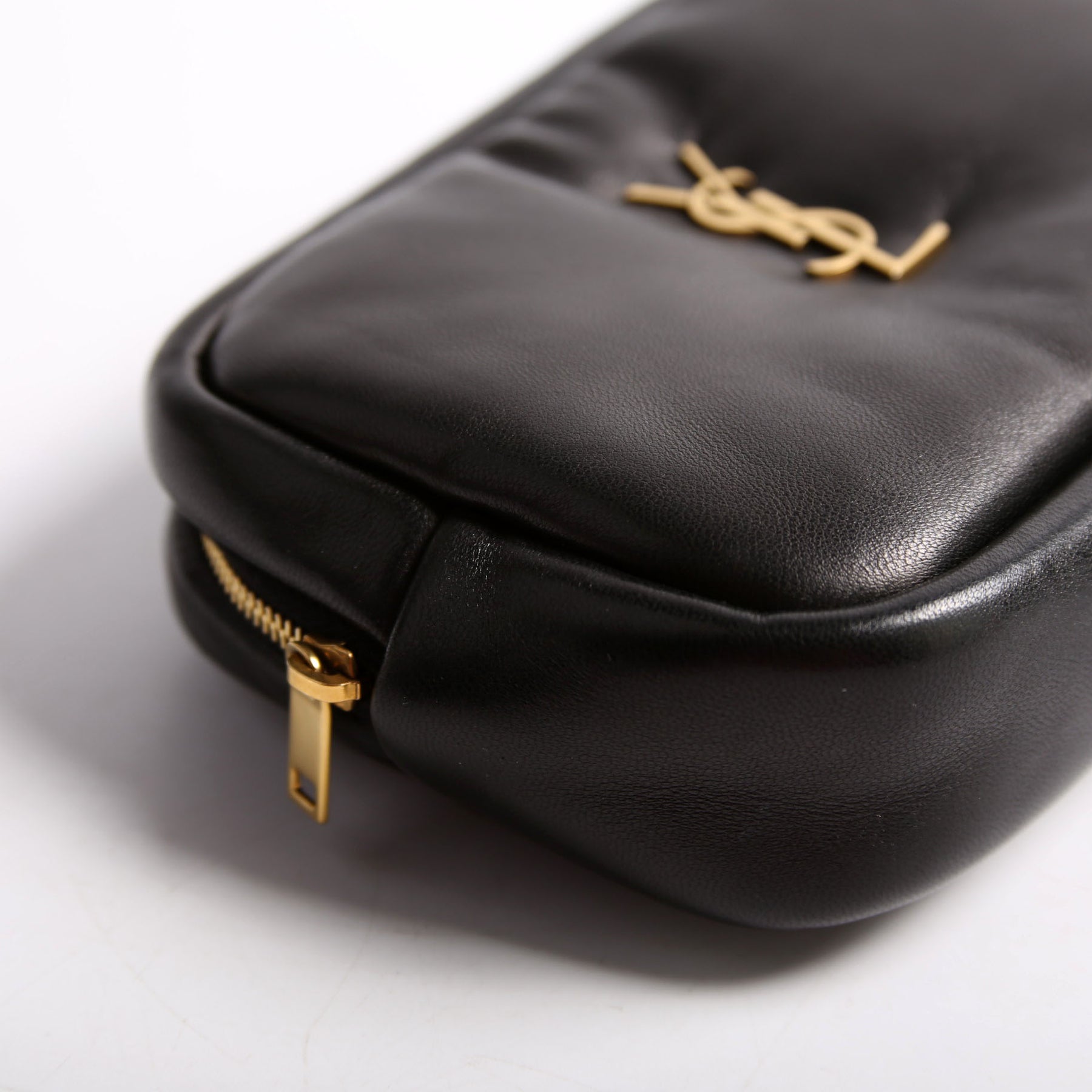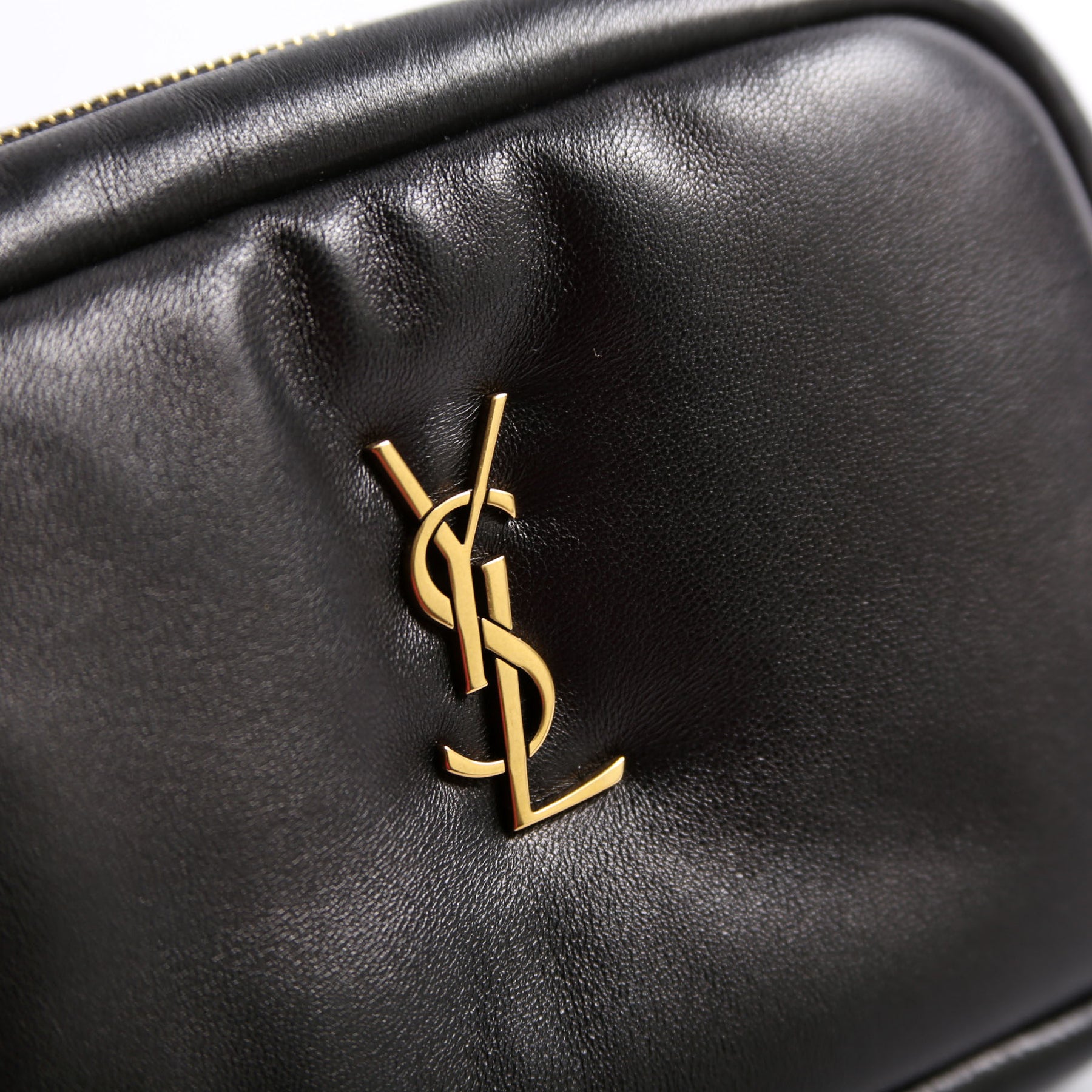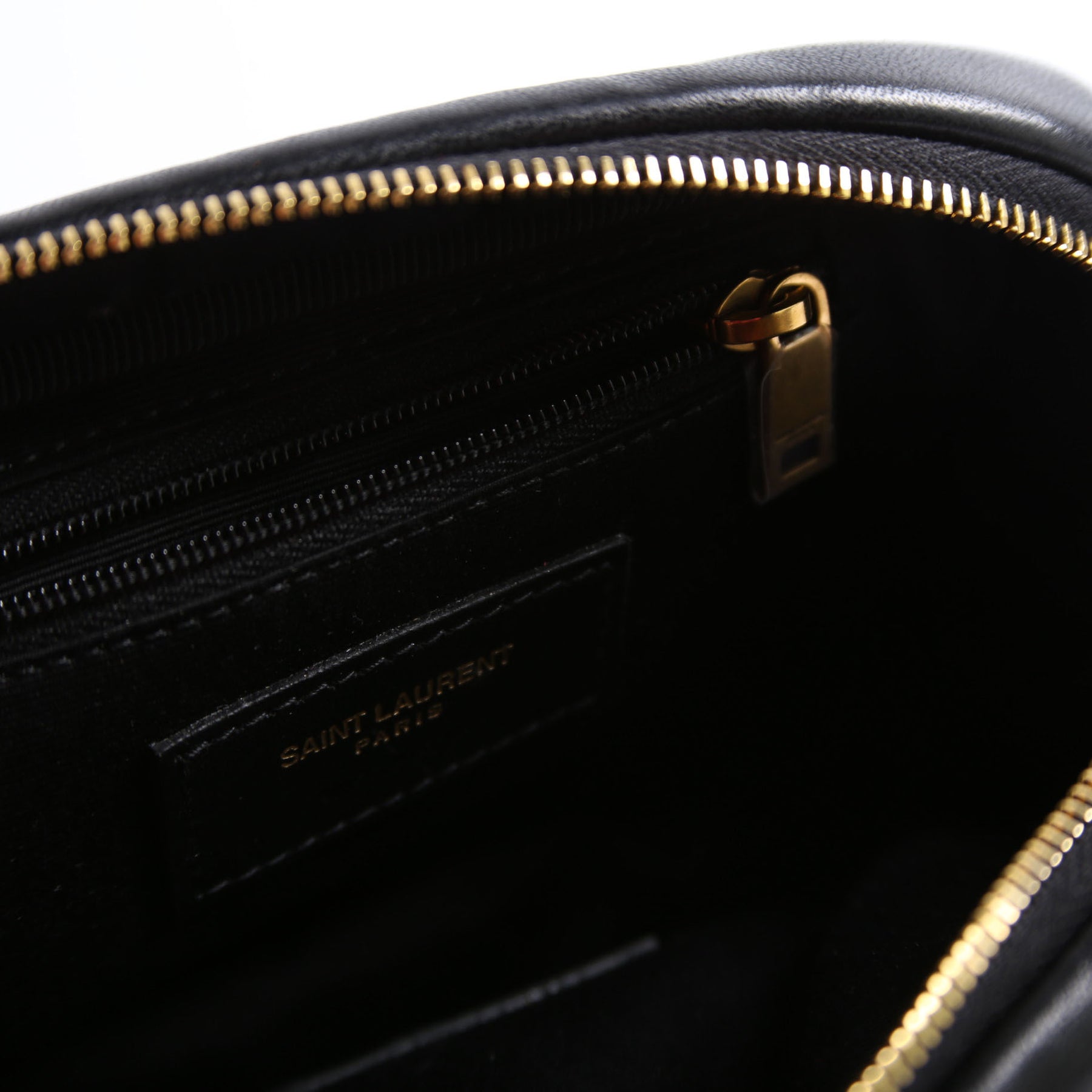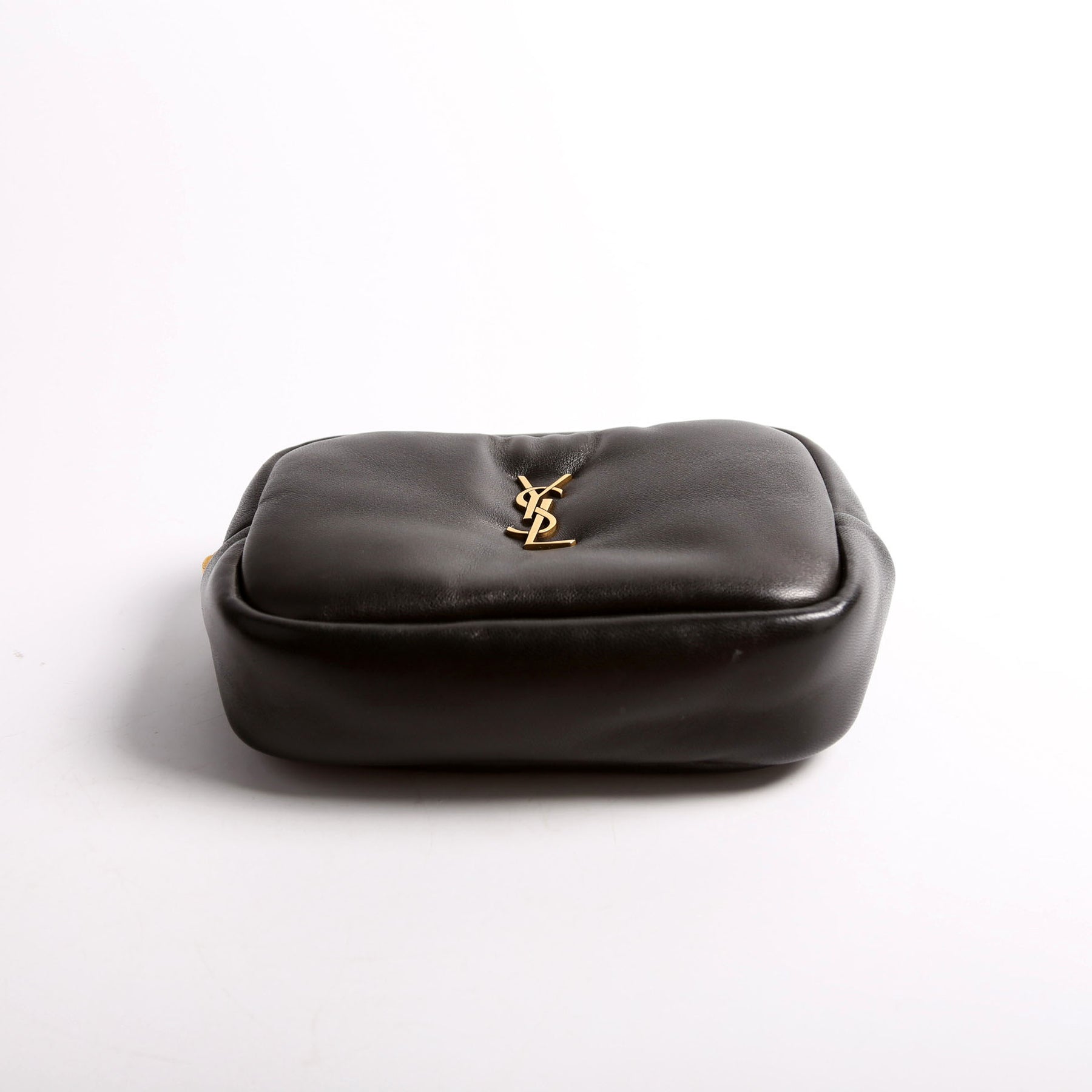 This pre-owned Saint Laurent Calypso Cosmetic Pouch is guaranteed 100% authentic. The exterior is in the classic Saint Laurent Lambskin leather.
