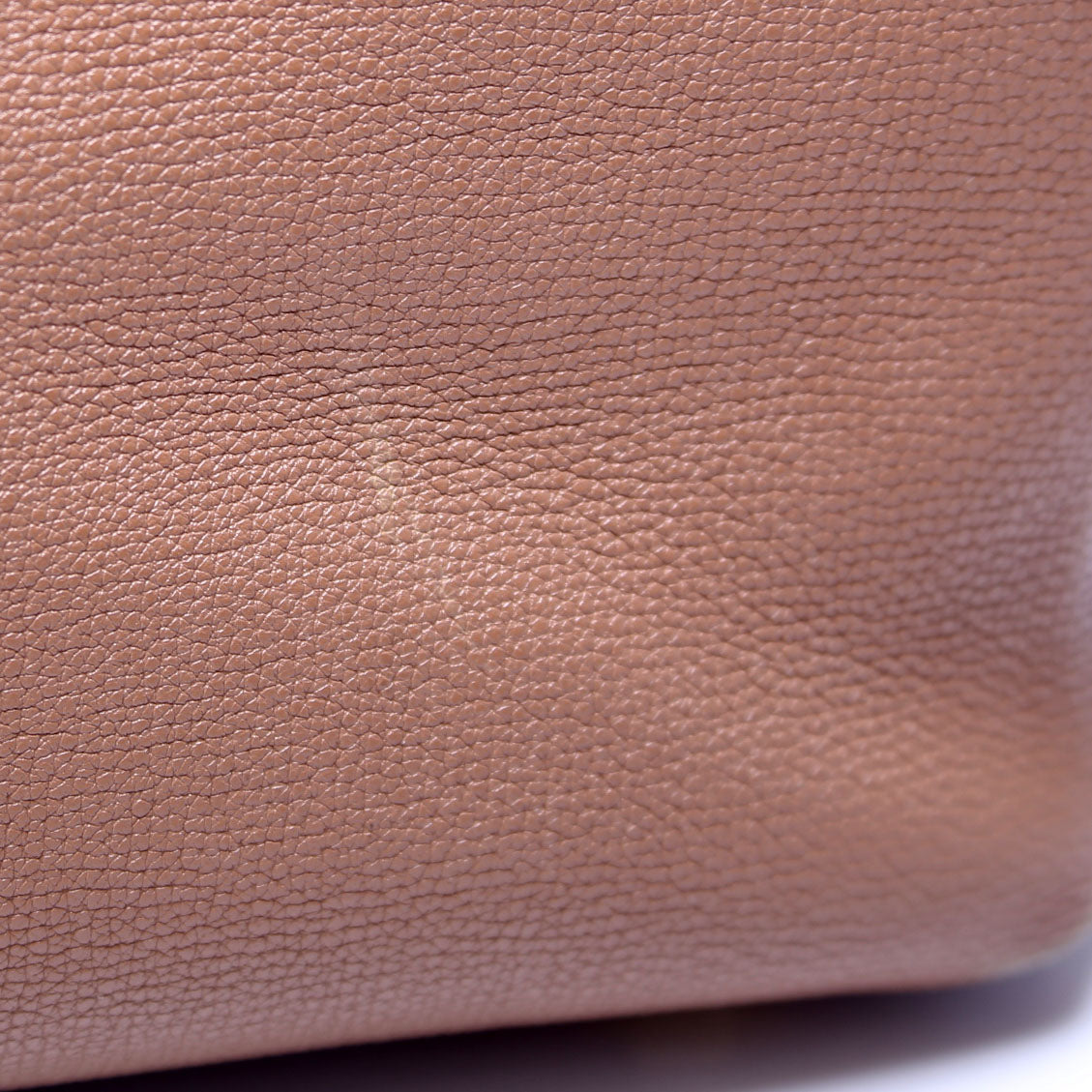 Handle: The leather handle shows light wear and is misshapen from storage and wear.