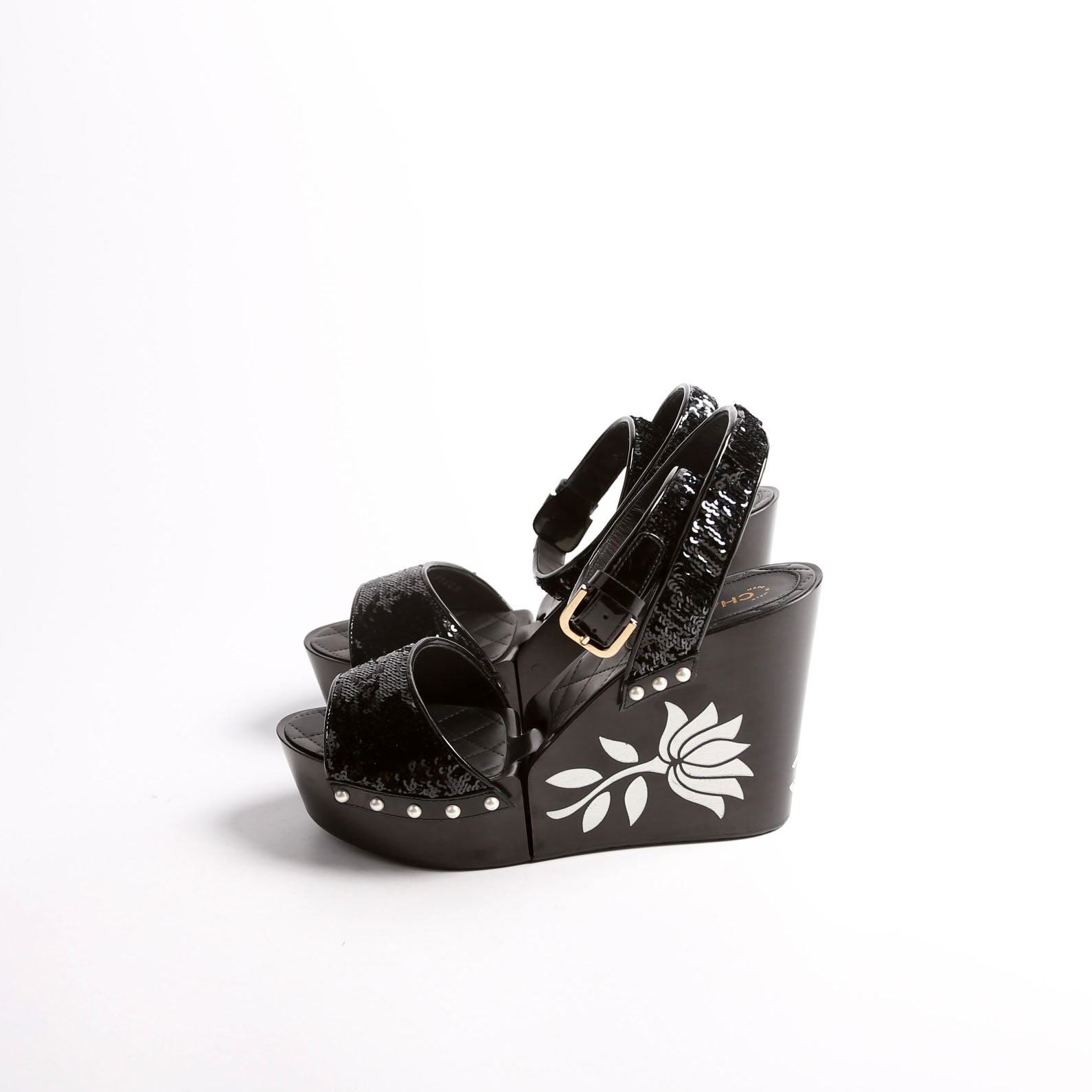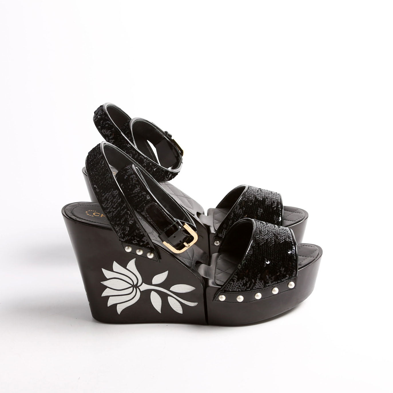 These pre-owned Chanel Flower Hinged Wedges are guaranteed 100% authentic.