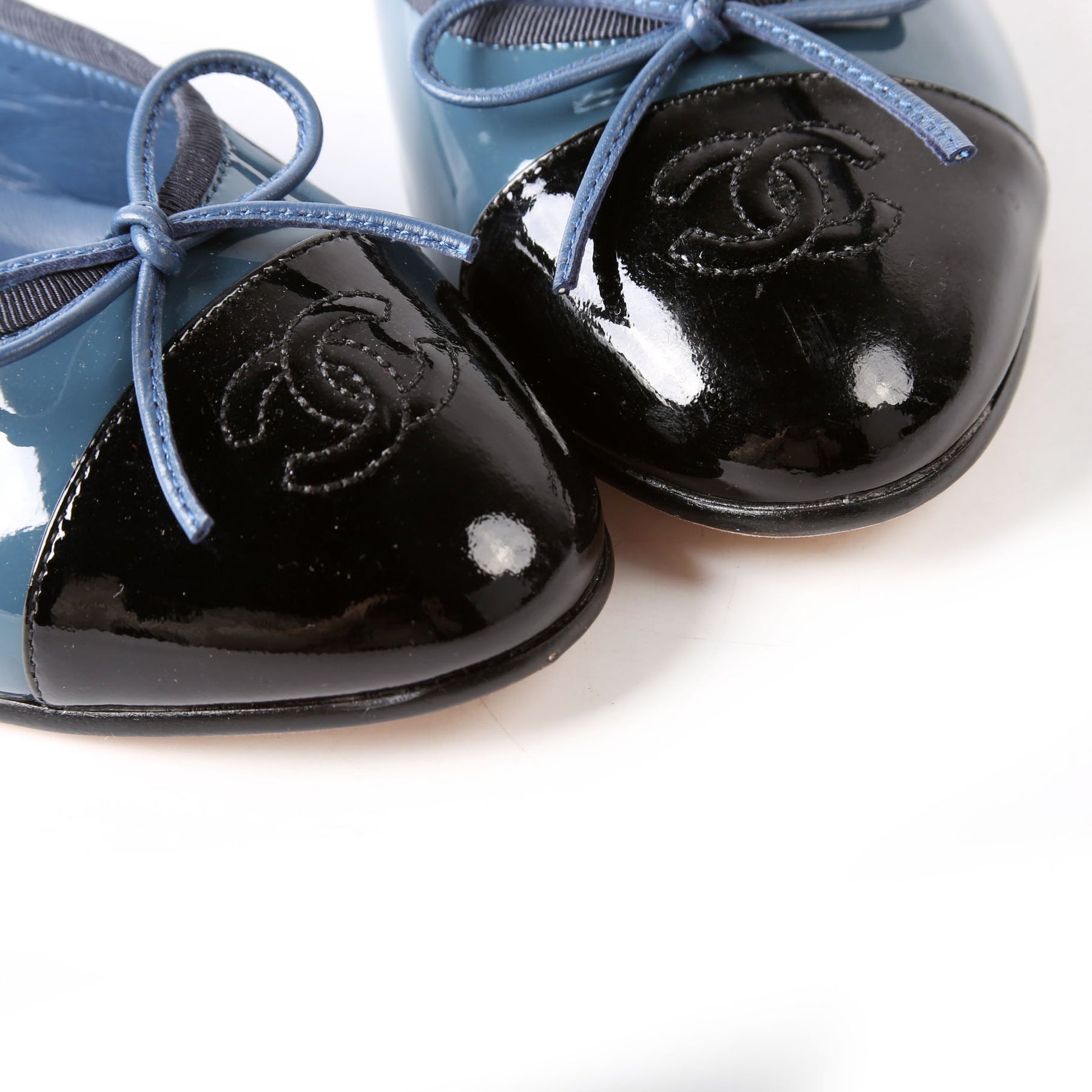 These pre-owned Chanel Cap Toe Ballet Flats are guaranteed 100% authentic.