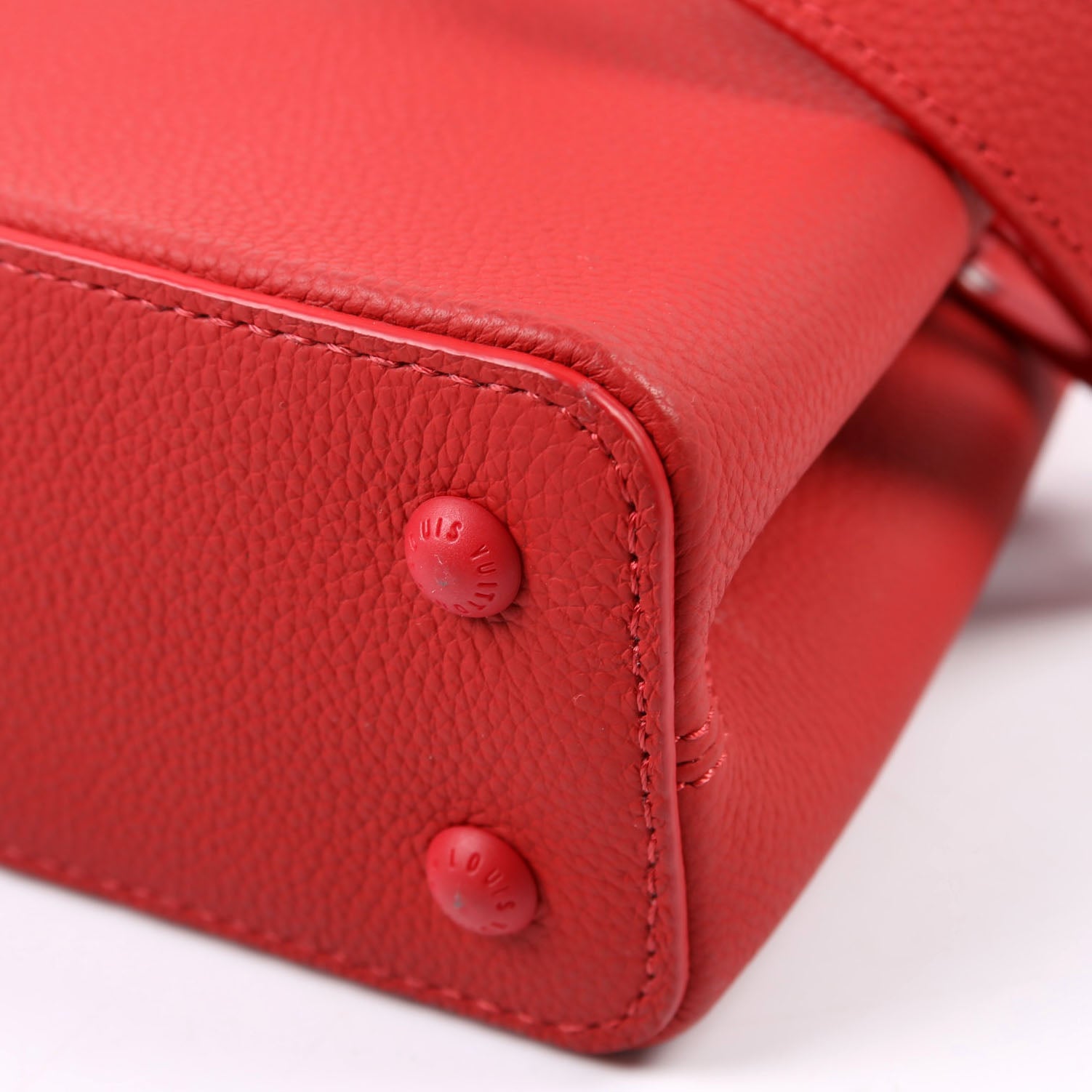 This pre-owned Louis Vuitton Capucines BB is guaranteed 100% authentic. The exterior is in the classic Louis Vuitton Taurillon leather.