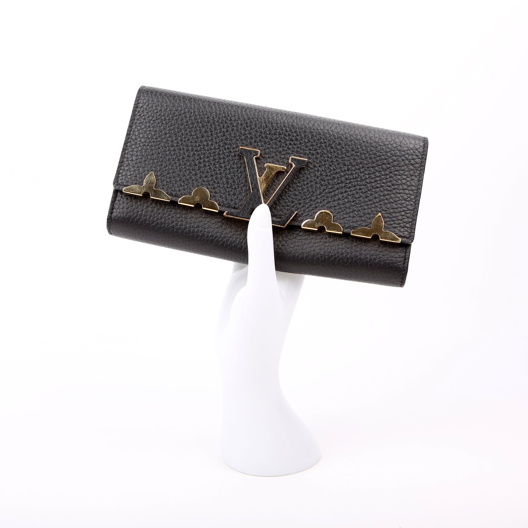 This pre-owned Louis Vuitton Capucines Wallet Taurillon Flower guaranteed 100% authentic.