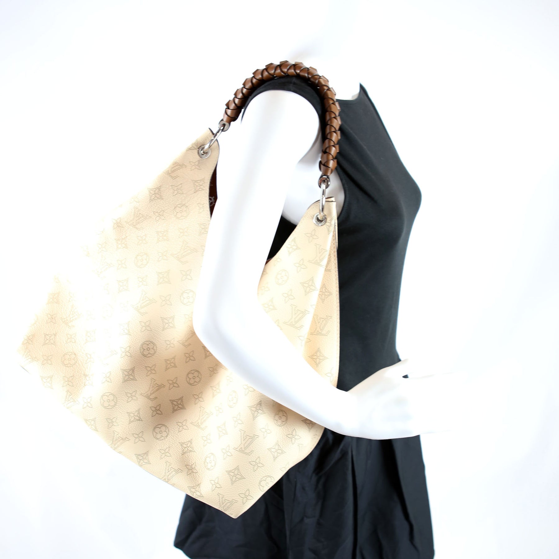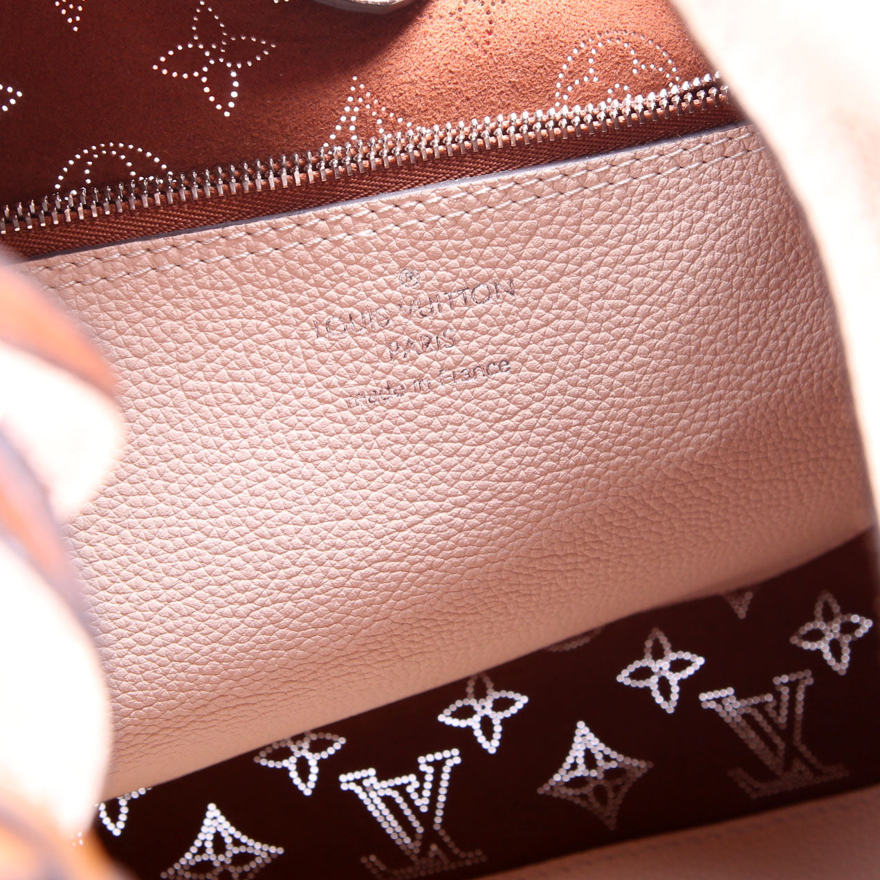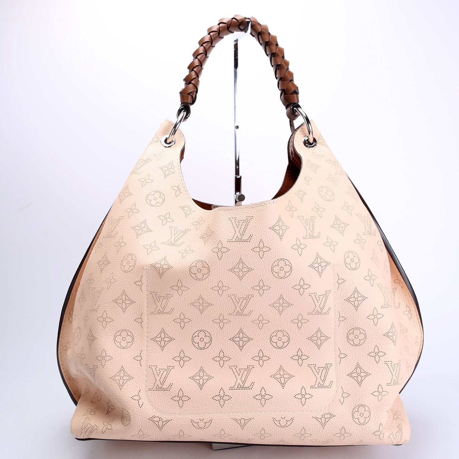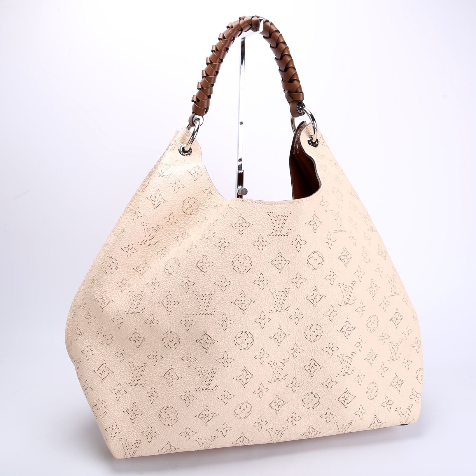 This pre-owned Louis Vuitton Carmel is guaranteed 100% authentic. The exterior is in the classic Louis Vuitton Mahina Leather.
