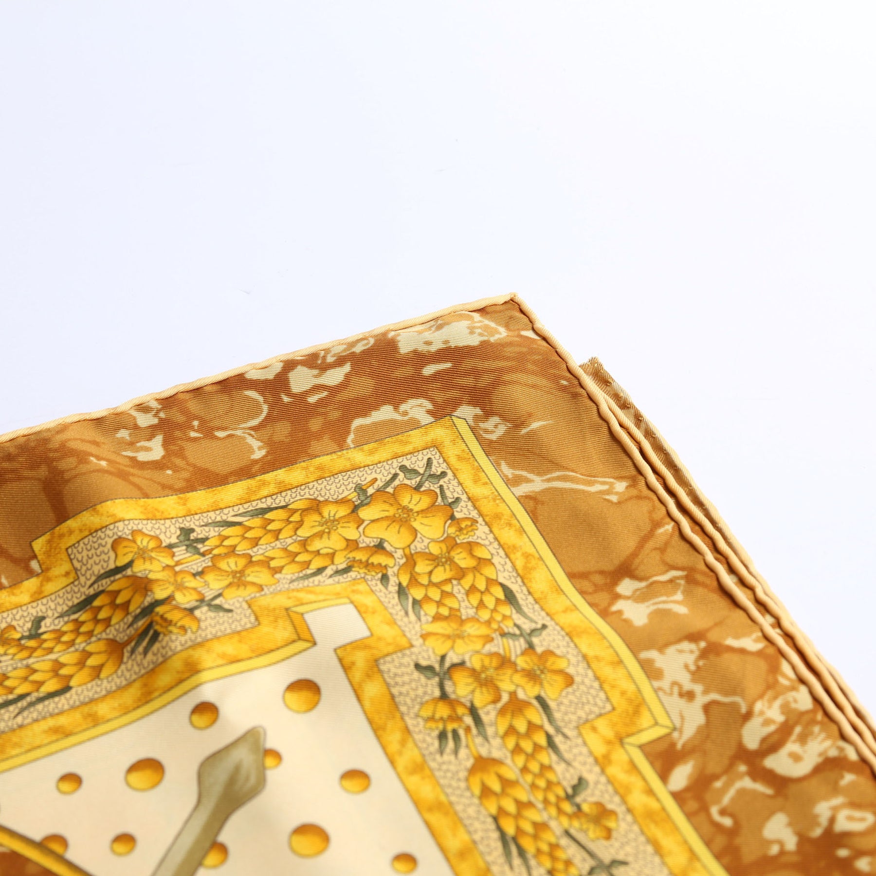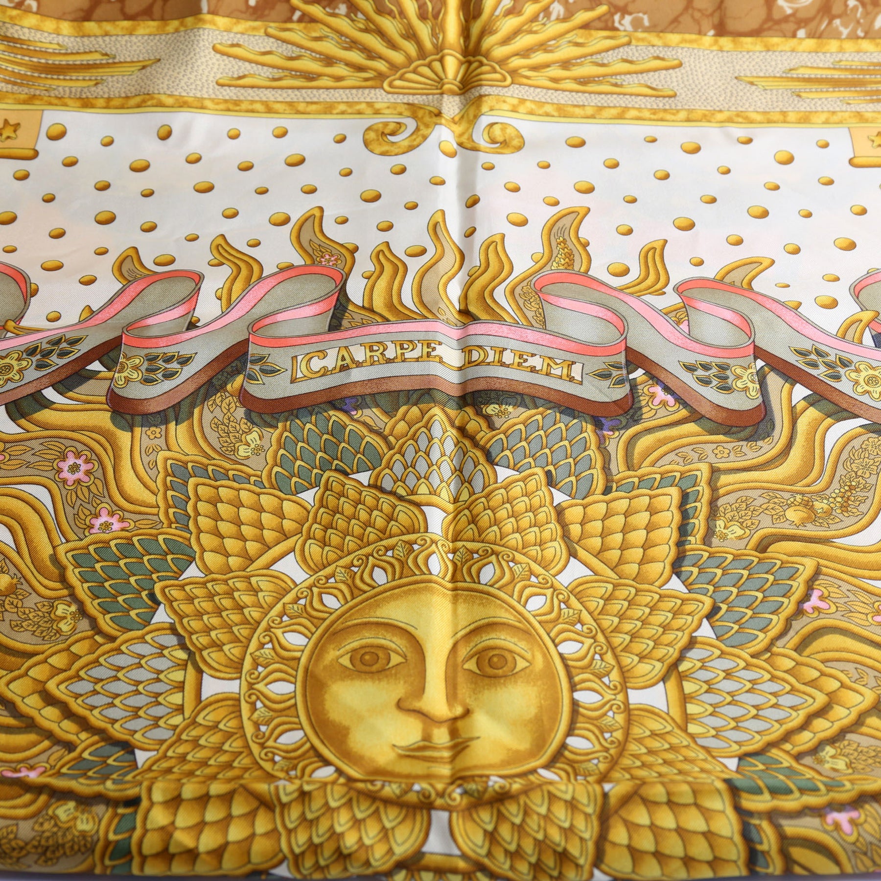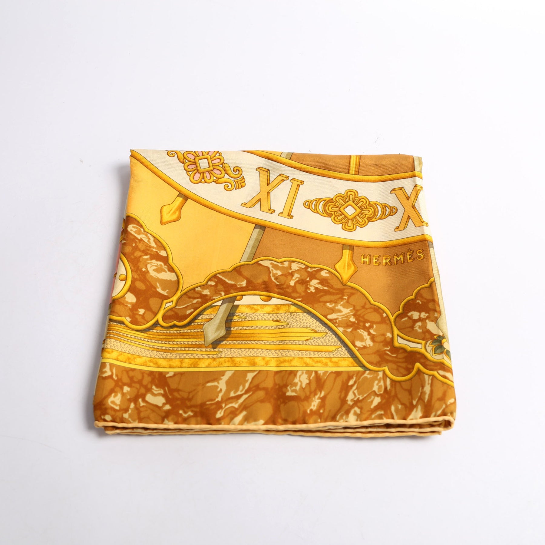 This pre-owned Hermes Carpe Diem Silk Scarf is guaranteed 100% authentic.
