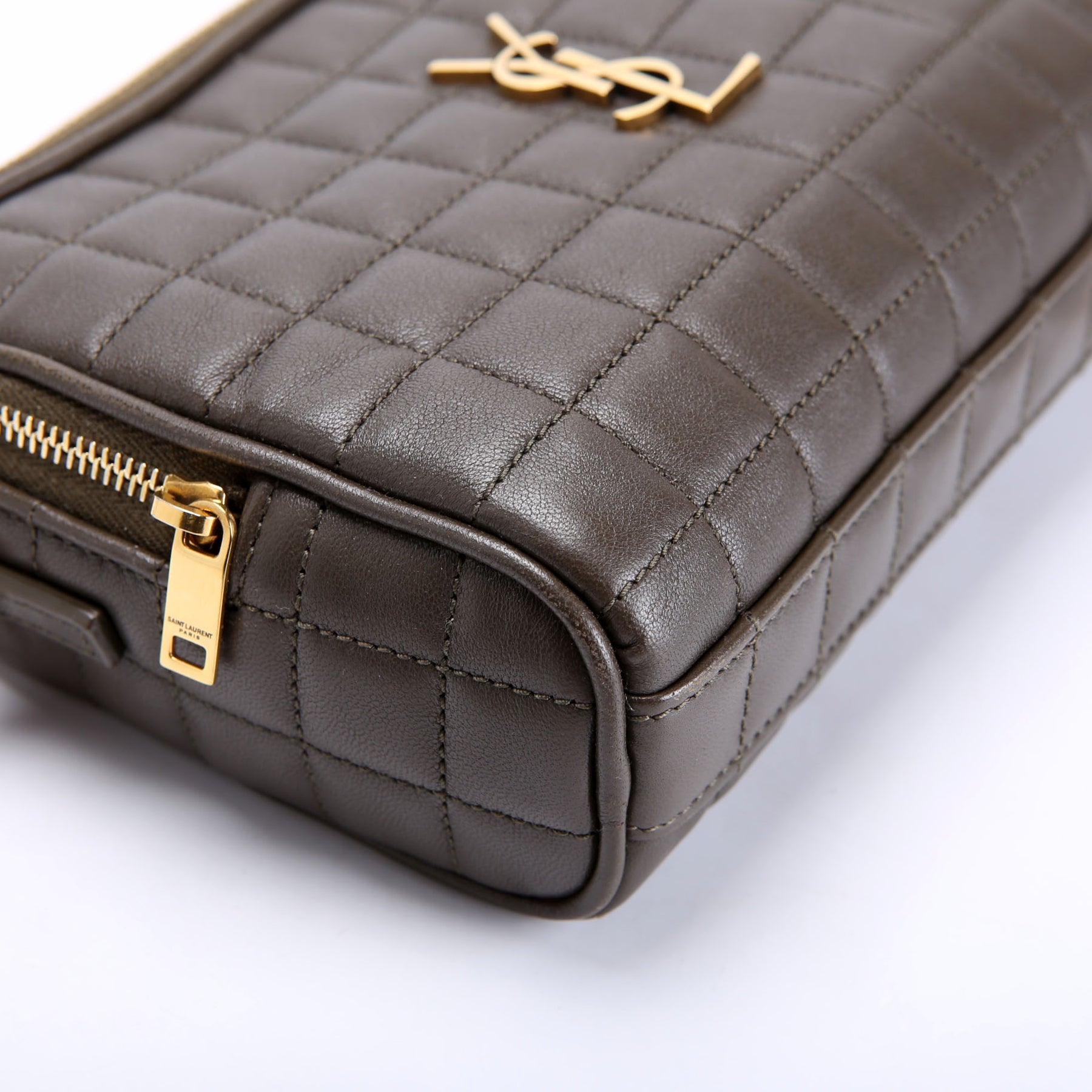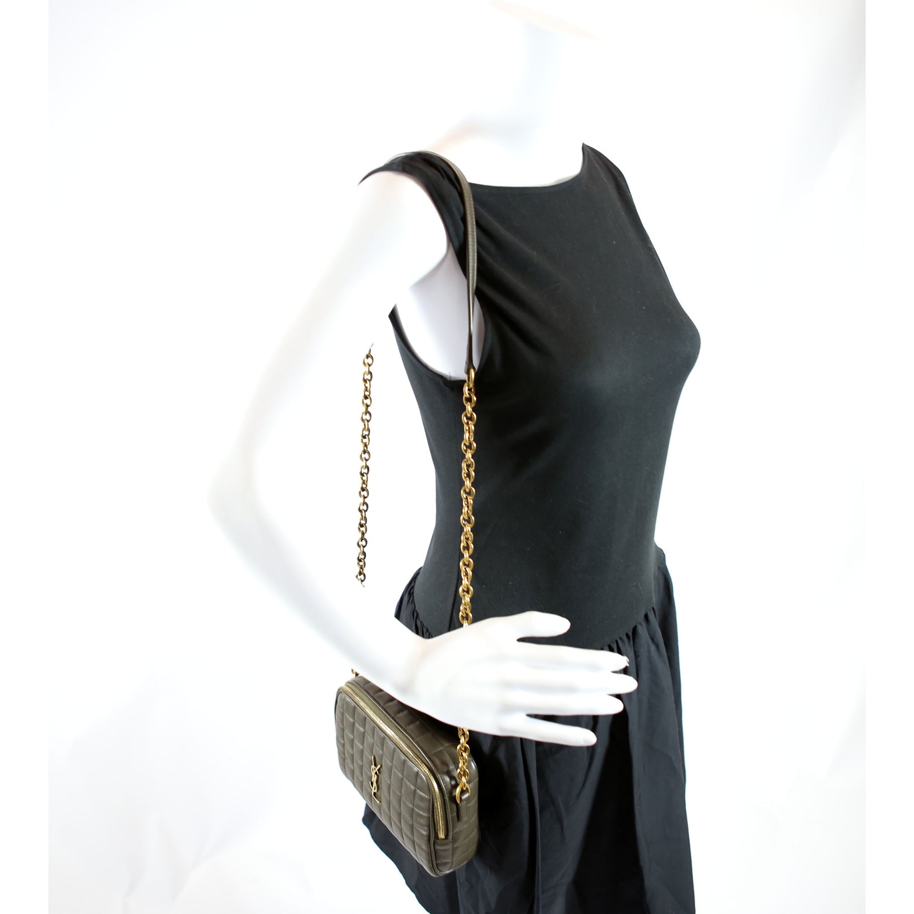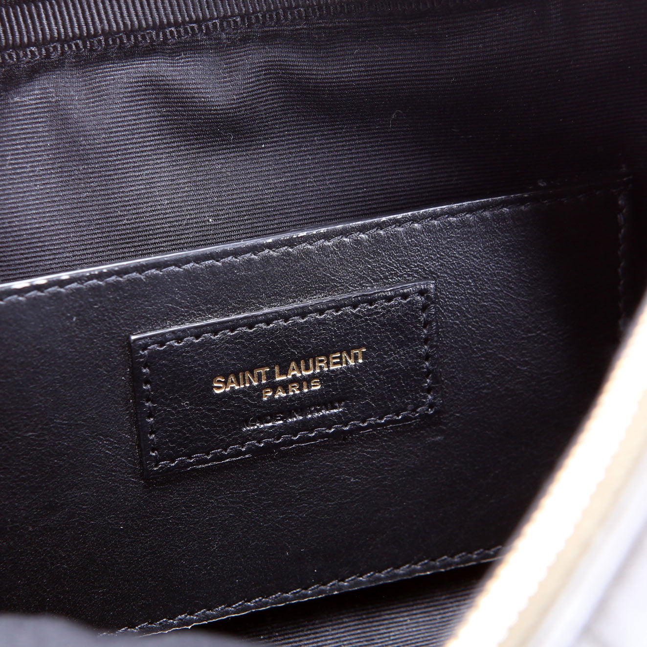 This pre-owned Saint Laurent Cassandre Carre Camera Bag is guaranteed 100% authentic. The exterior is in the classic Saint Laurent Lambskin leather.