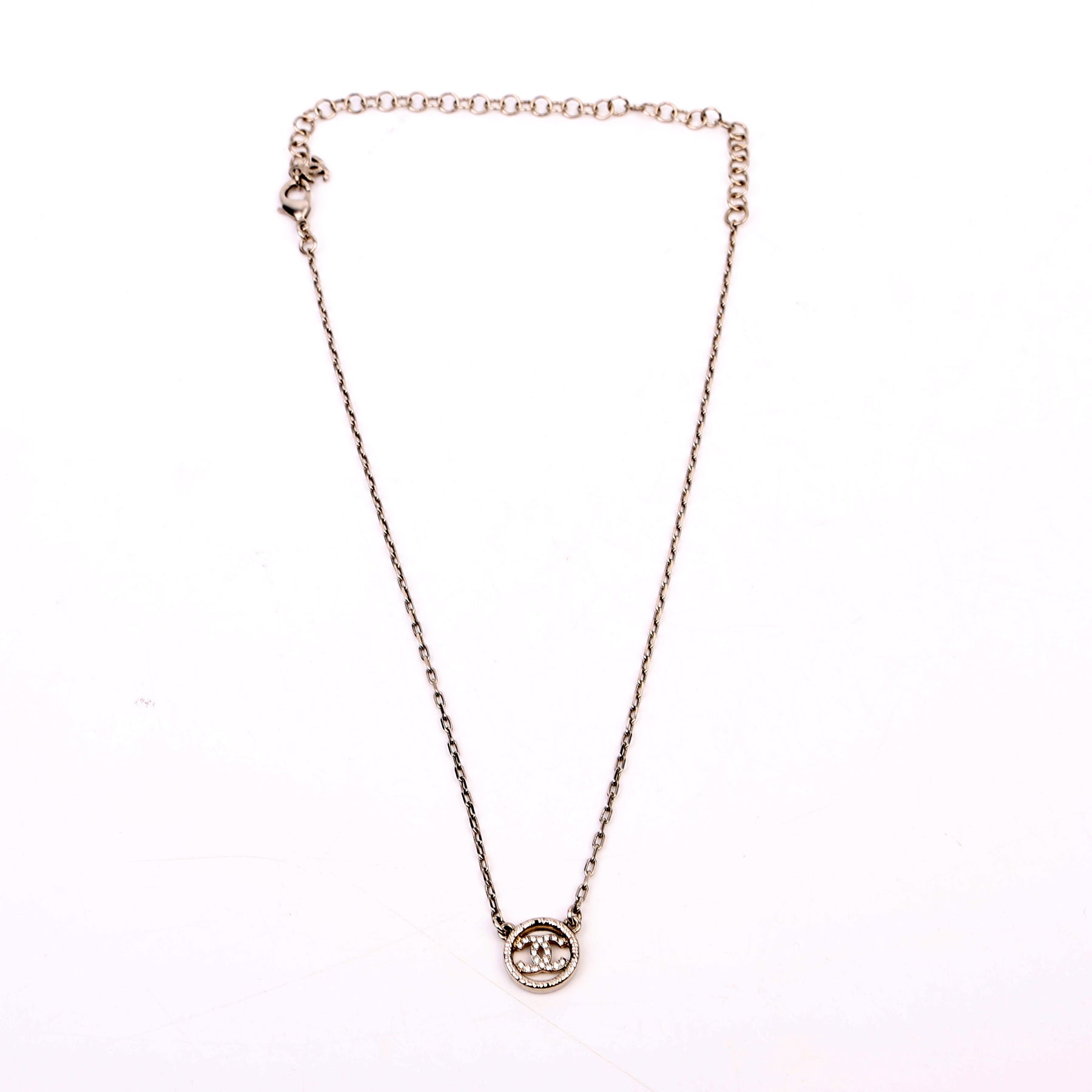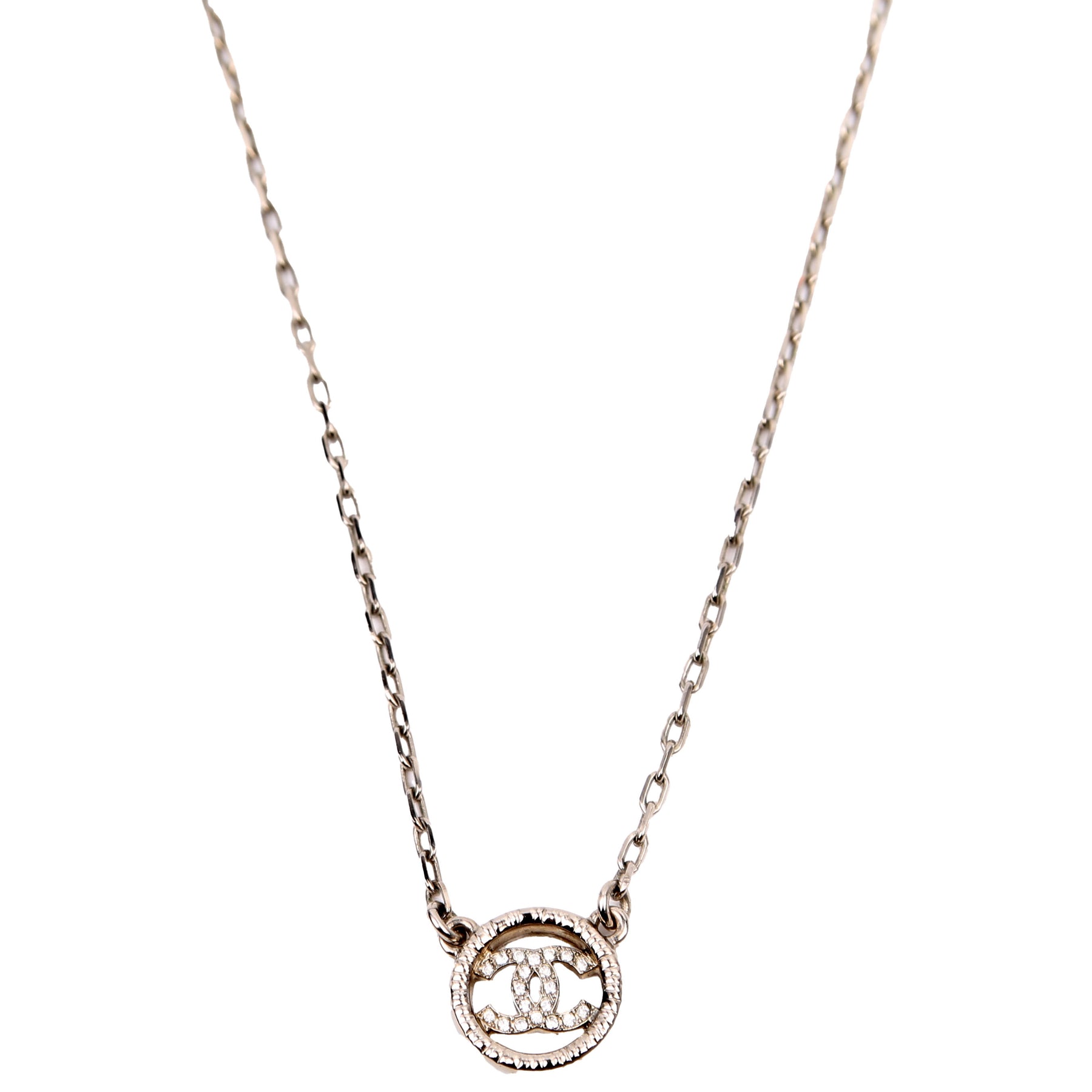 This pre-owned Chanel CC Crystal Round Small Necklace is guaranteed 100% authentic.