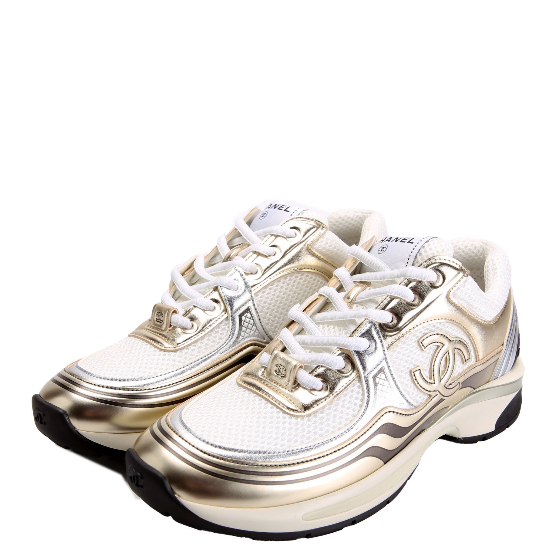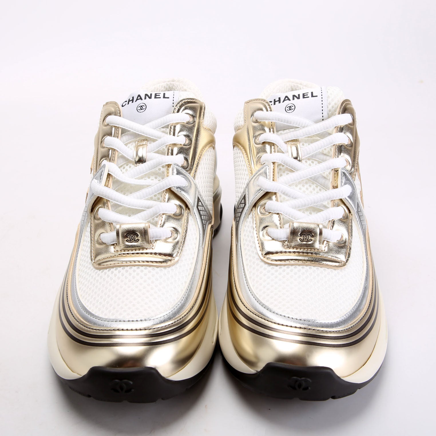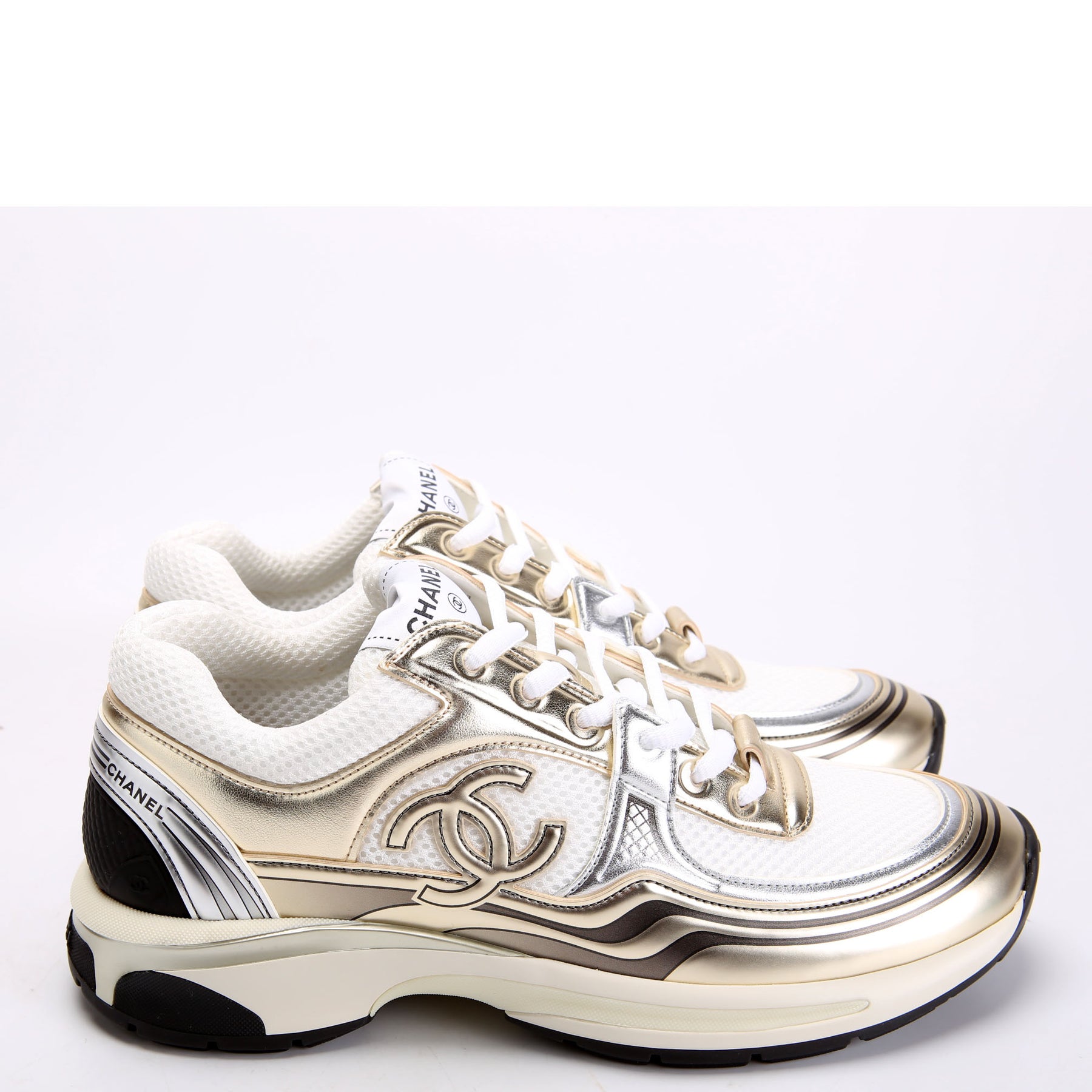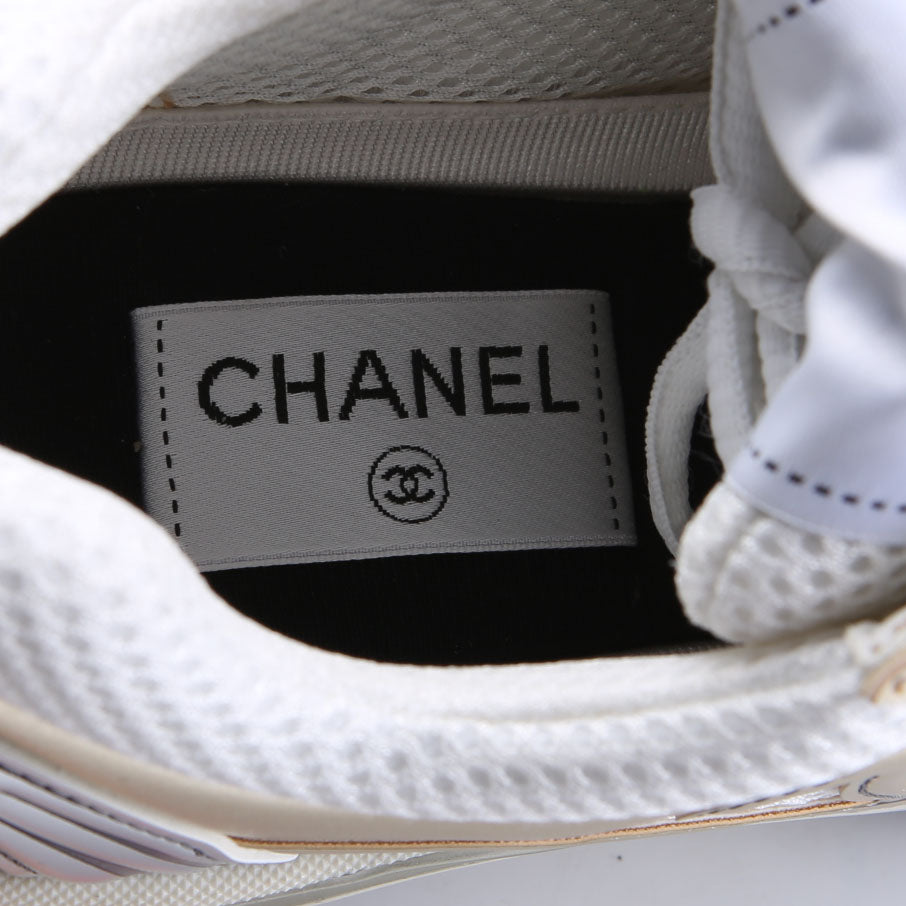 These pre-owned Chanel CC Mesh/Lambskin Trainers are guaranteed 100% authentic.