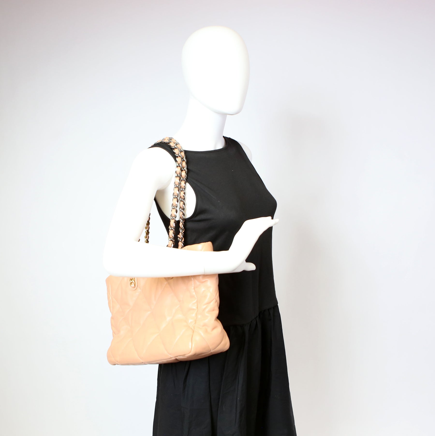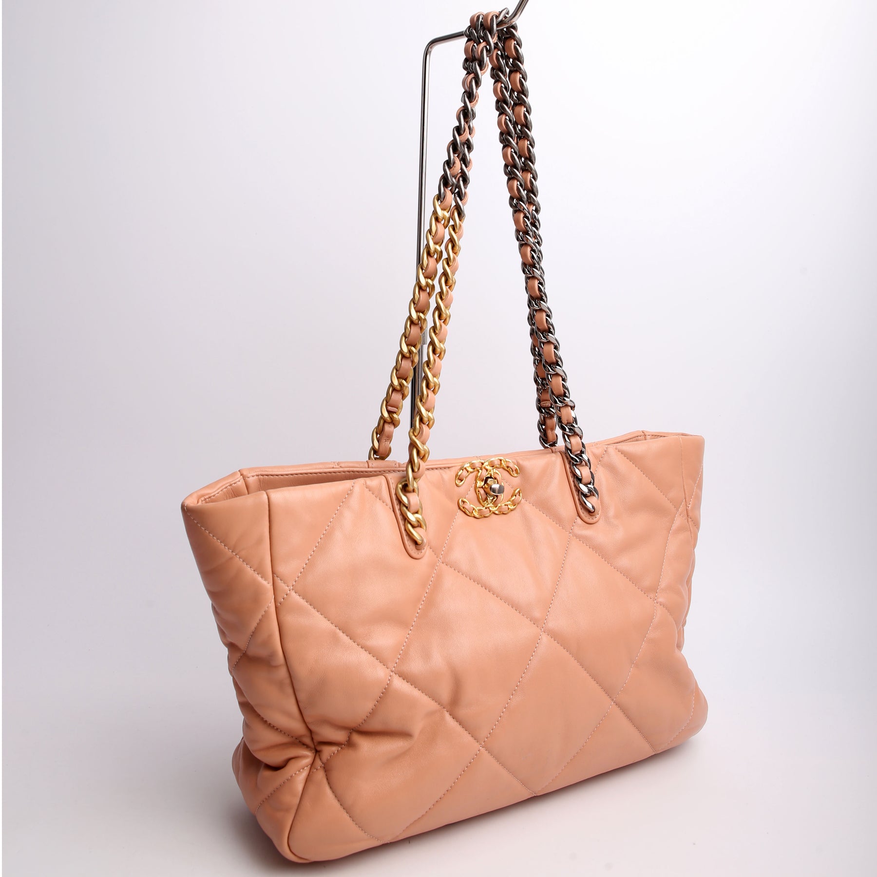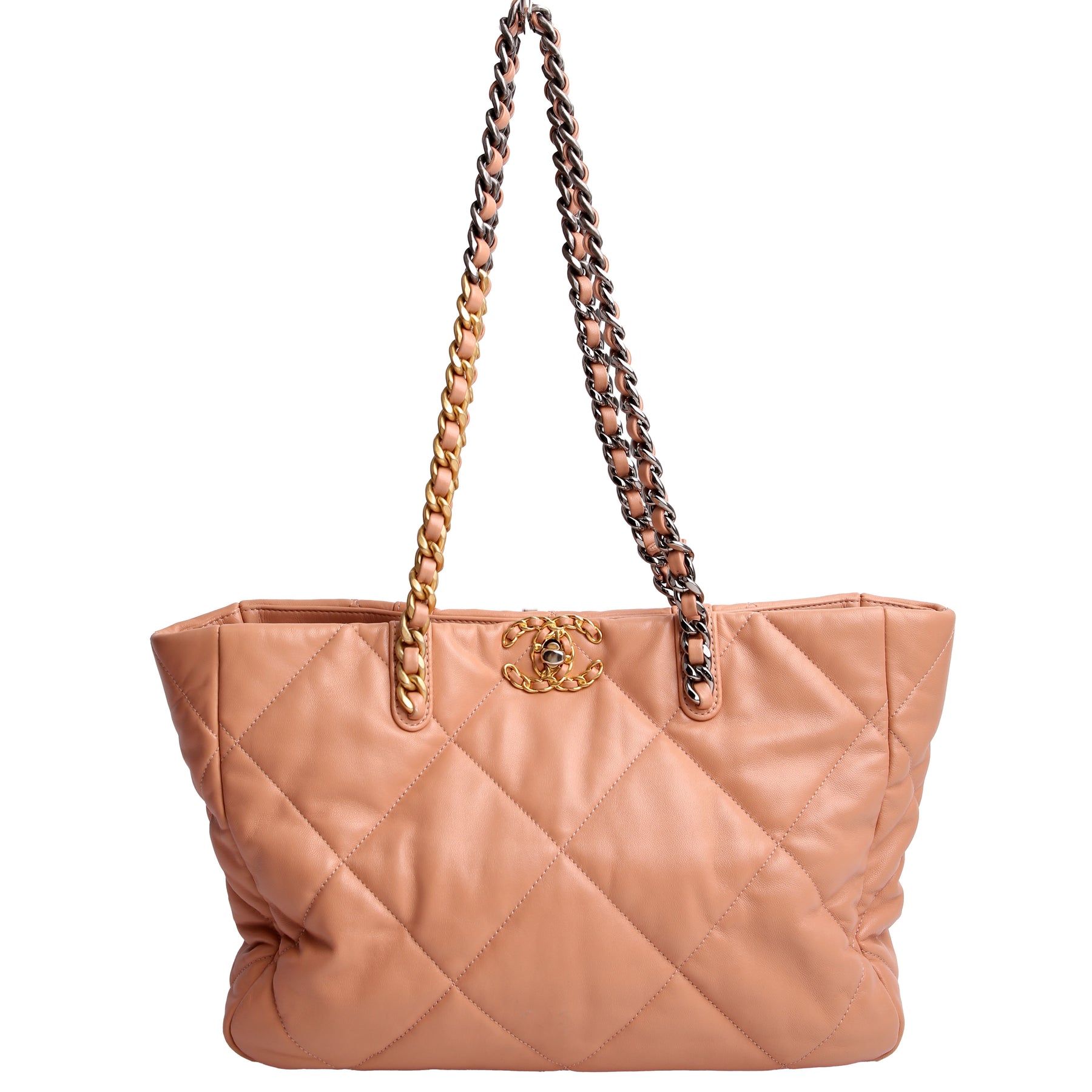 Chanel 19 Quilted Goatskin East/West Shopping Tote Nude