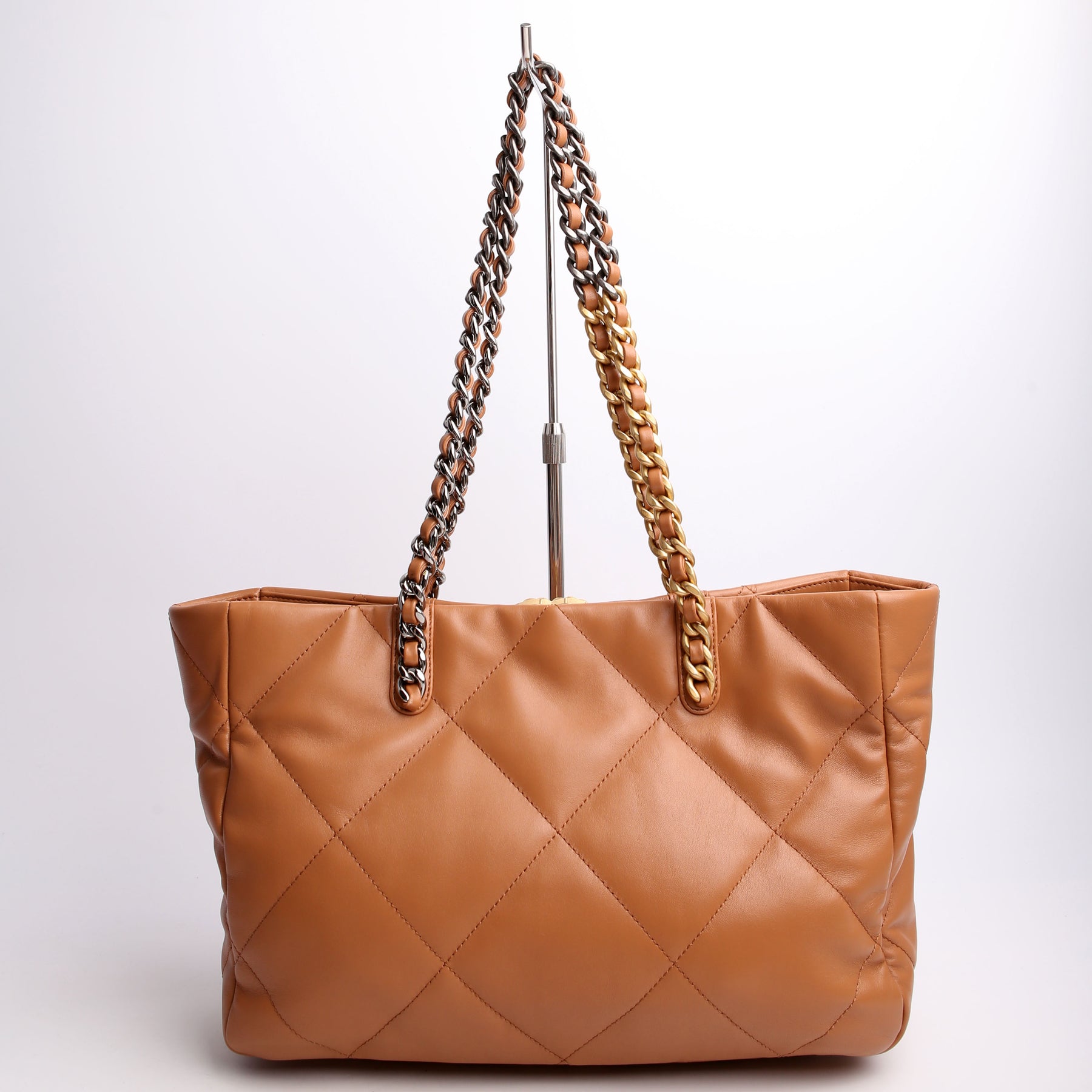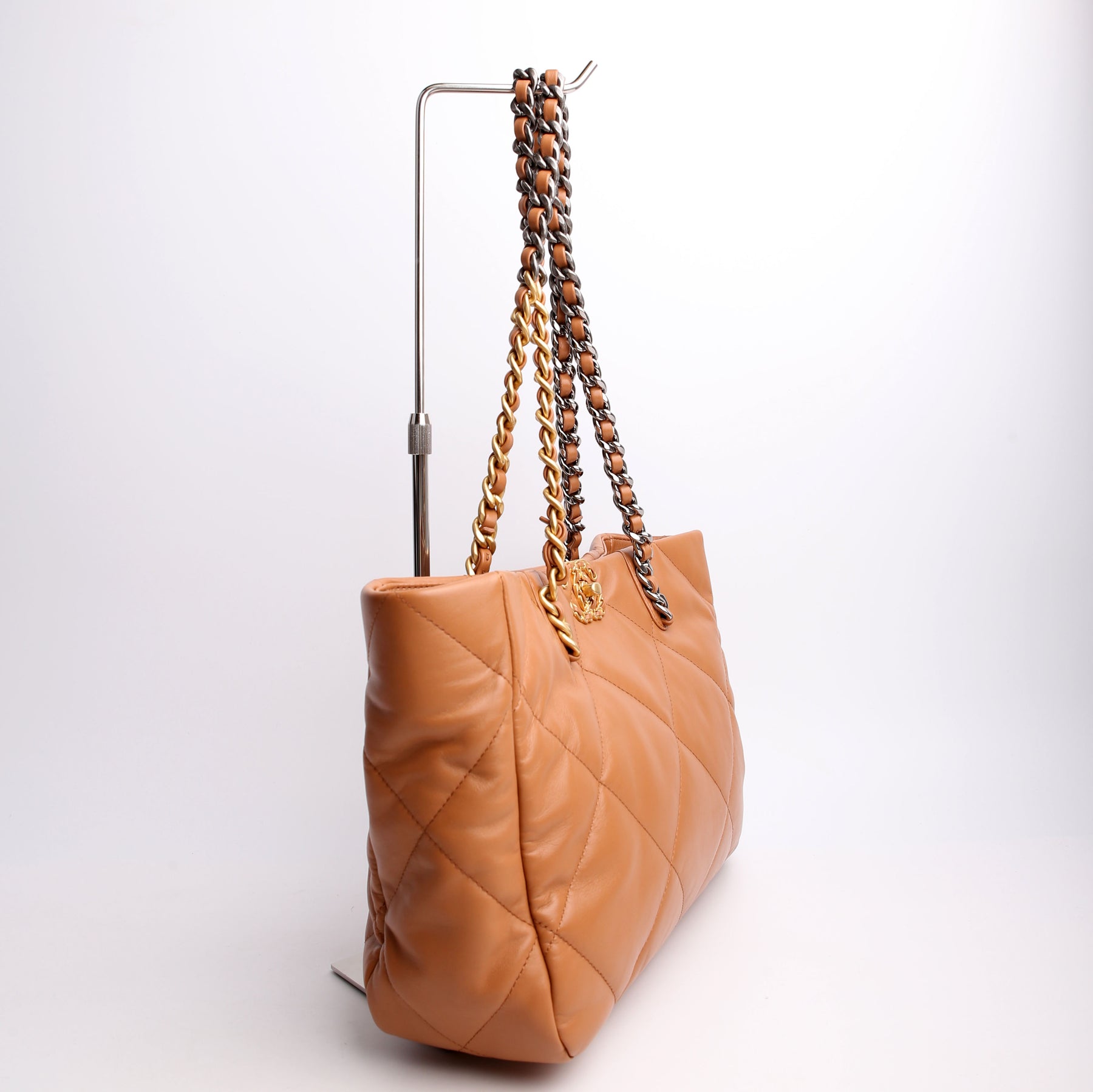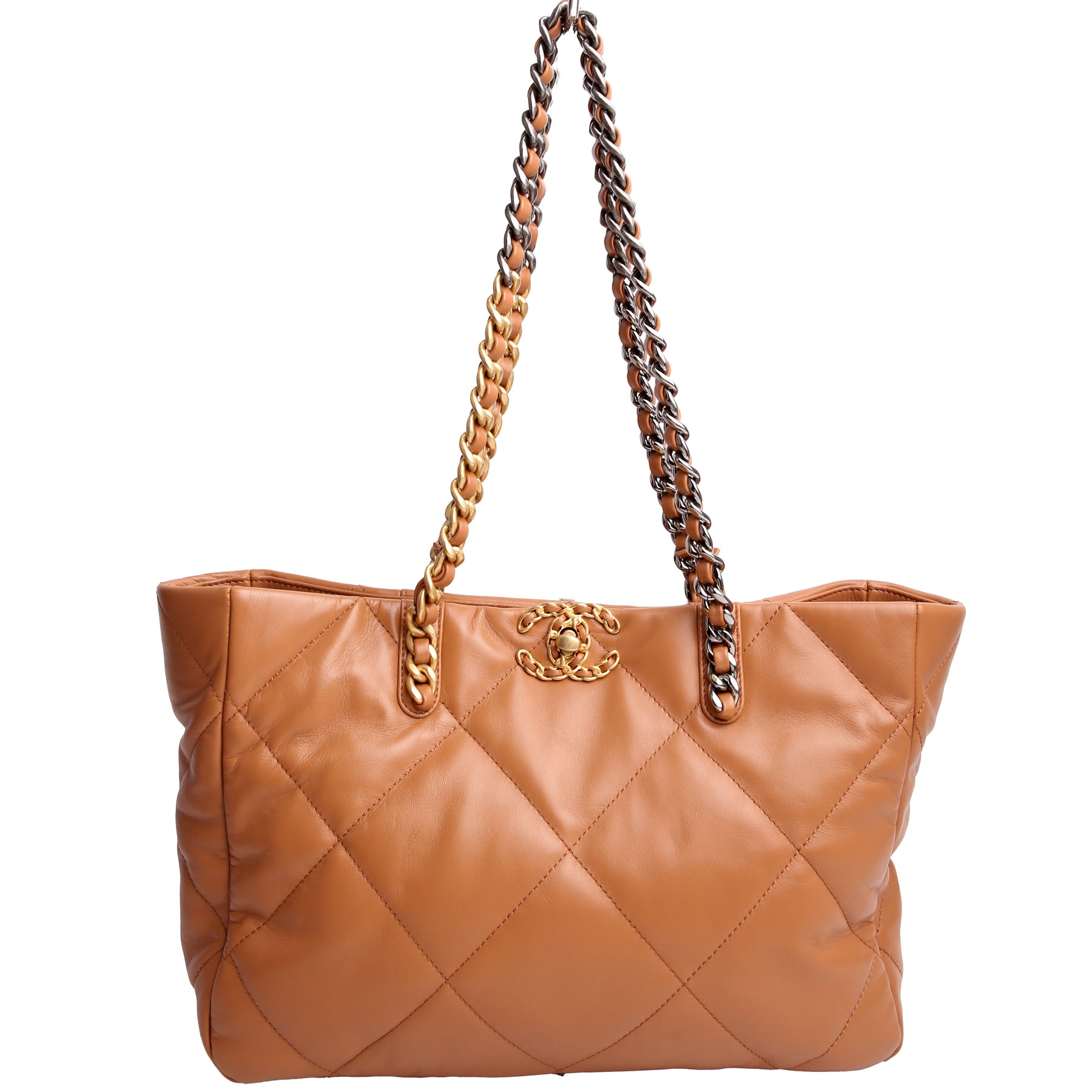 Chanel 19 Quilted Goatskin East/West Shopping Tote Tan