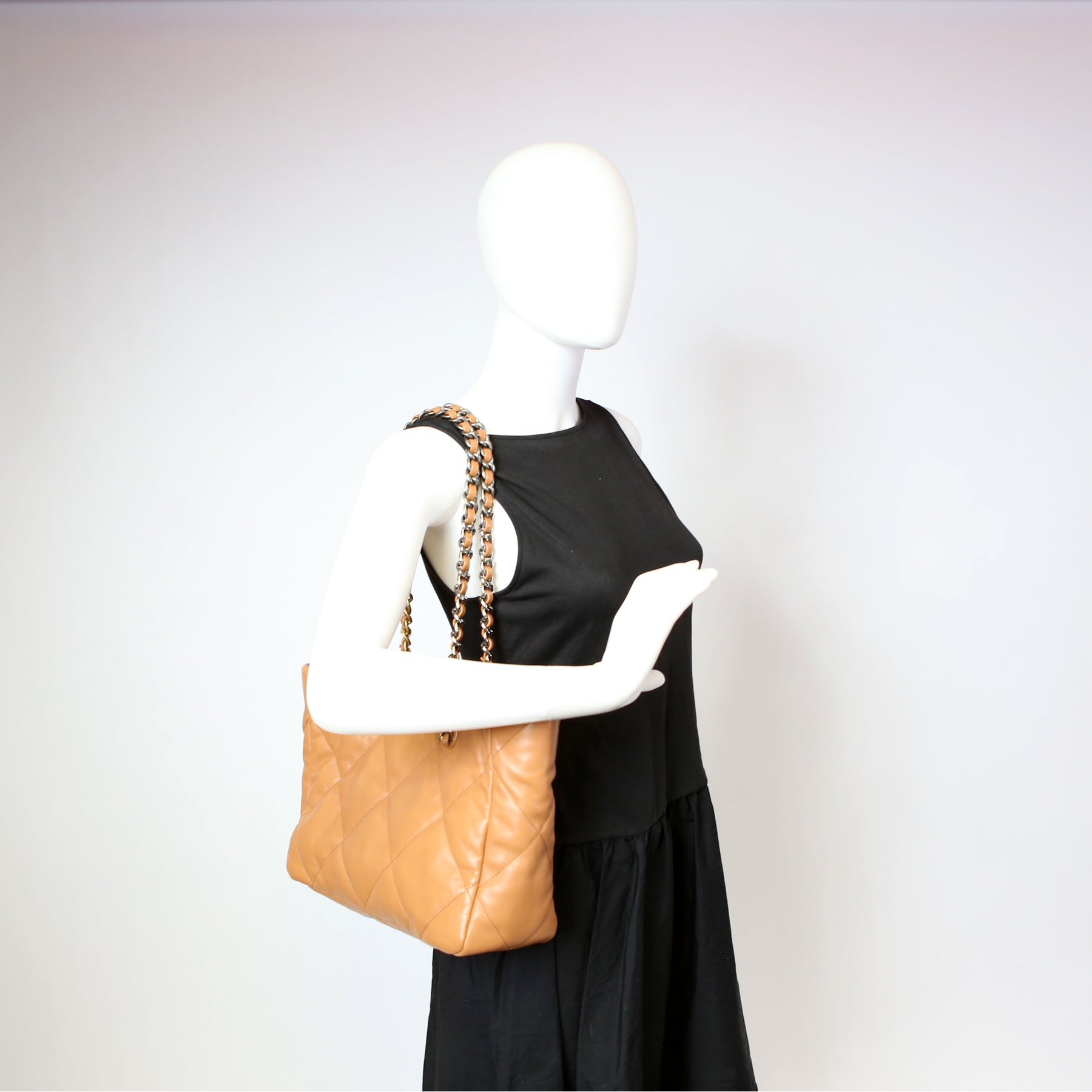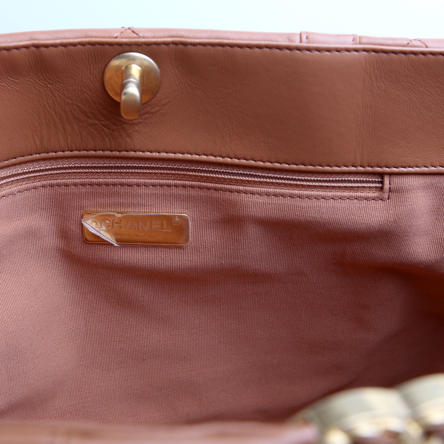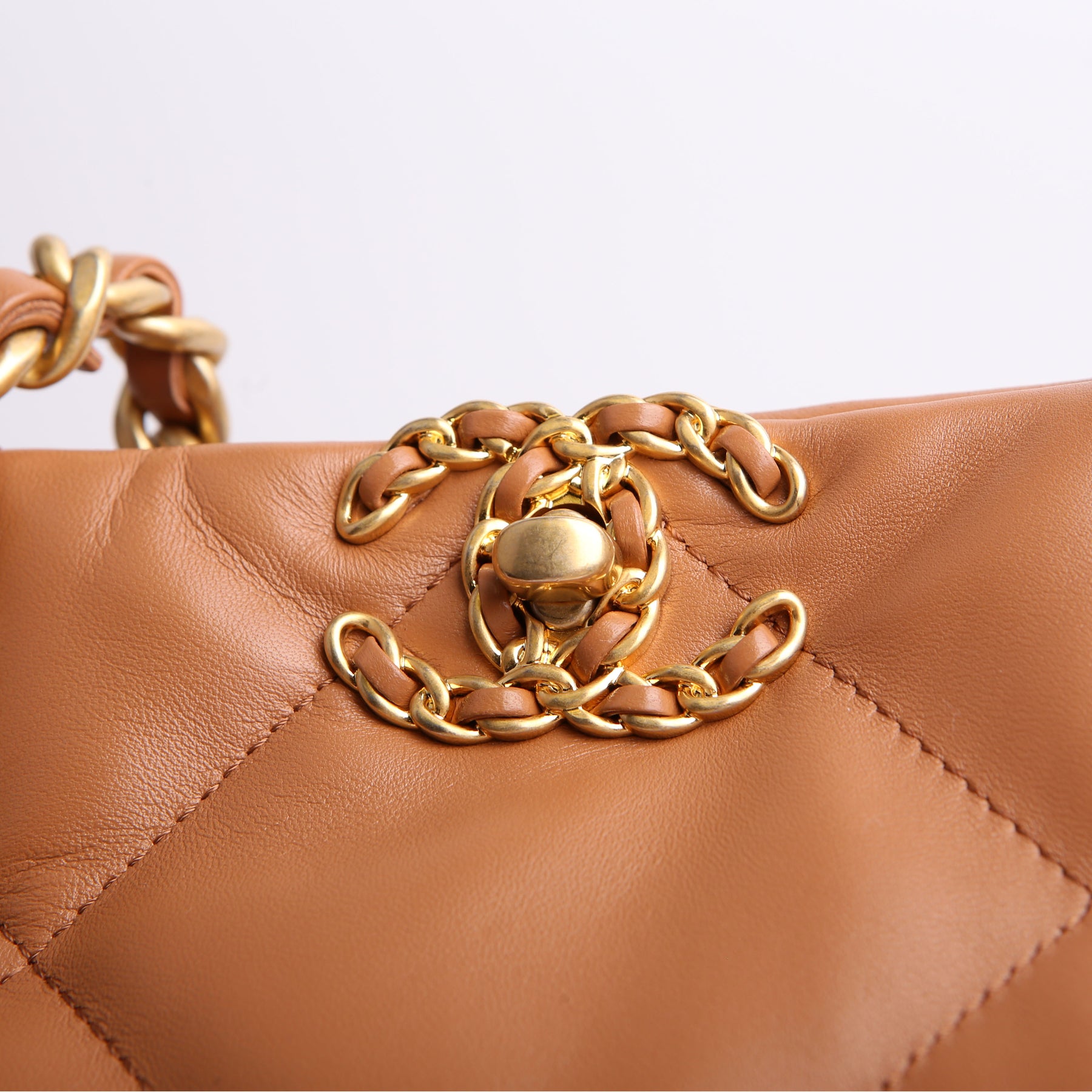 Chanel 19 Quilted Goatskin East/West Shopping Tote Tan
