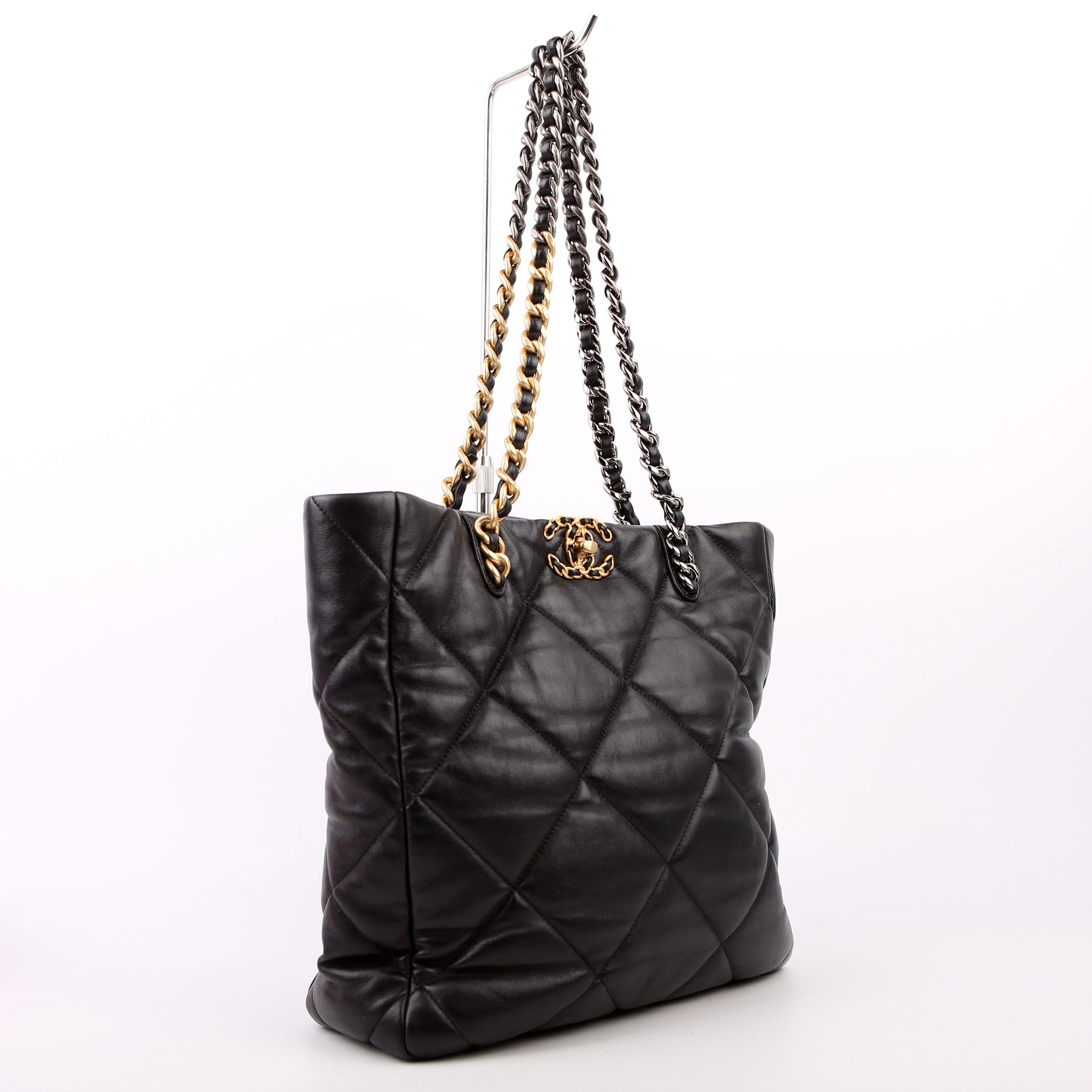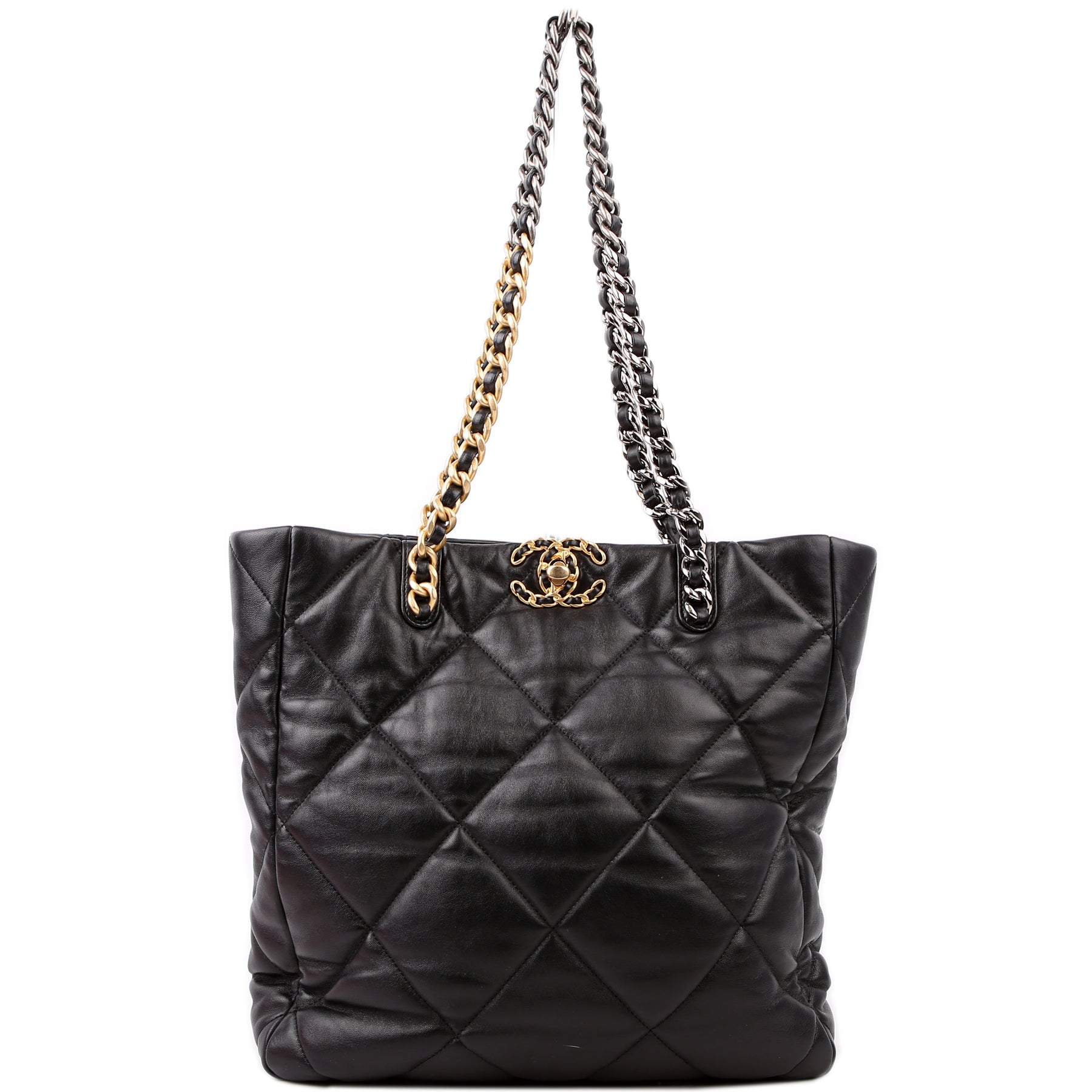 Chanel 19 Quilted Goatskin N/S Shopping Tote Black