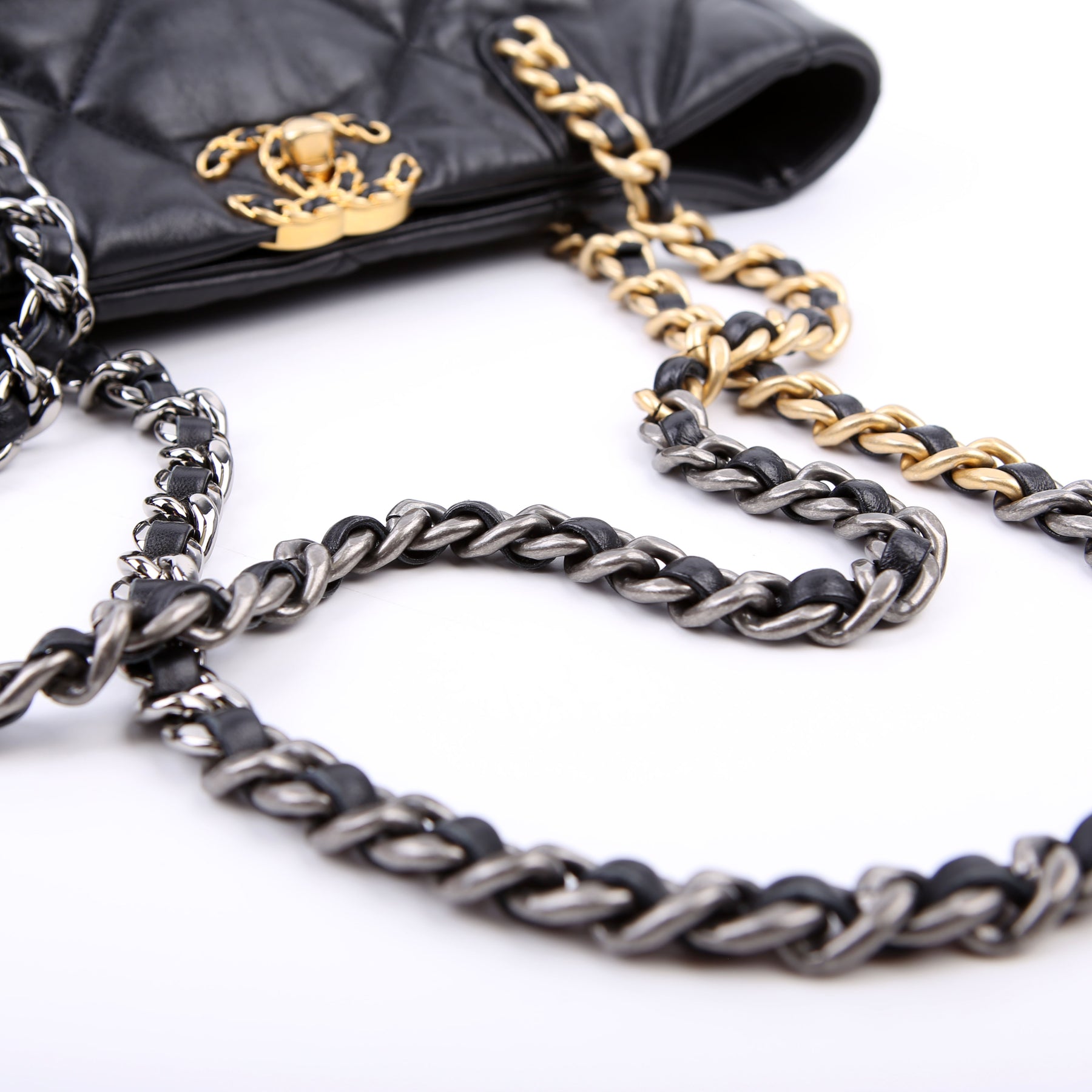 This pre-owned Chanel 19 Quilted Goatskin North/South Shopping Tote is guaranteed 100% authentic.